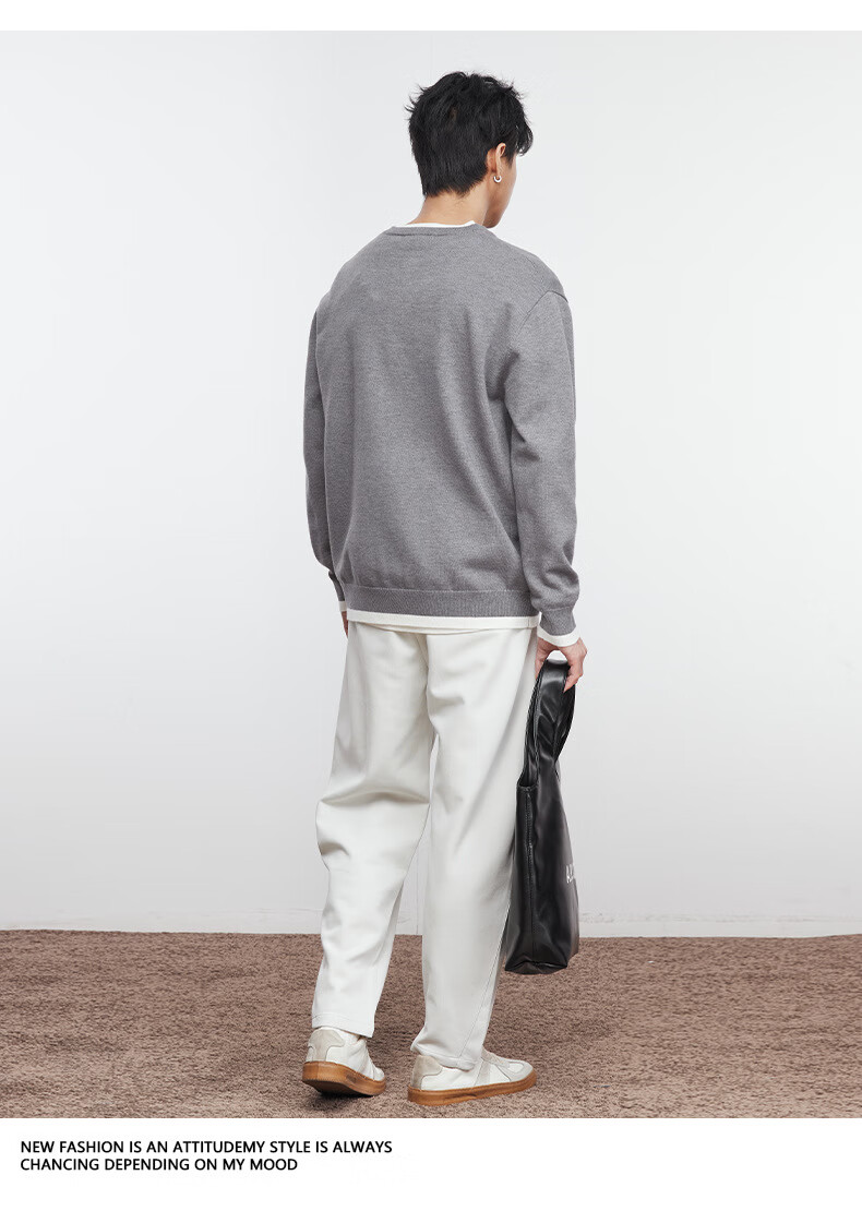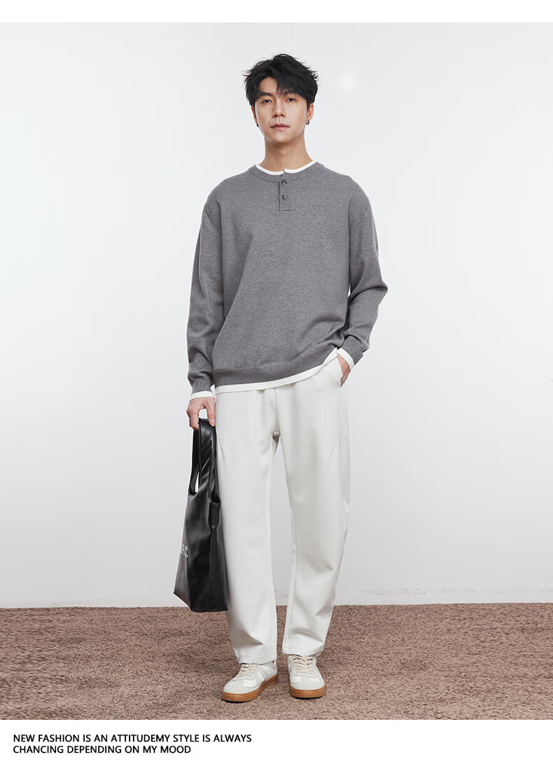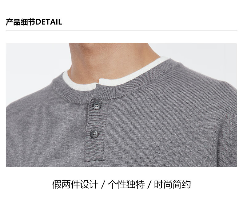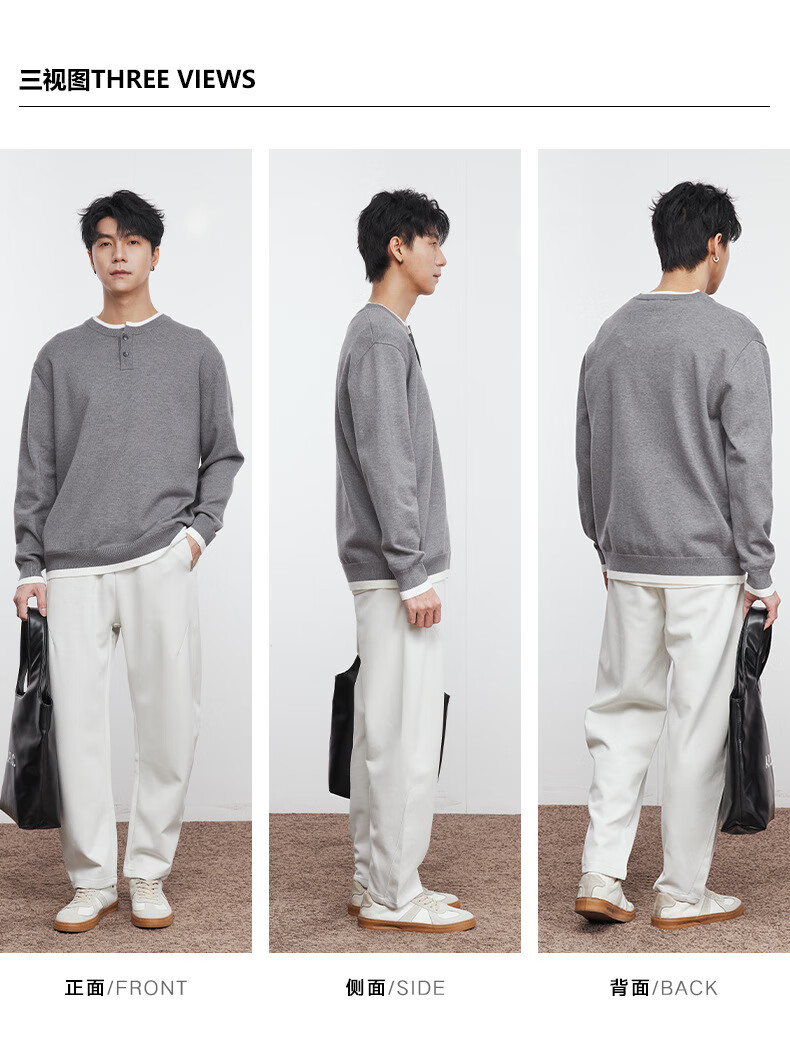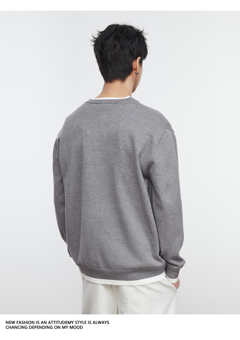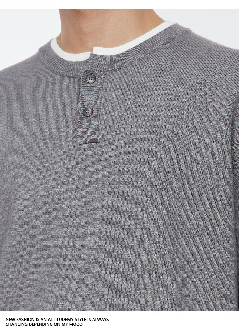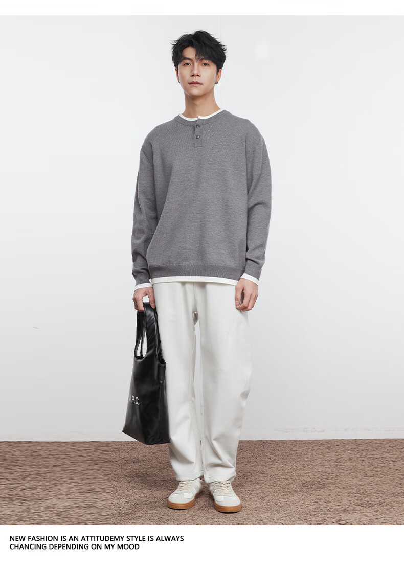 JEEP SPIRIT light luxury men's Henry collar fake two-piece sweater for men in spring and autumn loose inner sweater for men Gray M