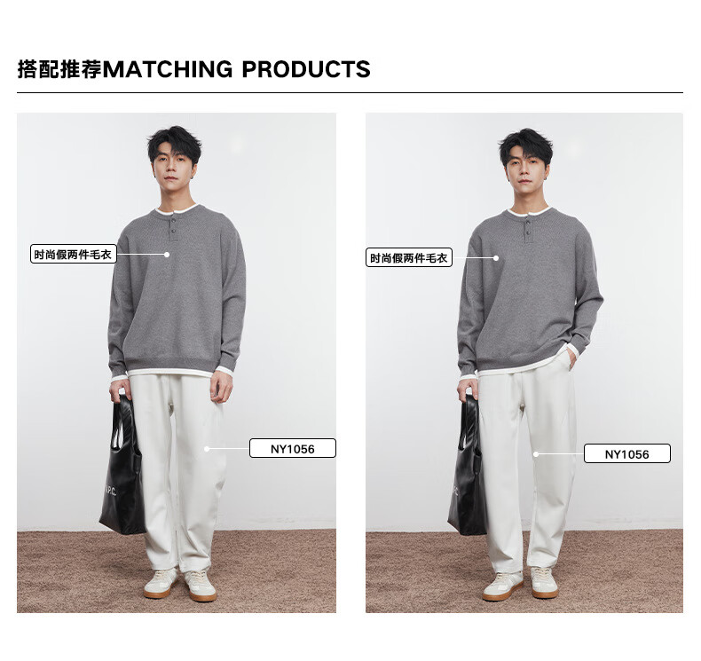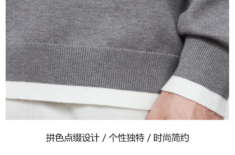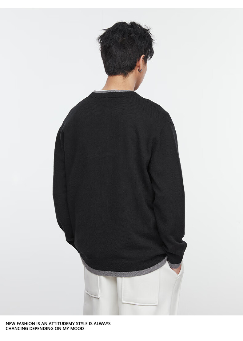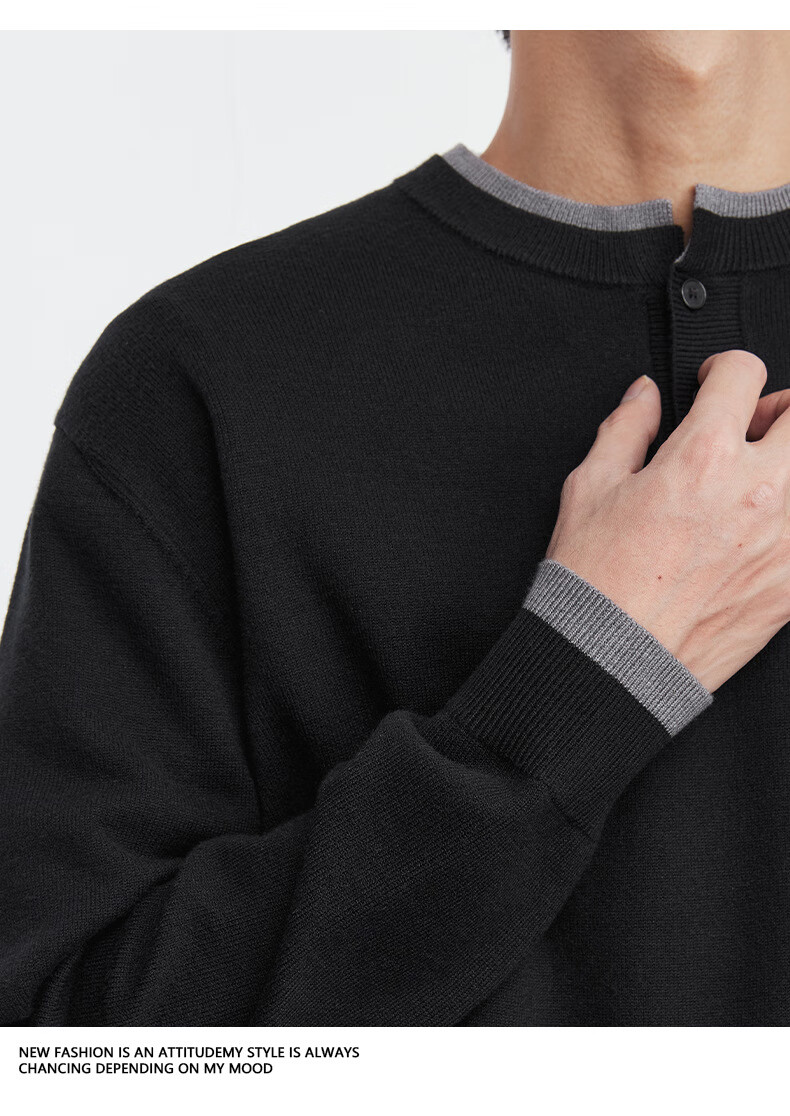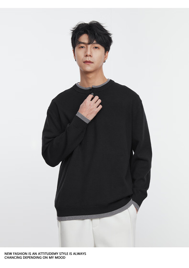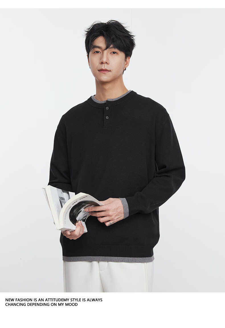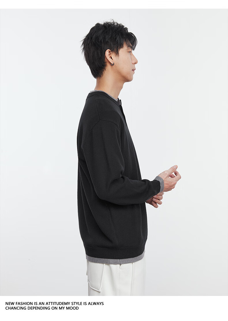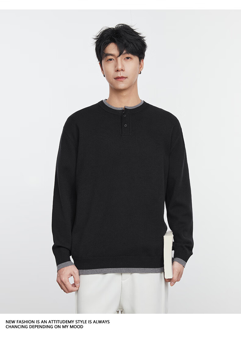 JEEP SPIRIT light luxury men's Henry collar fake two-piece sweater for men in spring and autumn loose inner sweater for men Gray M