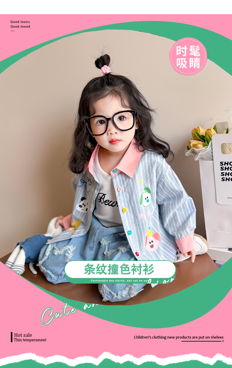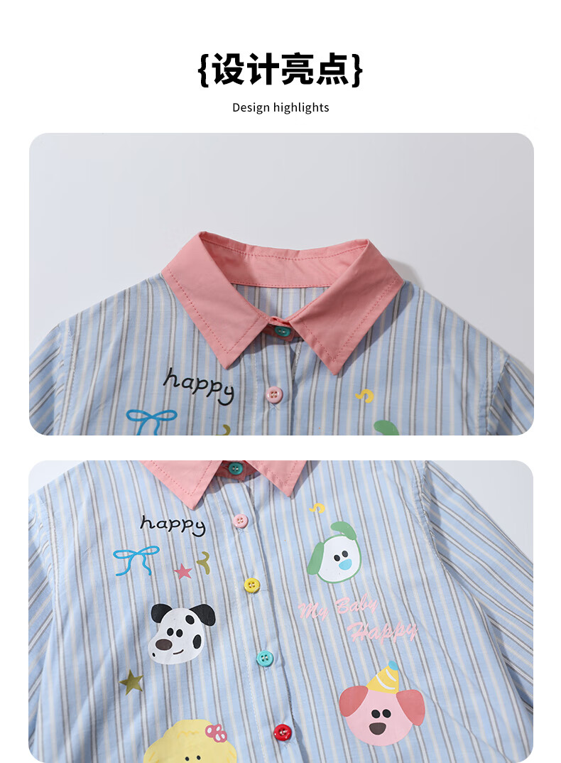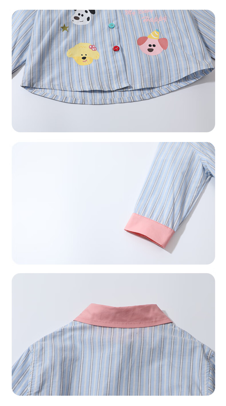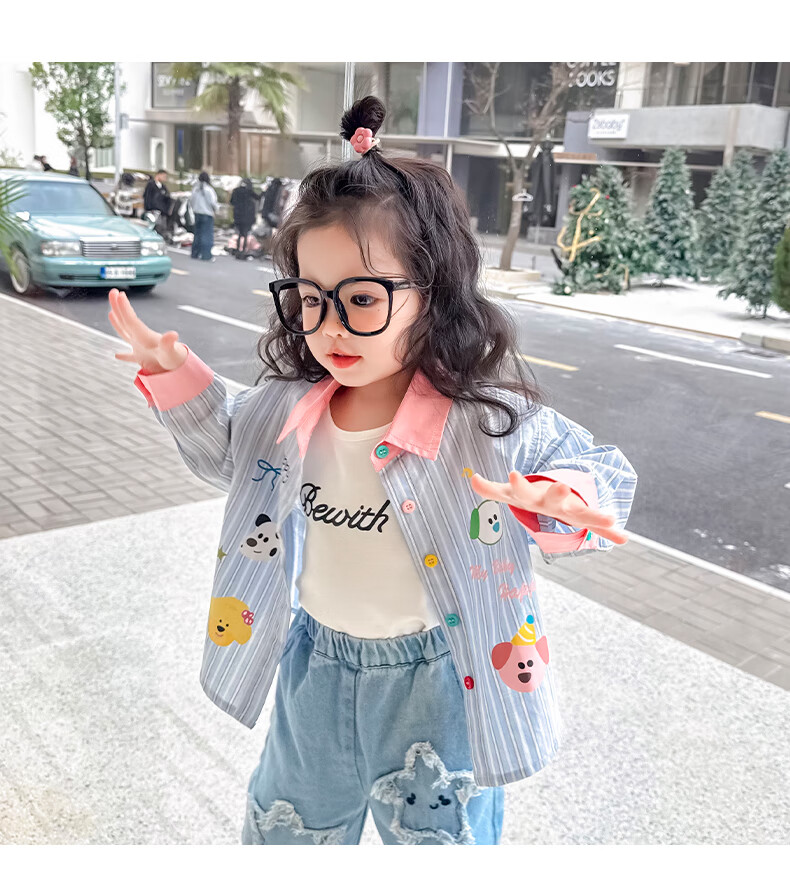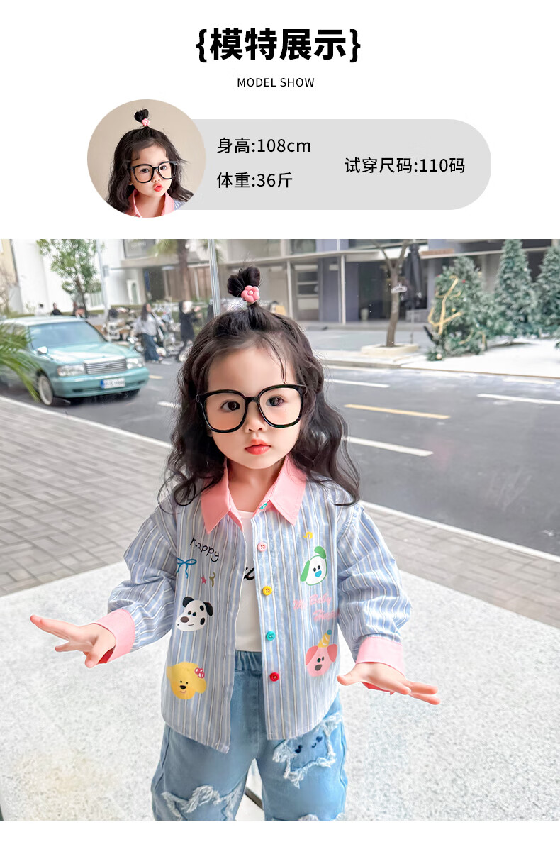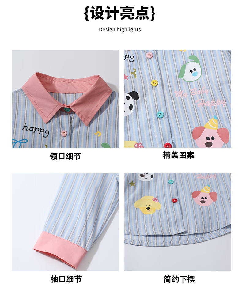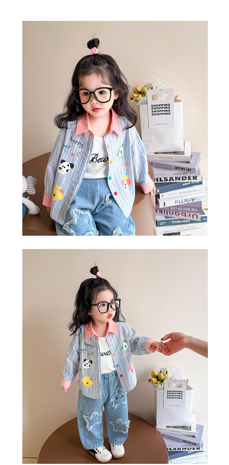 Qiyuxin children's clothing girls striped shirt spring and autumn children's shirt 2025 new little girl baby casual jacket top blue 90 (suitable for height 80-90cm)