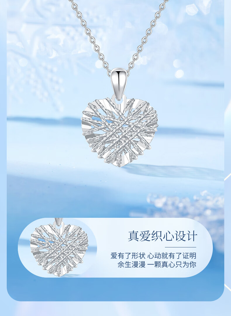 China Gold (CHINA GOLD) Love Platinum Necklace for Women Platinum Pendant Birthday Gift for Girlfriend and Wife Wedding Anniversary Practical Gift for Girl Platinum Woven Heart Love Pendant + Platinum Chain-Jingsuda