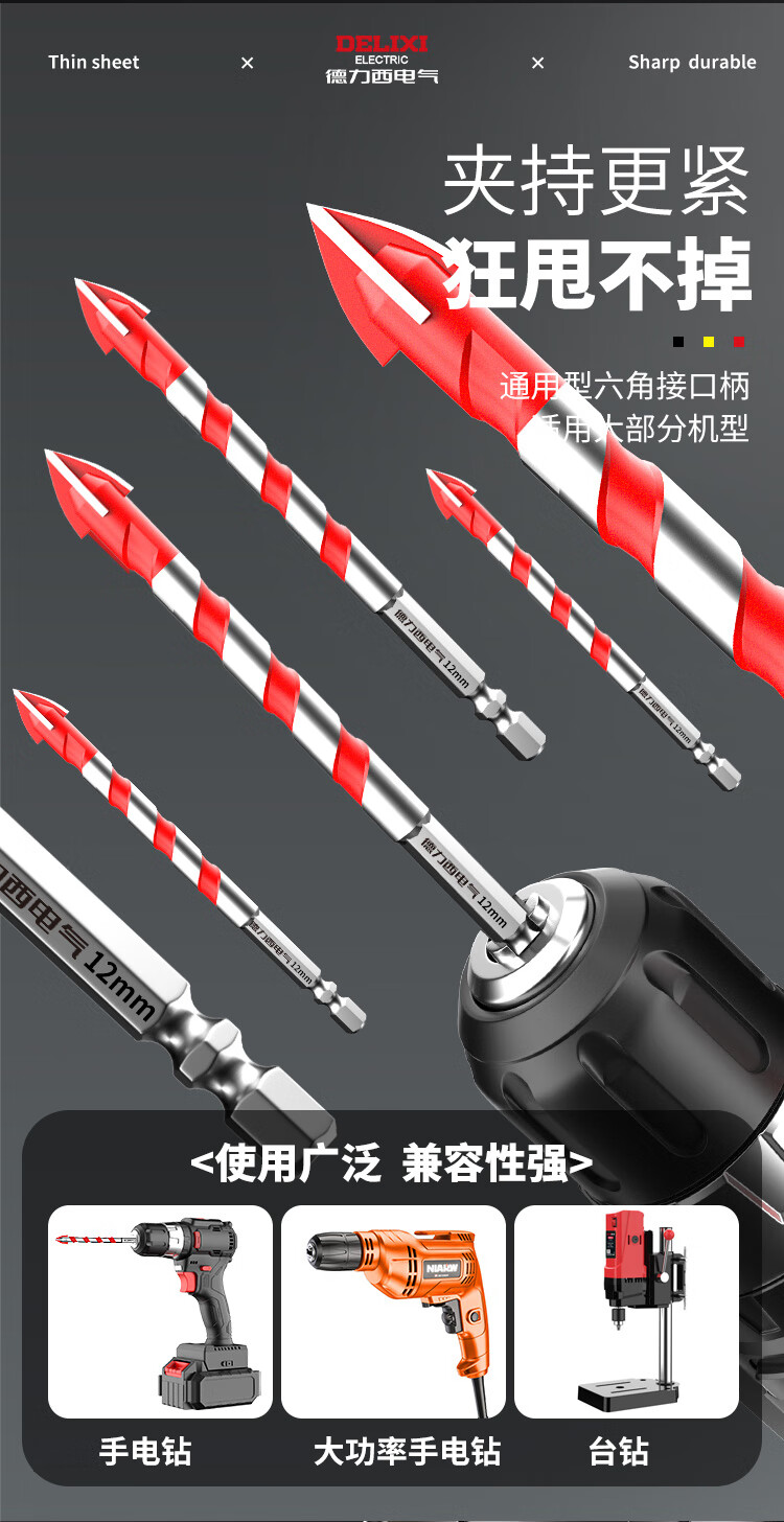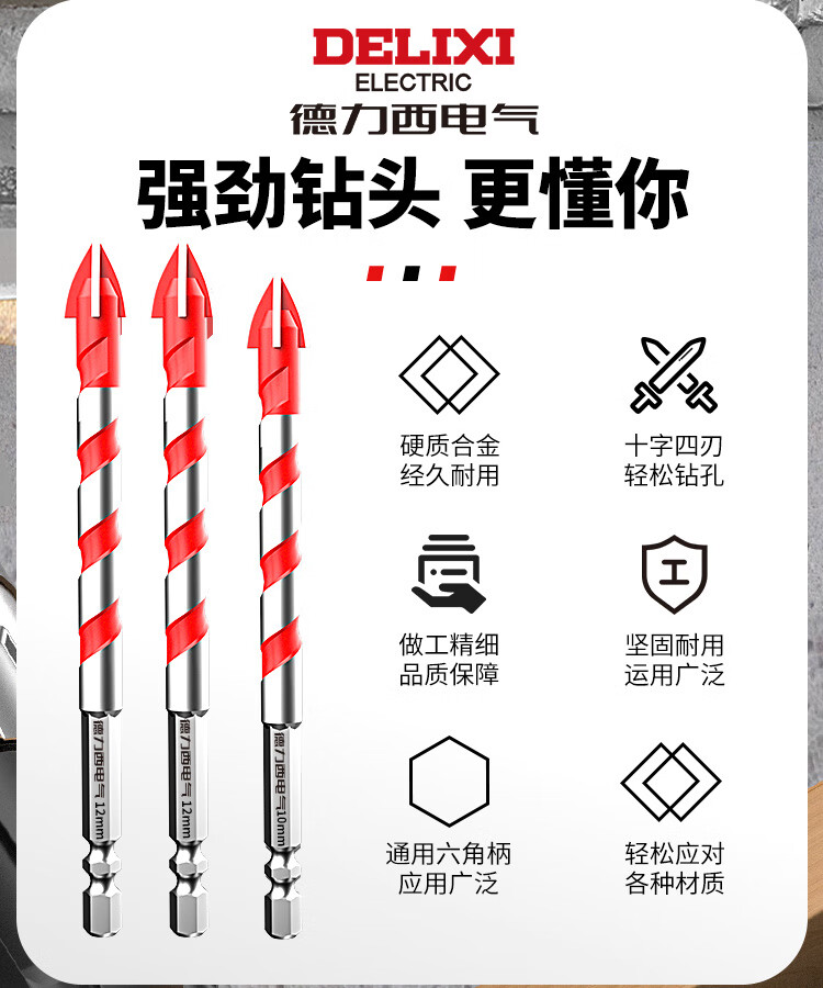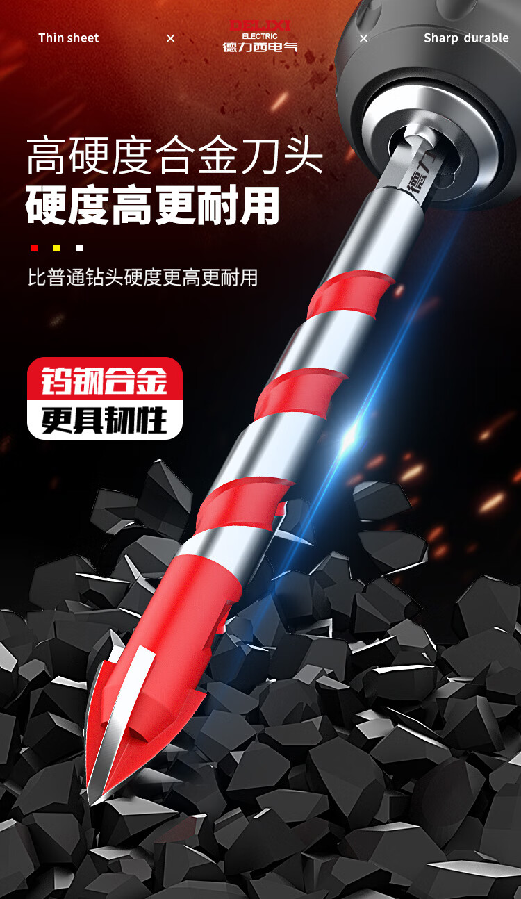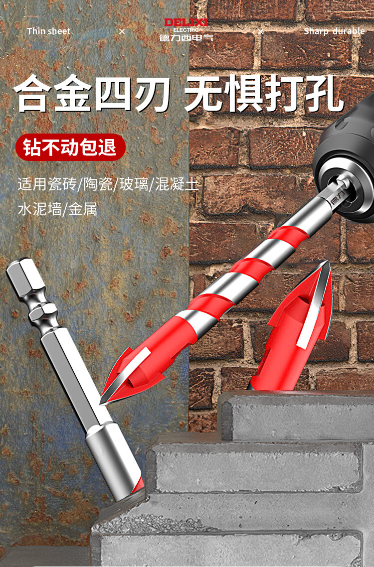Delixi Electric tile drill bit four-edged impact drill concrete triangle drill electric glass cement drilling special 6mm four-edged overlord drill 1 pack