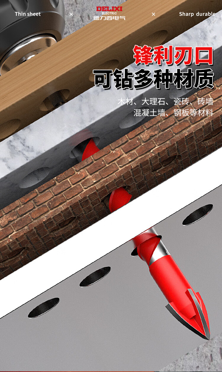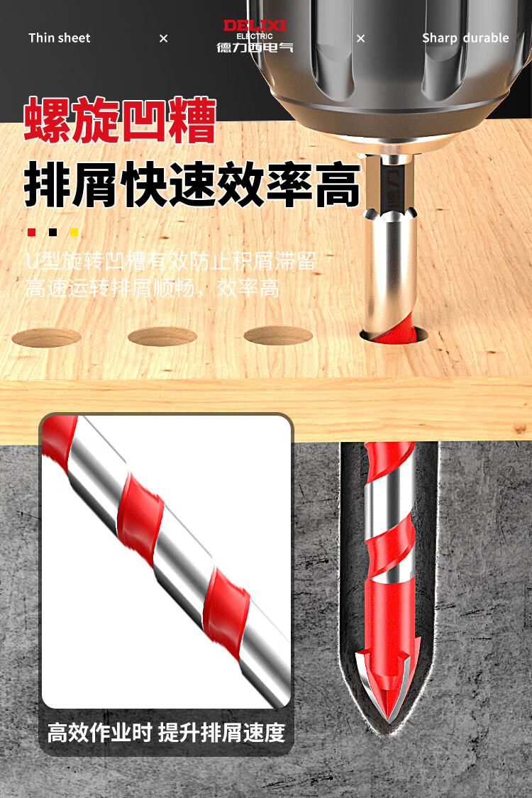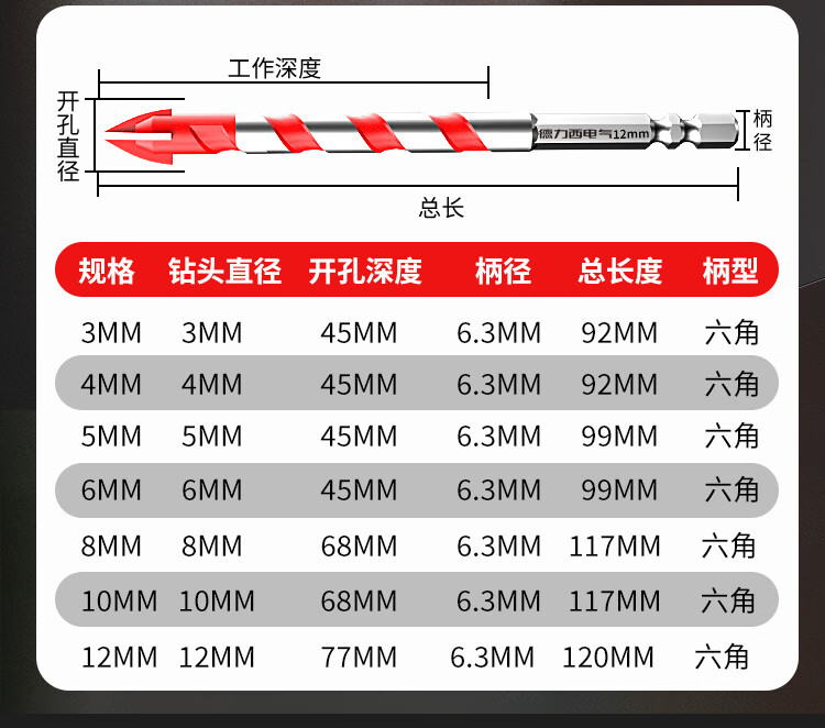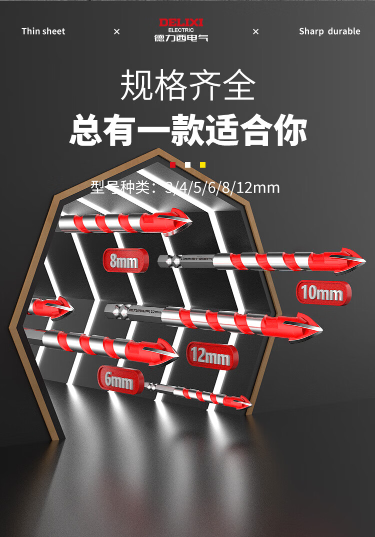 Delixi Electric tile drill bit four-edged impact drill concrete triangle drill electric glass cement drilling special 6mm four-edged overlord drill 1 pack