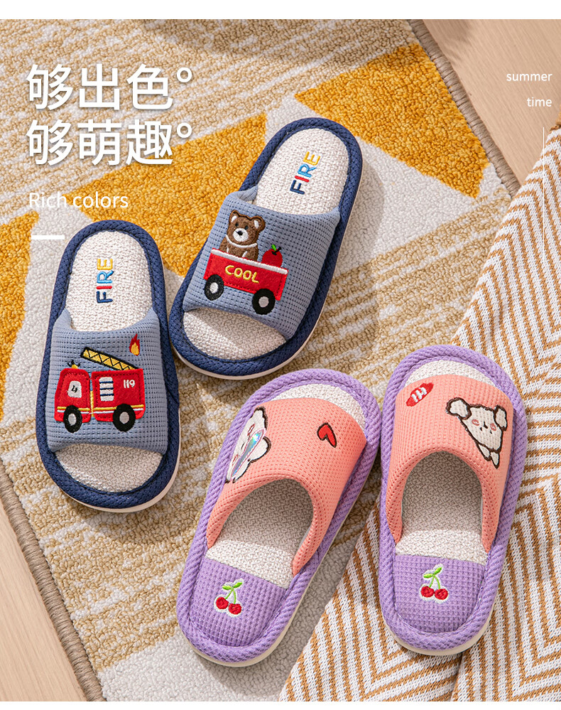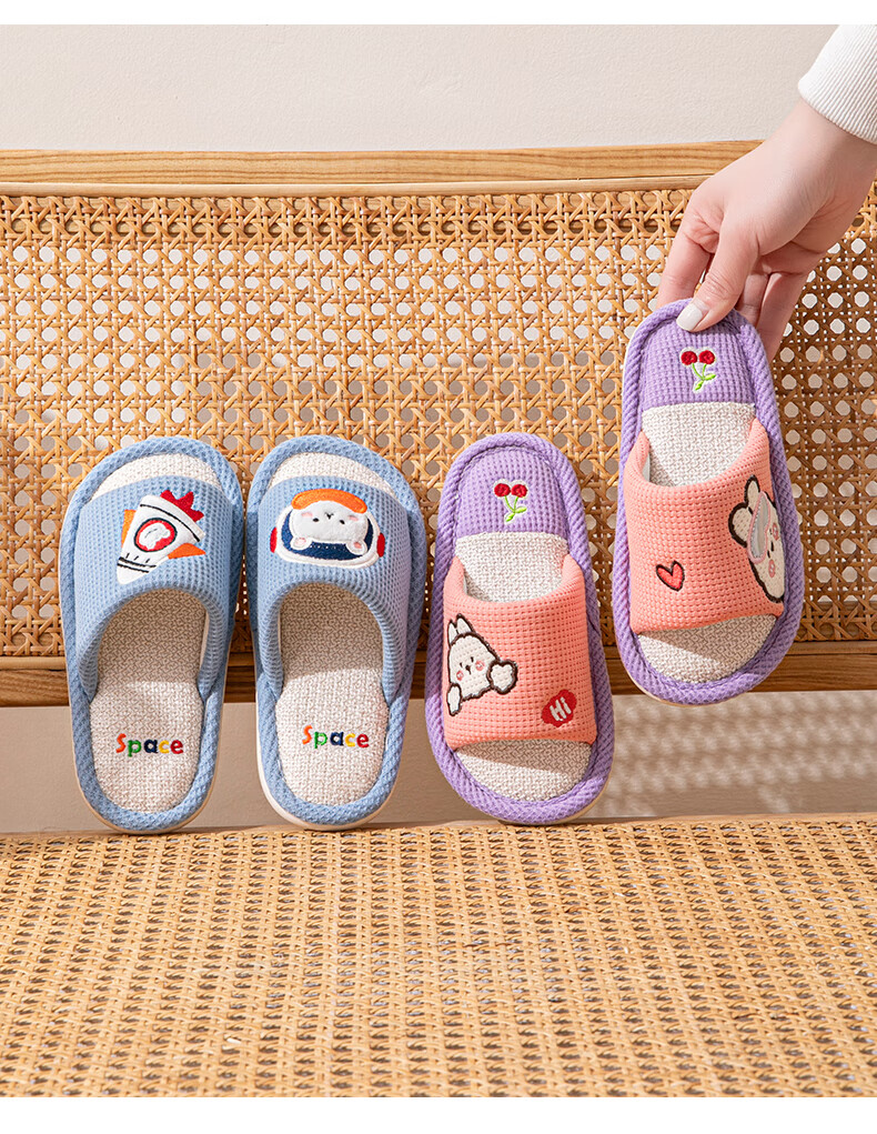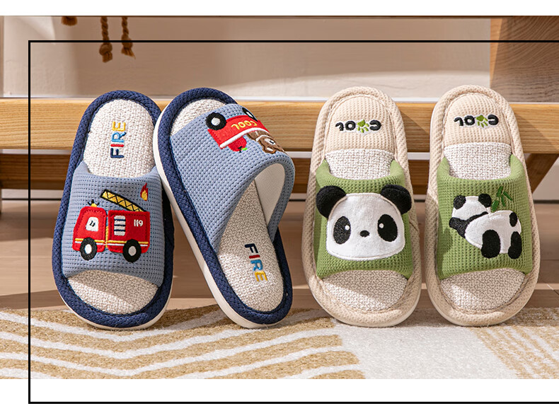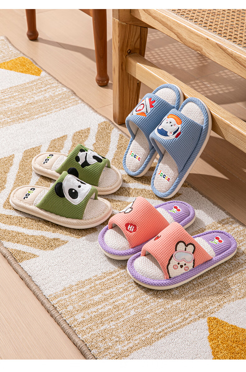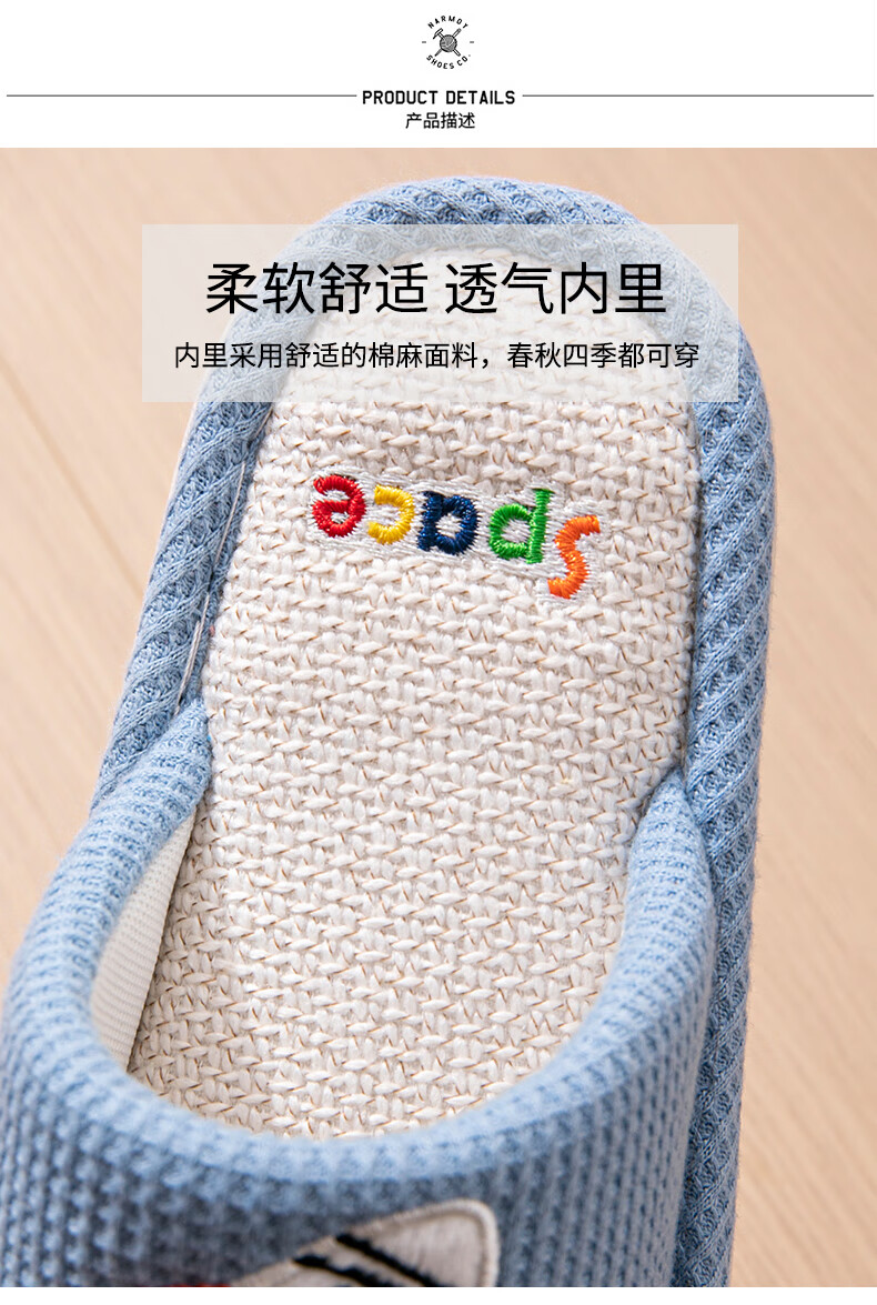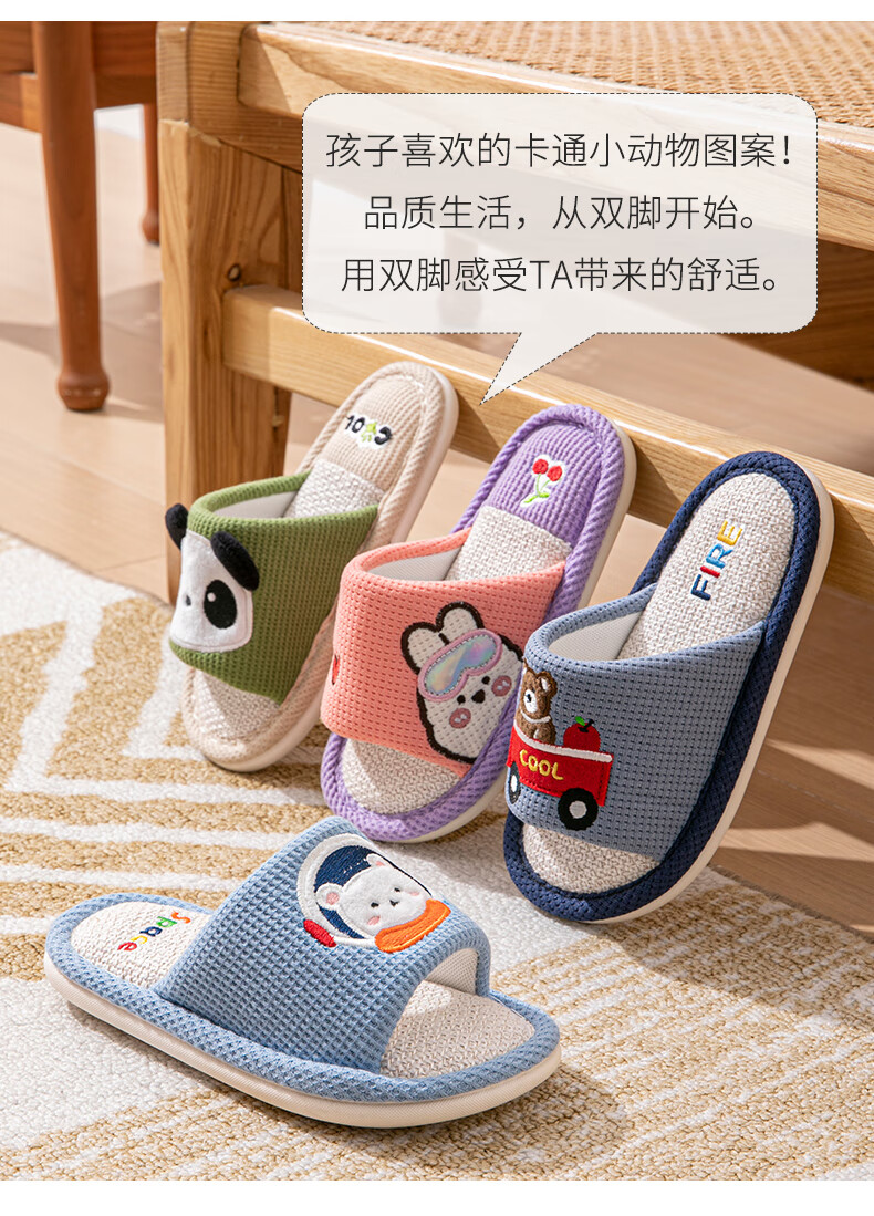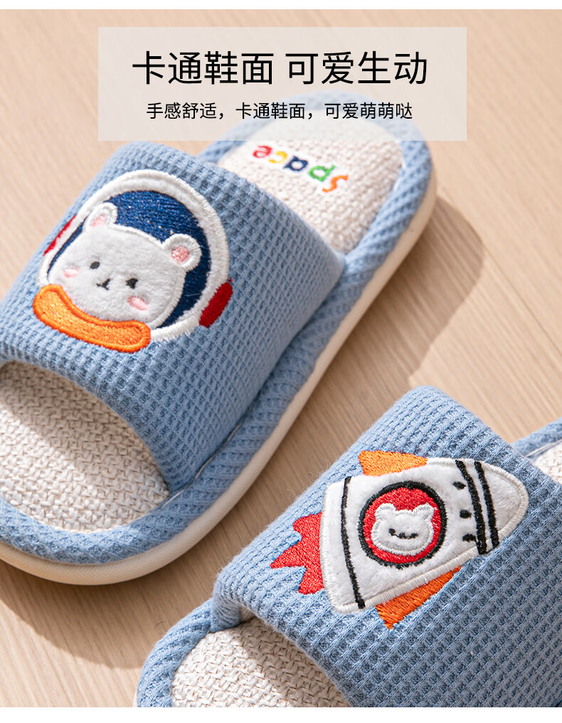 Robot Pig Spring and Autumn Children's Linen Slippers Boys and Girls Non-Slip Household Cartoon Indoor Kids Baby Cotton Linen Slippers Blue 26-27 Sizes Inner Length 17cm