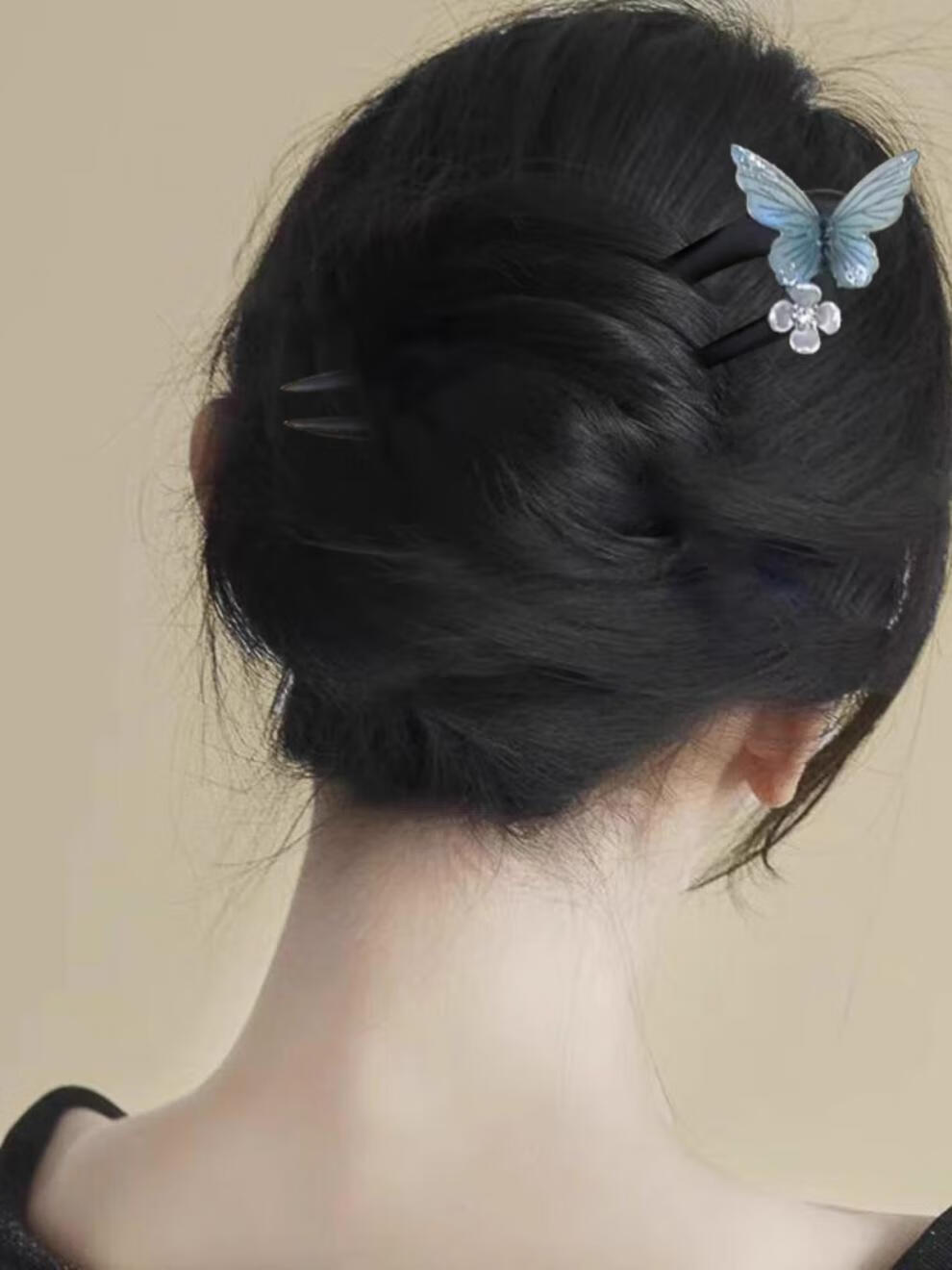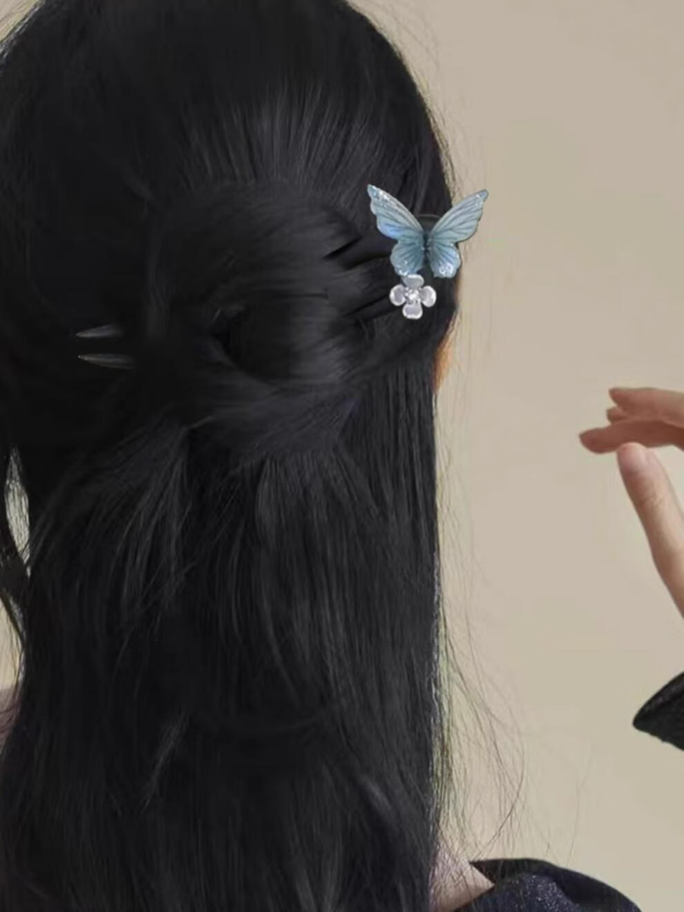 Xiang Princess Magnolia Fragrant Blue Butterfly Hairpin New Chinese Style Retro Fairy Flower Wooden Hairpin Horse Face Skirt Hanfu Hairpin Blue Butterfly Flower Hairpin
