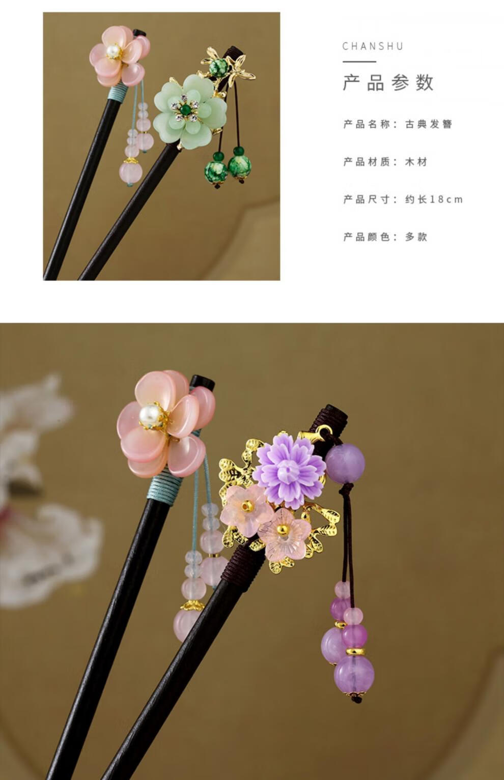 Princess Xiang's ancient style hairpin, wooden tassels, rocking wooden hairpin, daily headwear for girls, updos, Hanfu accessories, ancient hairpins for hair, Tanyuan Yimeng