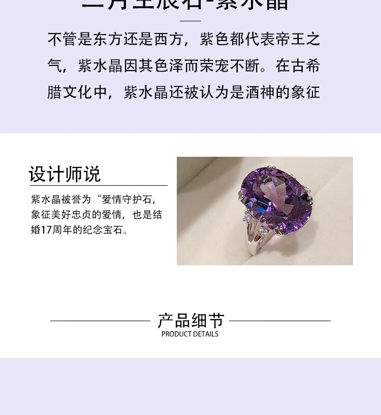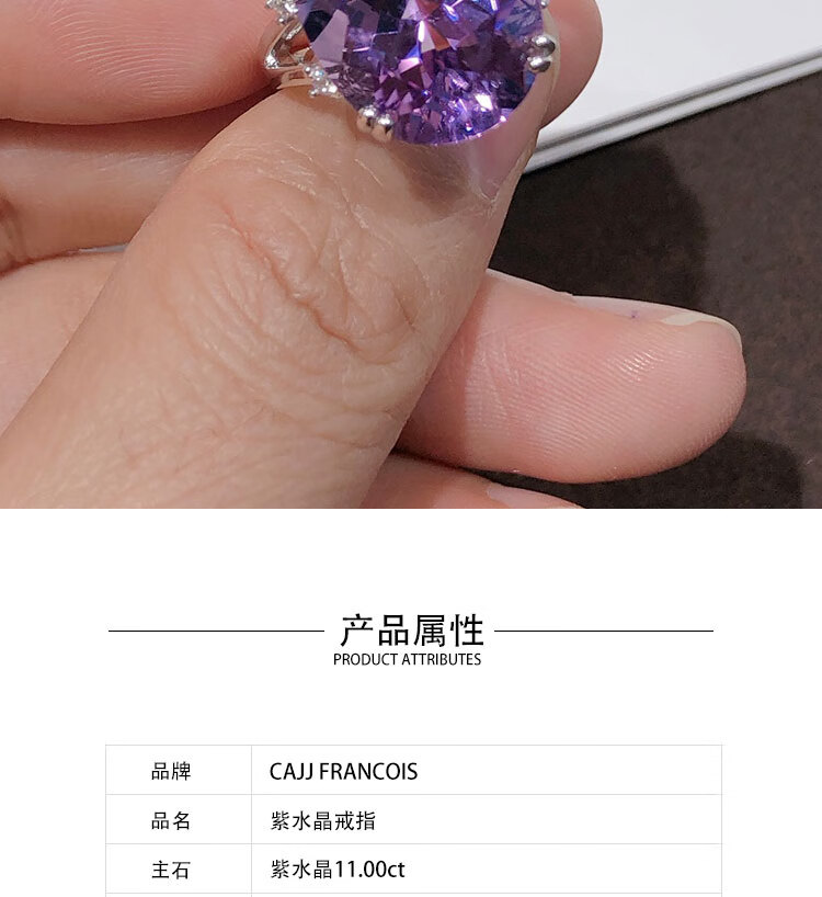CAJJ Francois 11 carat amethyst ring 925 silver luxury gift for self wear natural colored gemstone Hong Kong 13#