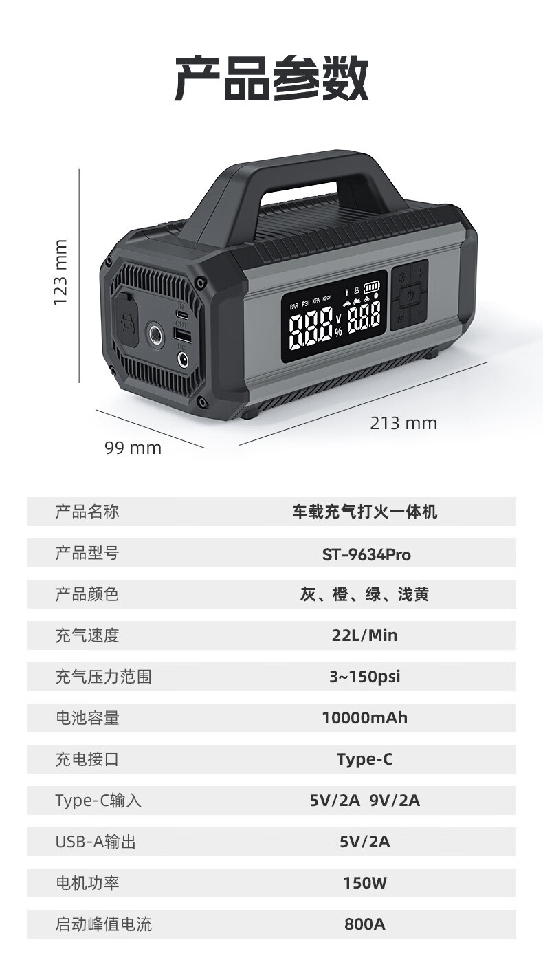 Suitu car emergency starting power supply equipped with air pump all-in-one igniter artifact large capacity car orange wireless air pump outdoor emergency power supply 4*2500mAh all-in-one machine
