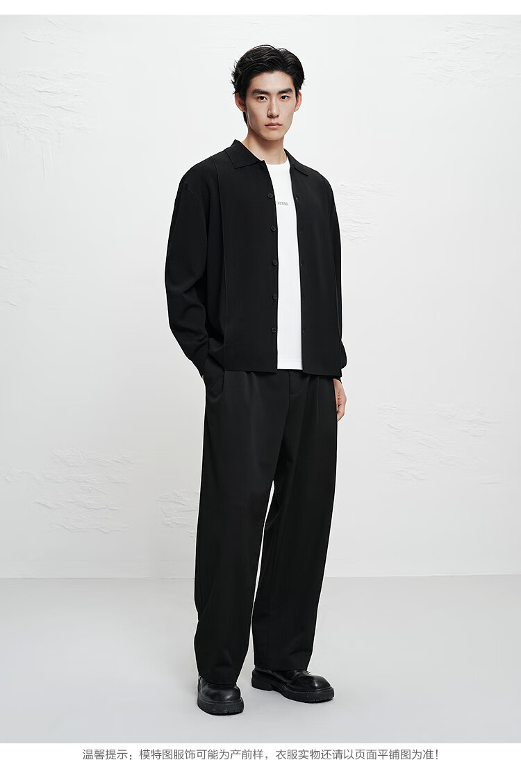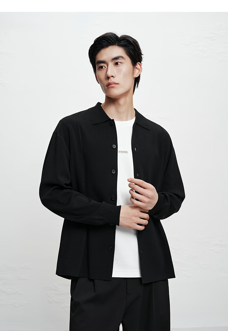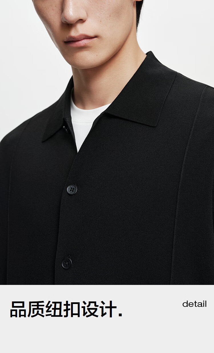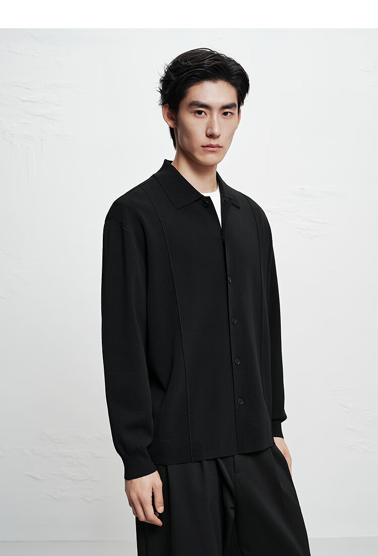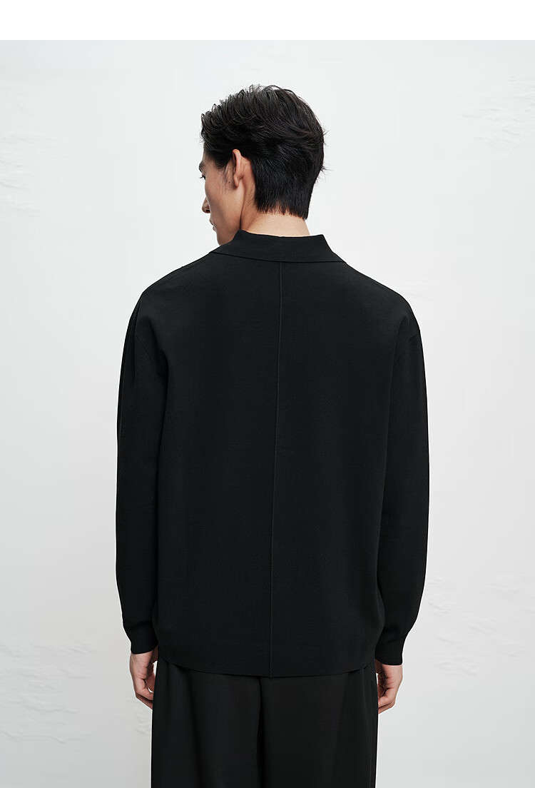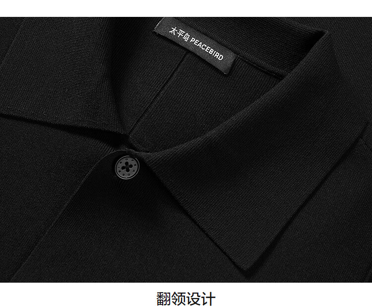PEACEBIRD Men's Shopping Mall Sweatshirt Men's Acetate Fabric Black Lapel Sweater B1EAF1429 Black 1 L