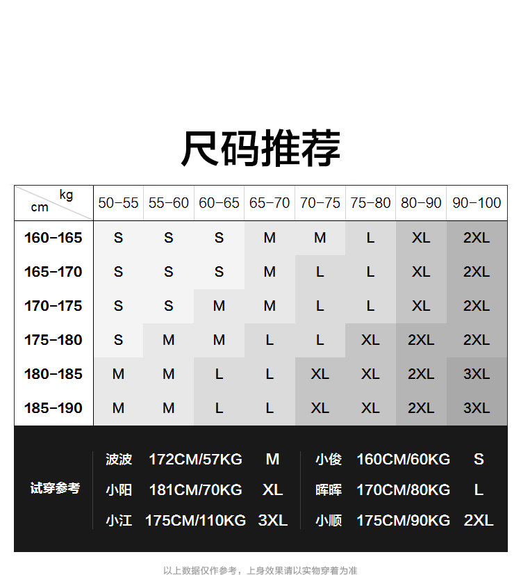 China (cm) 165 / 88-90 170 / 96-98 175 / 108-110 180 / 118-122 185 / 126-130