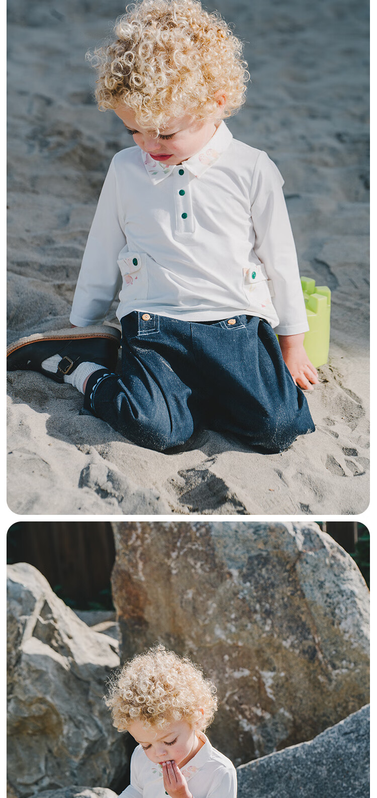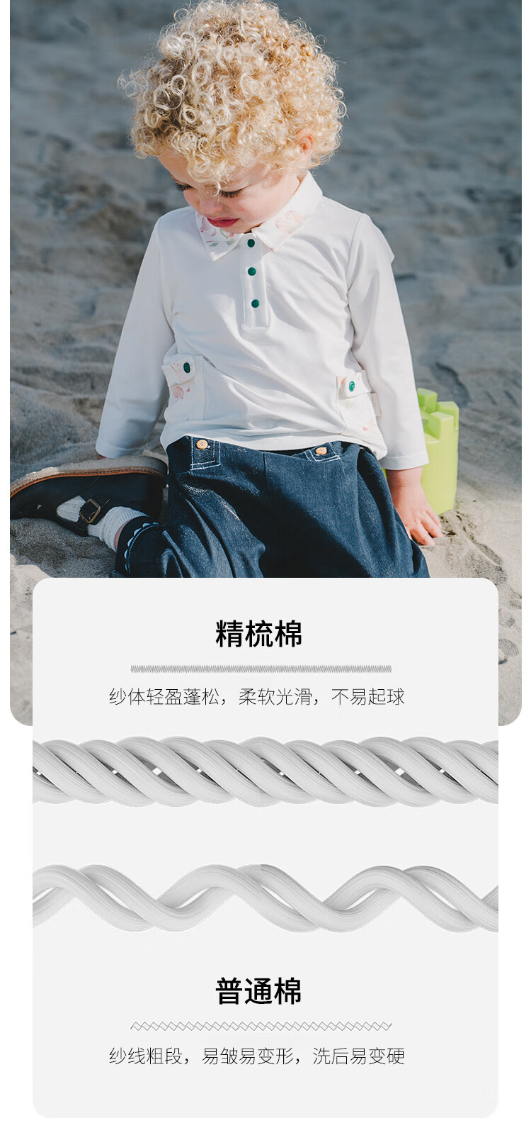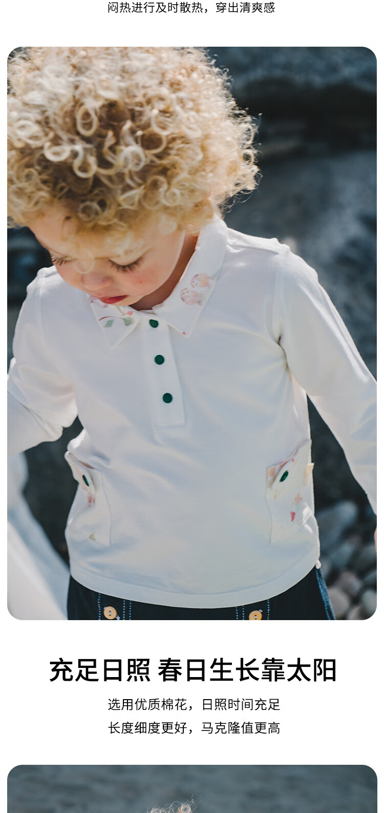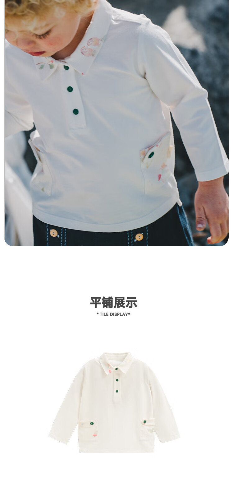 White wheat boys 2025 spring new long-sleeved children's lapel polo shirt little girl T-shirt bottoming shirt beige 80