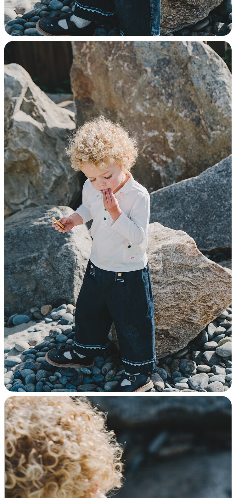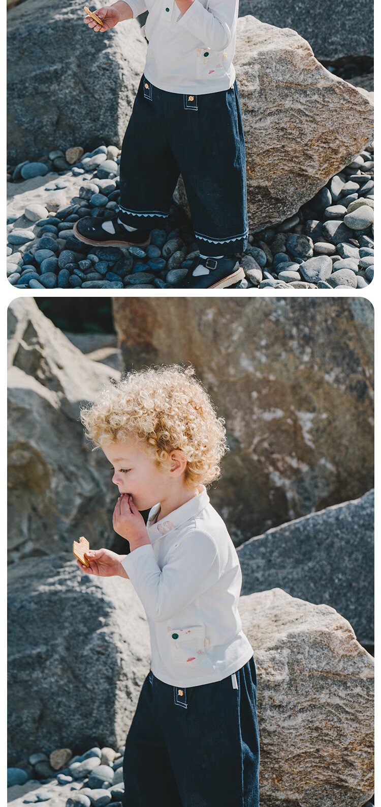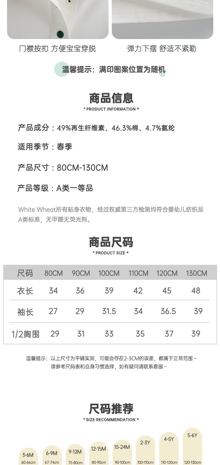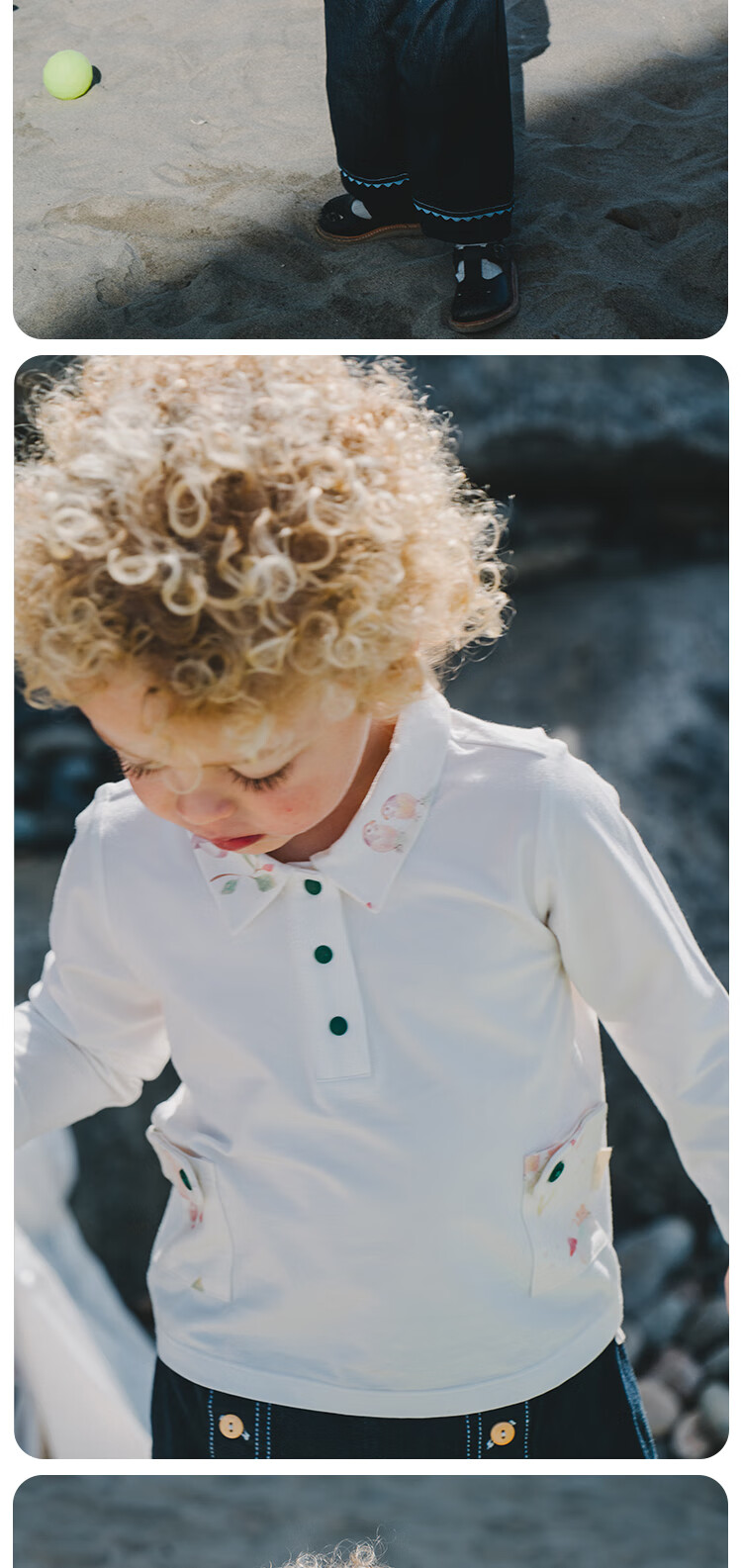 White wheat boys 2025 spring new long-sleeved children's lapel polo shirt little girl T-shirt bottoming shirt beige 80