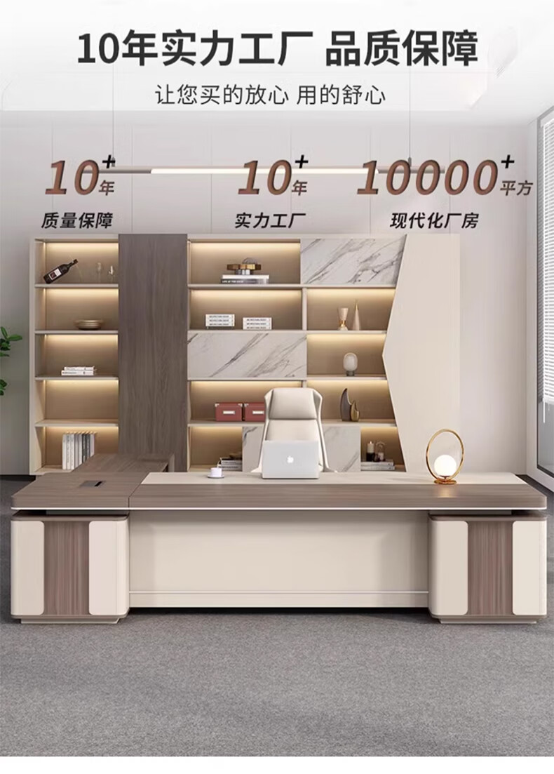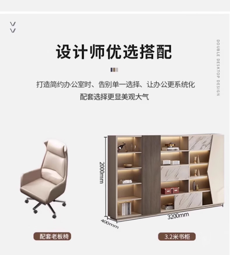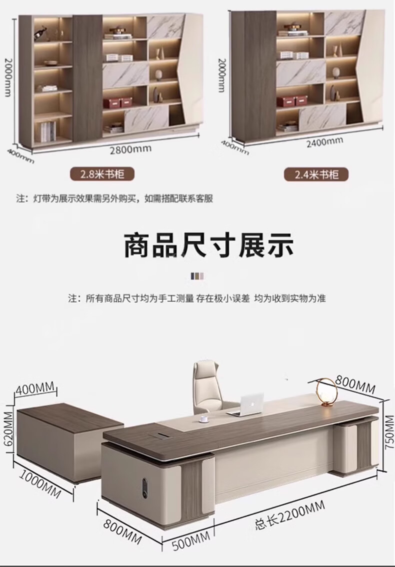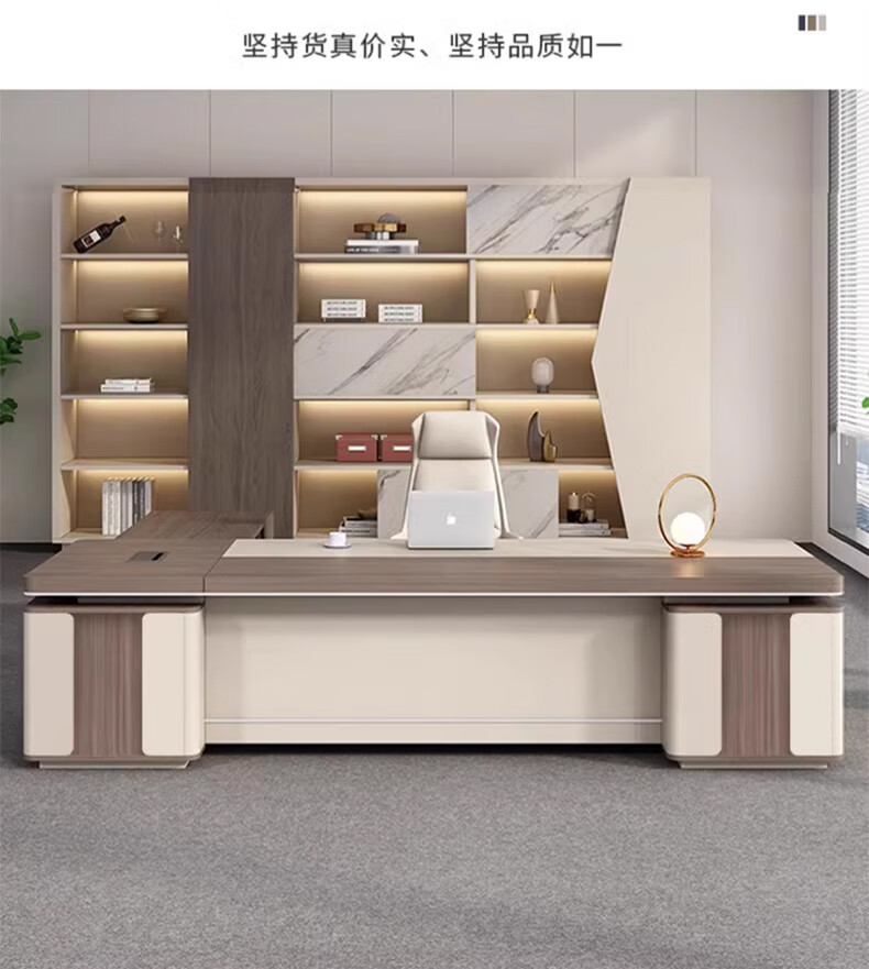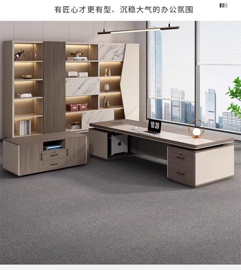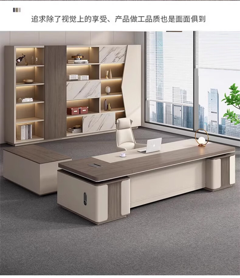 Gezhimu fashionable light luxury high-end boss desk office desk high-end executive desk simple modern chairman's office desk and chair 20 meters boss table + boss chair + 5-door bookcase