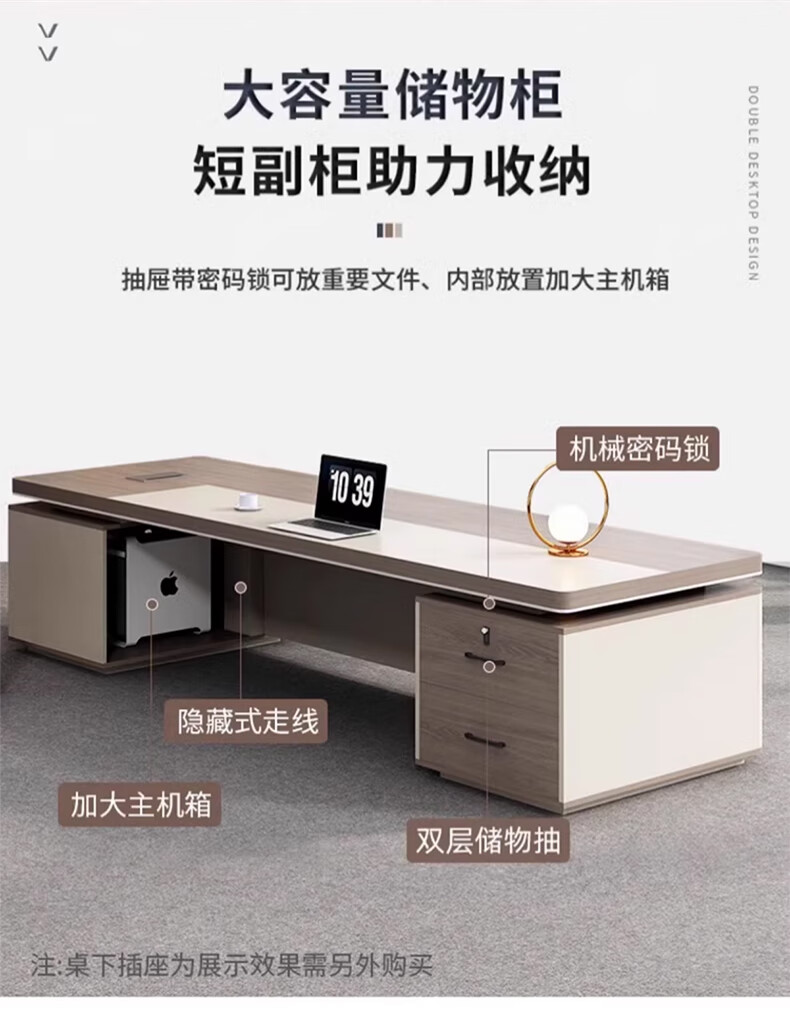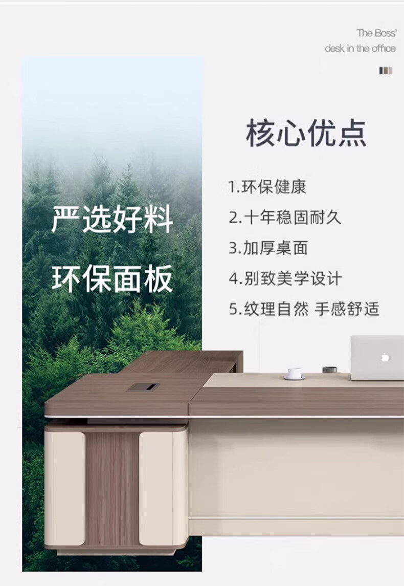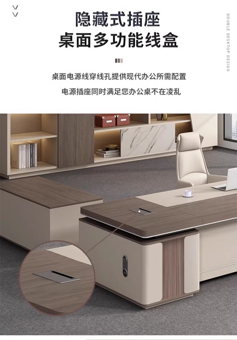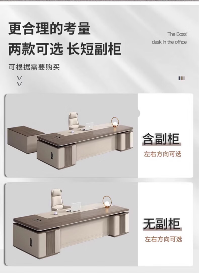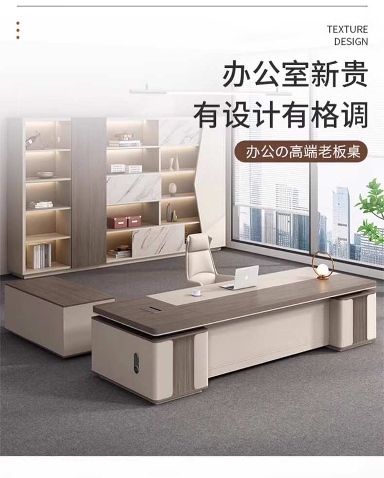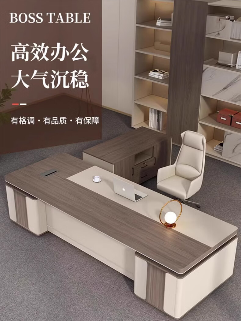 Gezhimu fashionable light luxury high-end boss desk office desk high-end executive desk simple modern chairman's office desk and chair 20 meters boss table + boss chair + 5-door bookcase