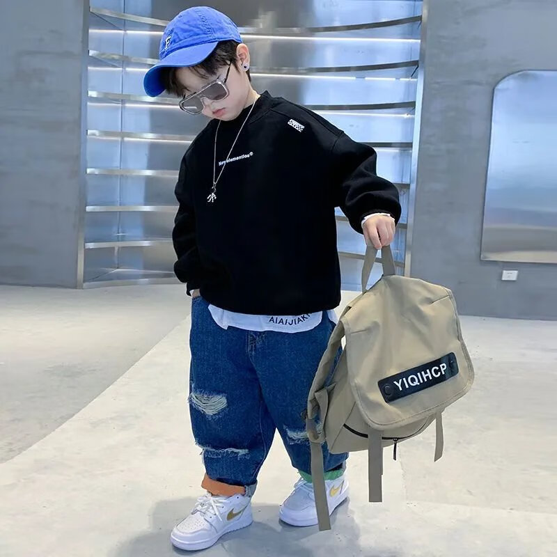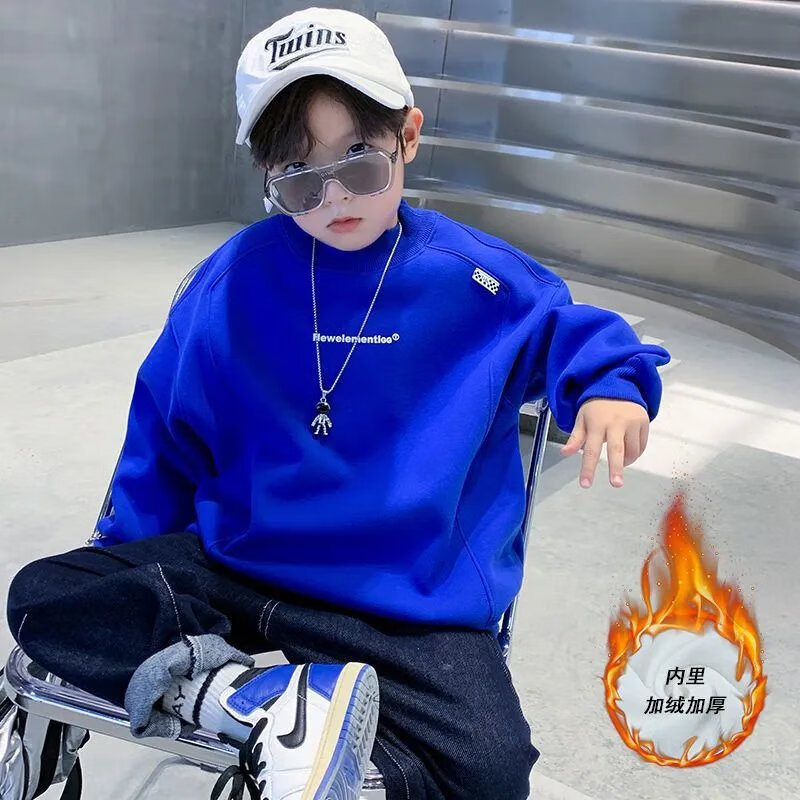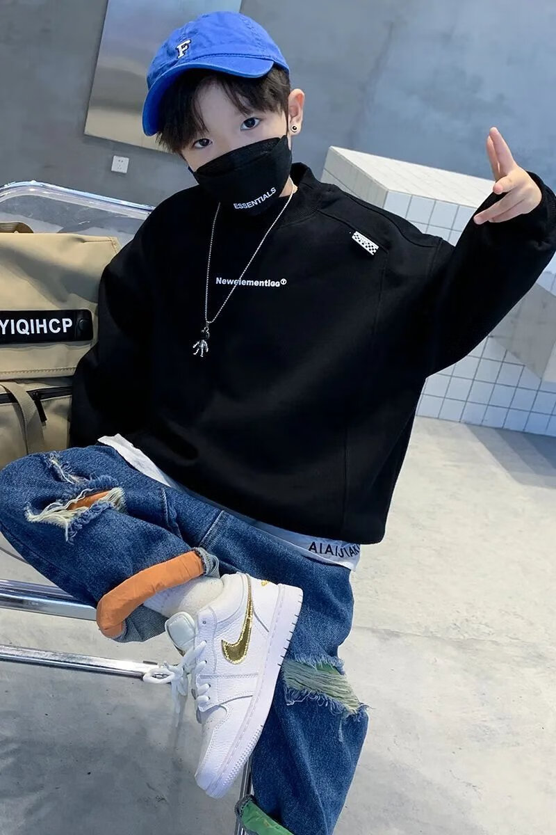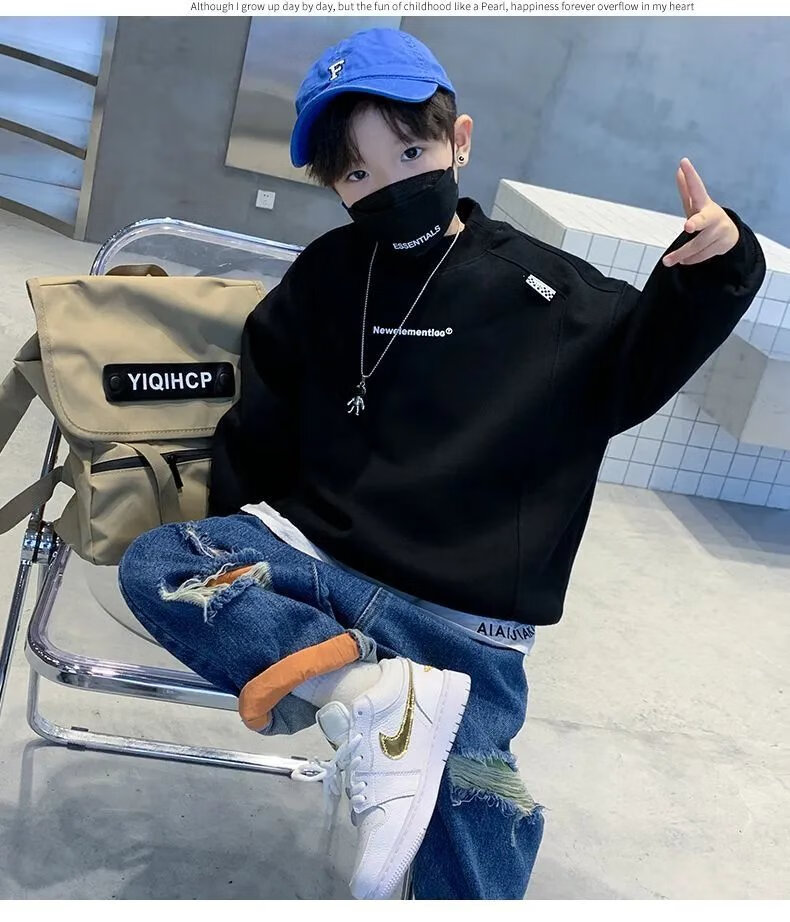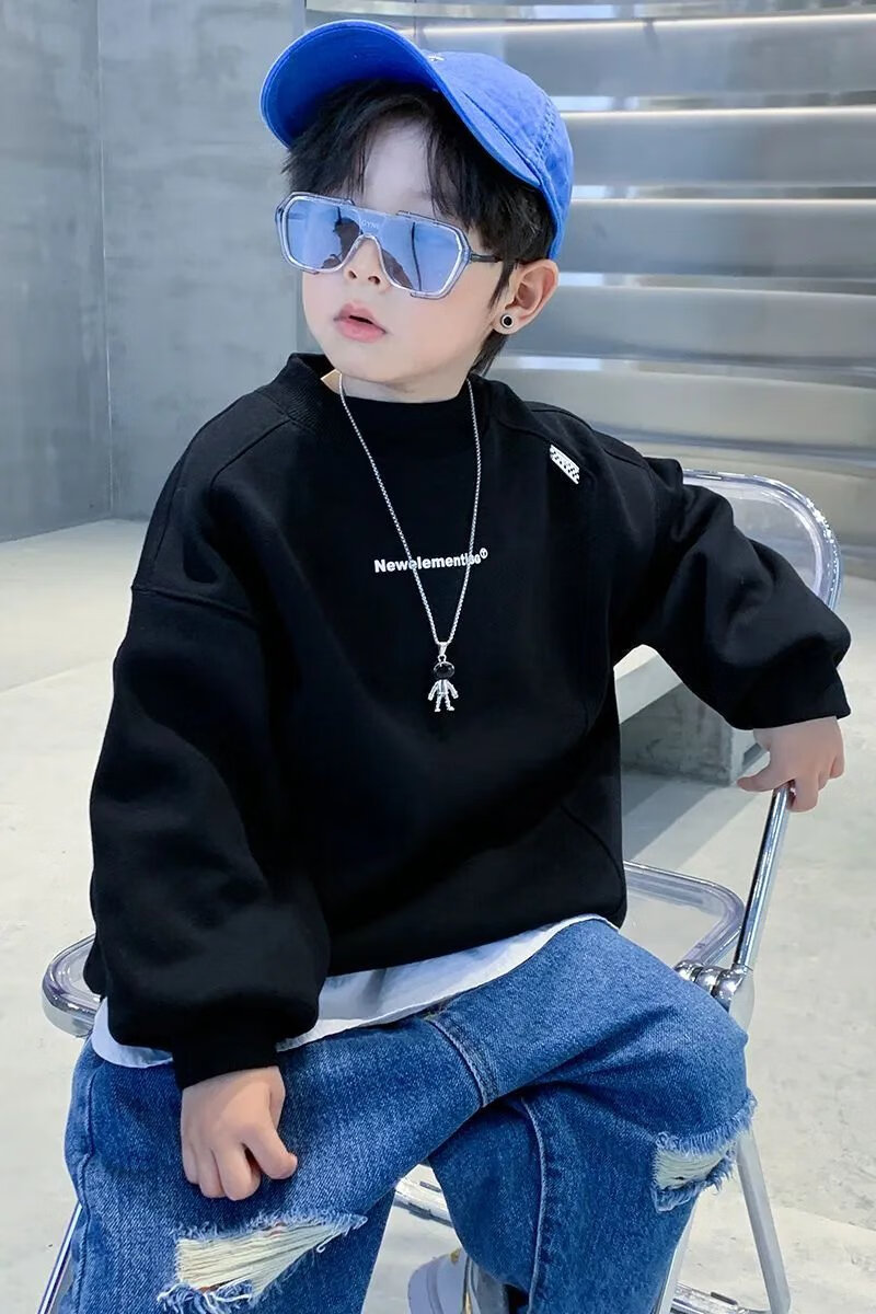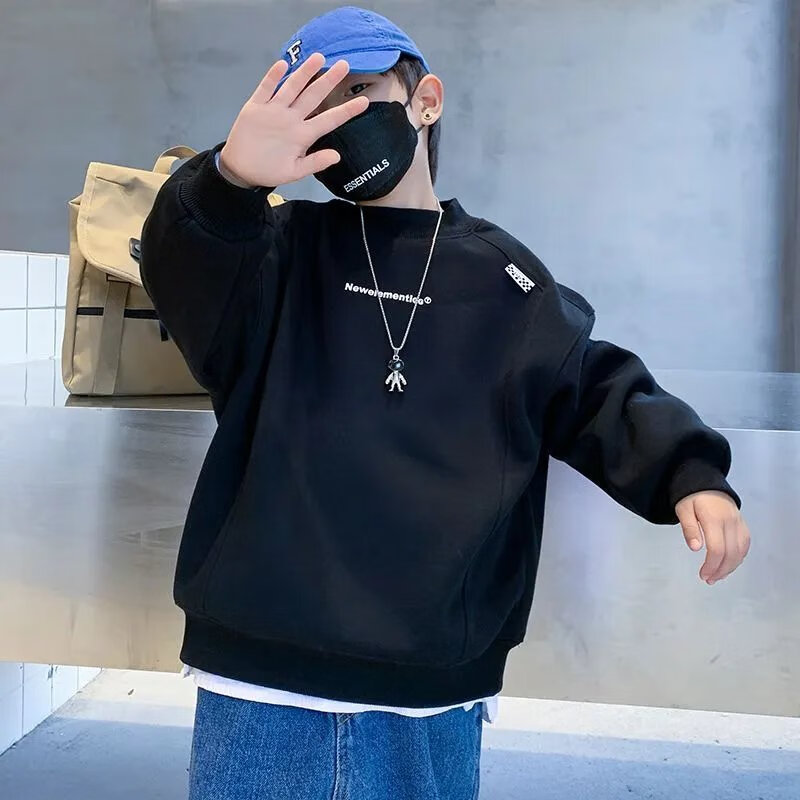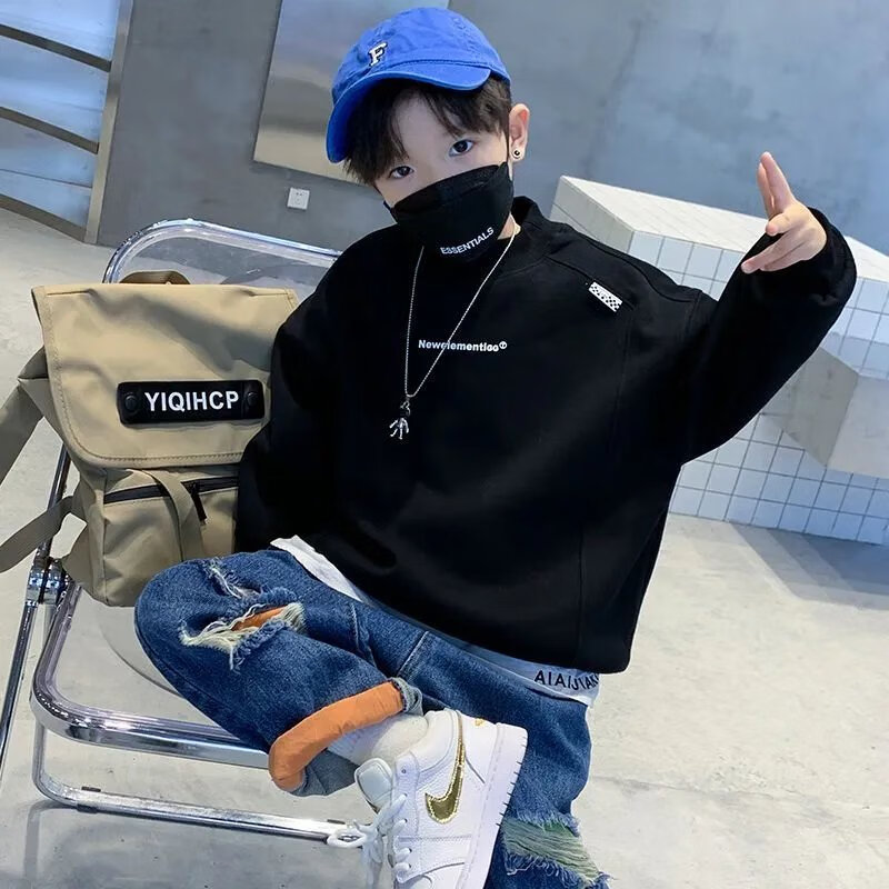 Disney (Disney) boys turtleneck spring and autumn sweatshirt Korean version loose casual fashion network dazzling children turtleneck sweatshirt boys bottoming shirt black plus velvet 110