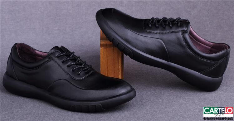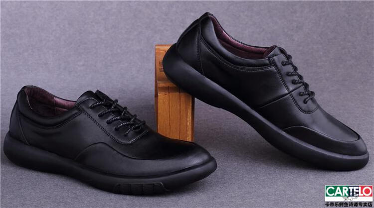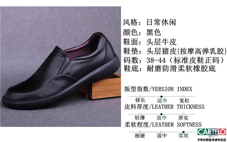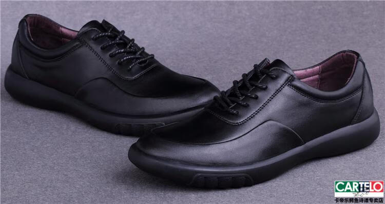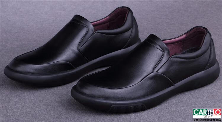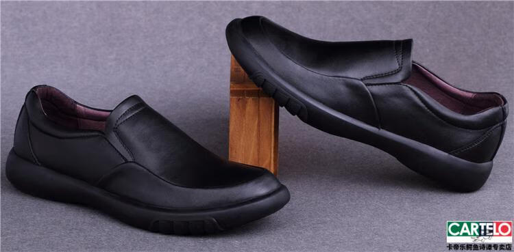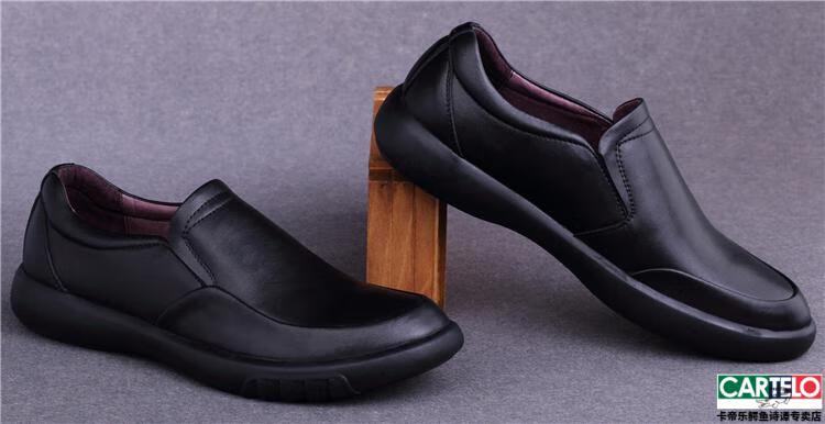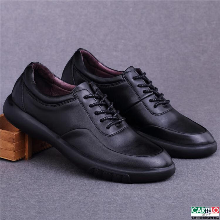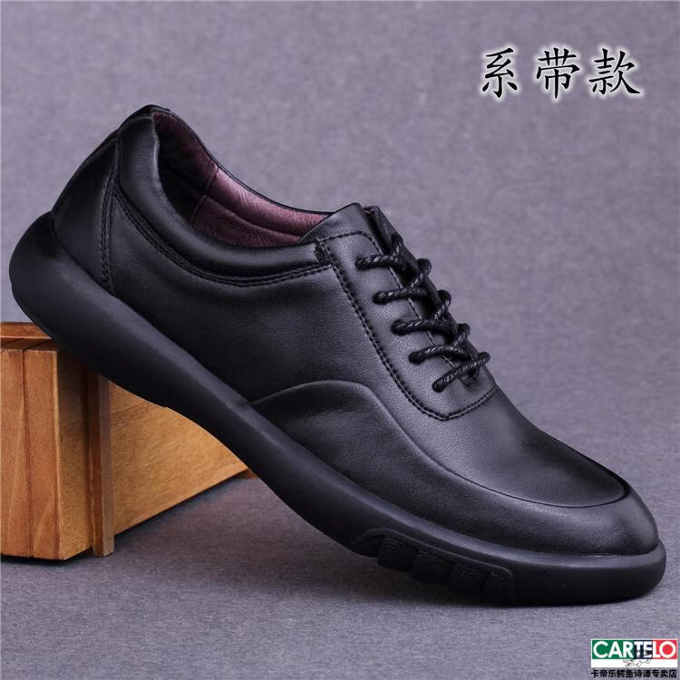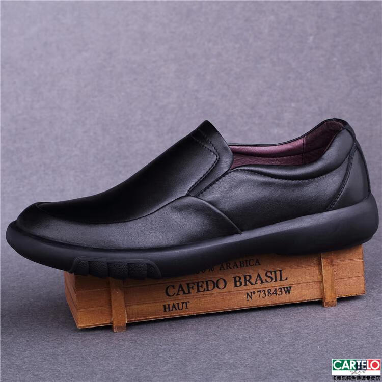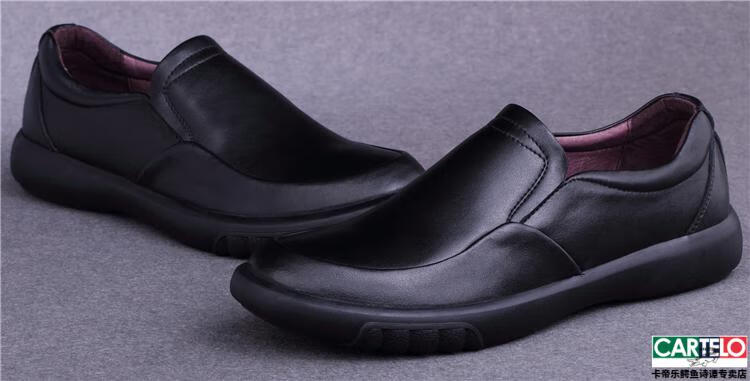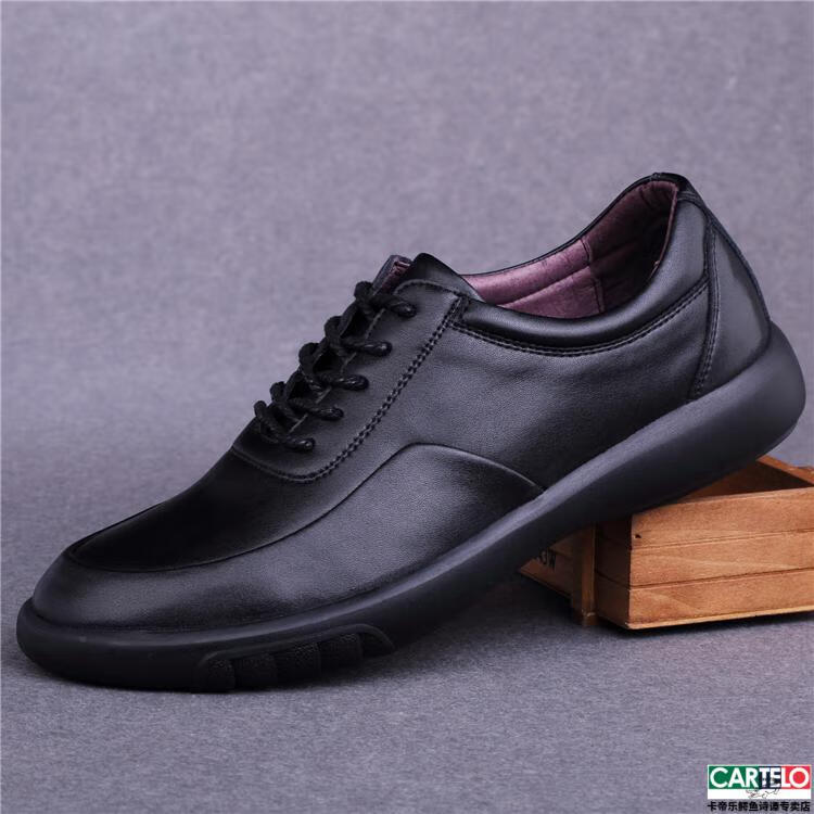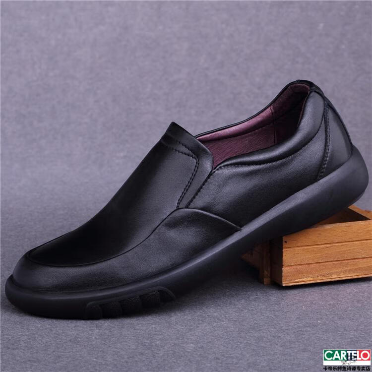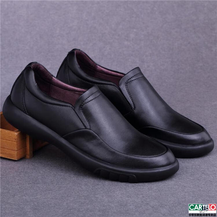 CARTELO Men's Genuine Leather Business Casual Leather Shoes Men's First Layer Cowhide Soft Leather Men's Casual Shoes Thick Sole Men's Leather Shoes Men's Shoes Black Black Sleeves 40 Standard Leather Shoes Regular Size