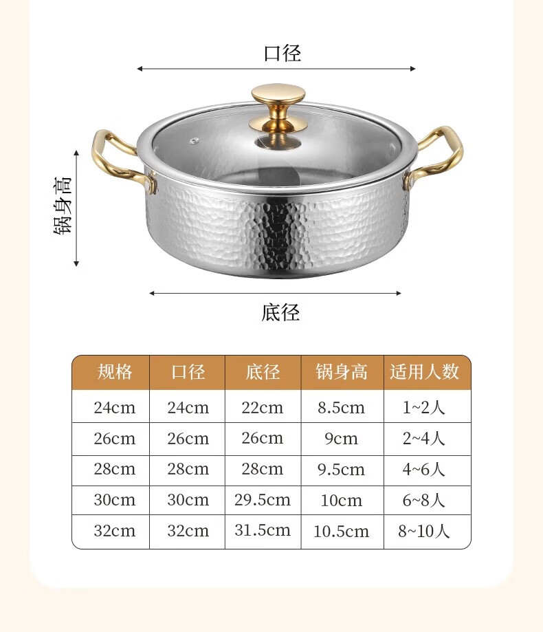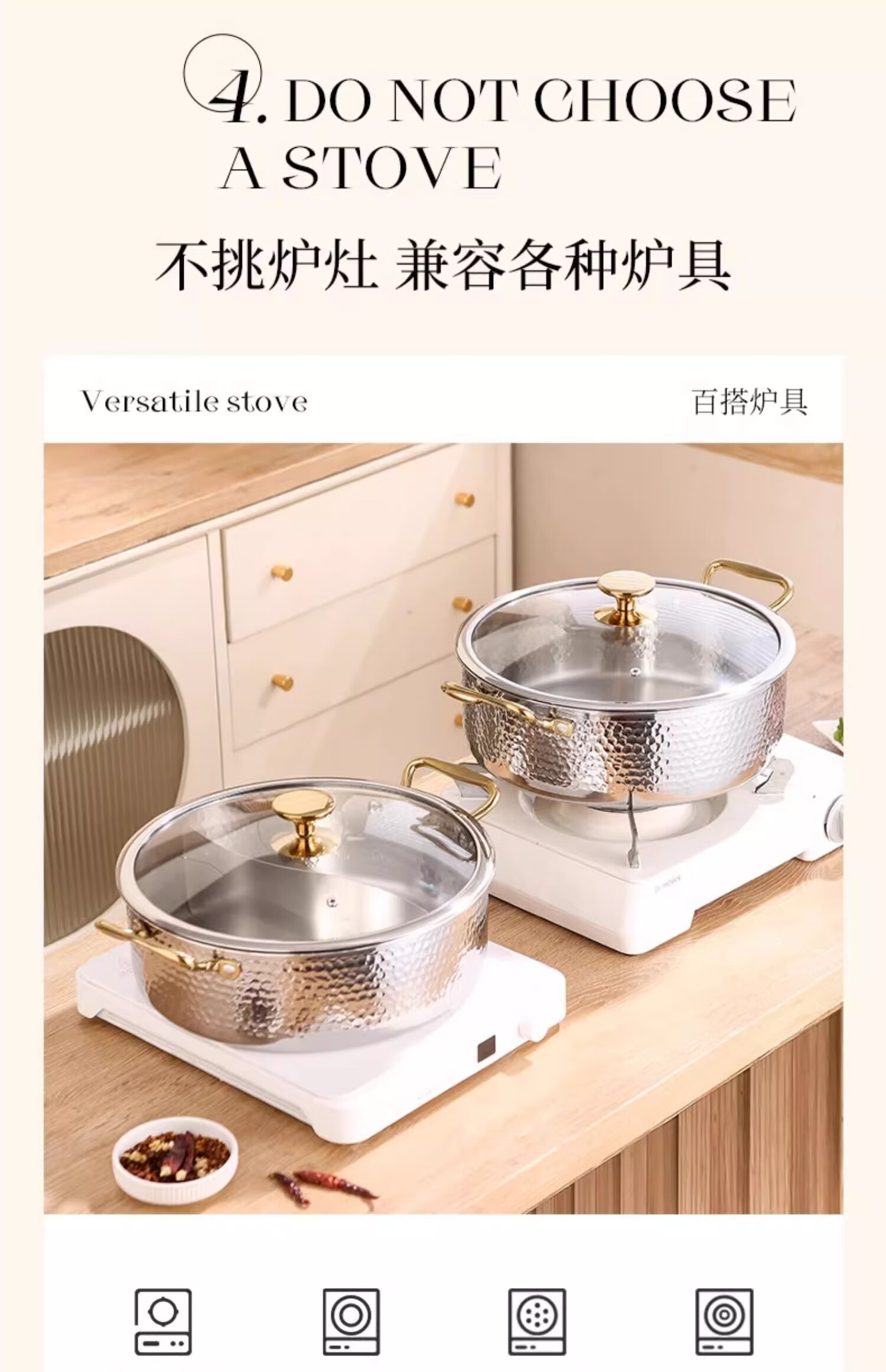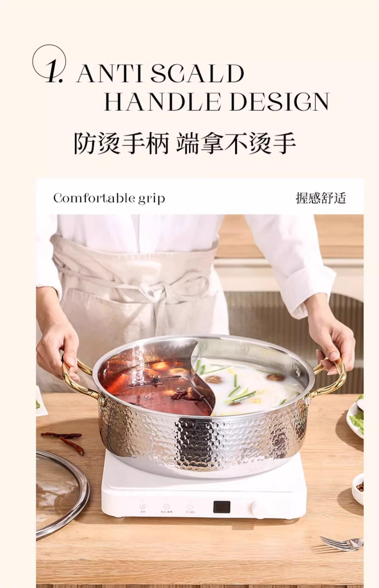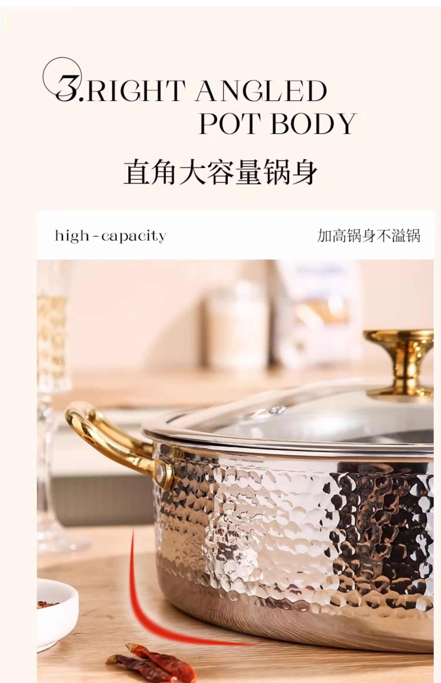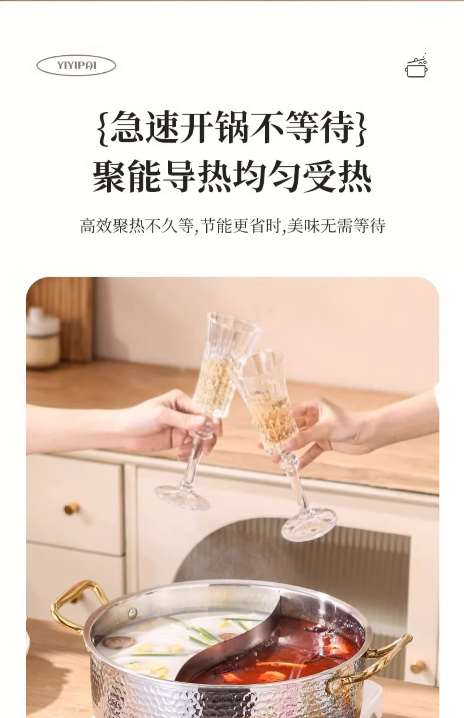 YIYIPAI thickened 316 stainless steel mandarin duck pot hammer pattern hot pot basin household pot induction cooker special 2025 new model mandarin duck hammer pattern three-layer steel thickened with lid 28cm