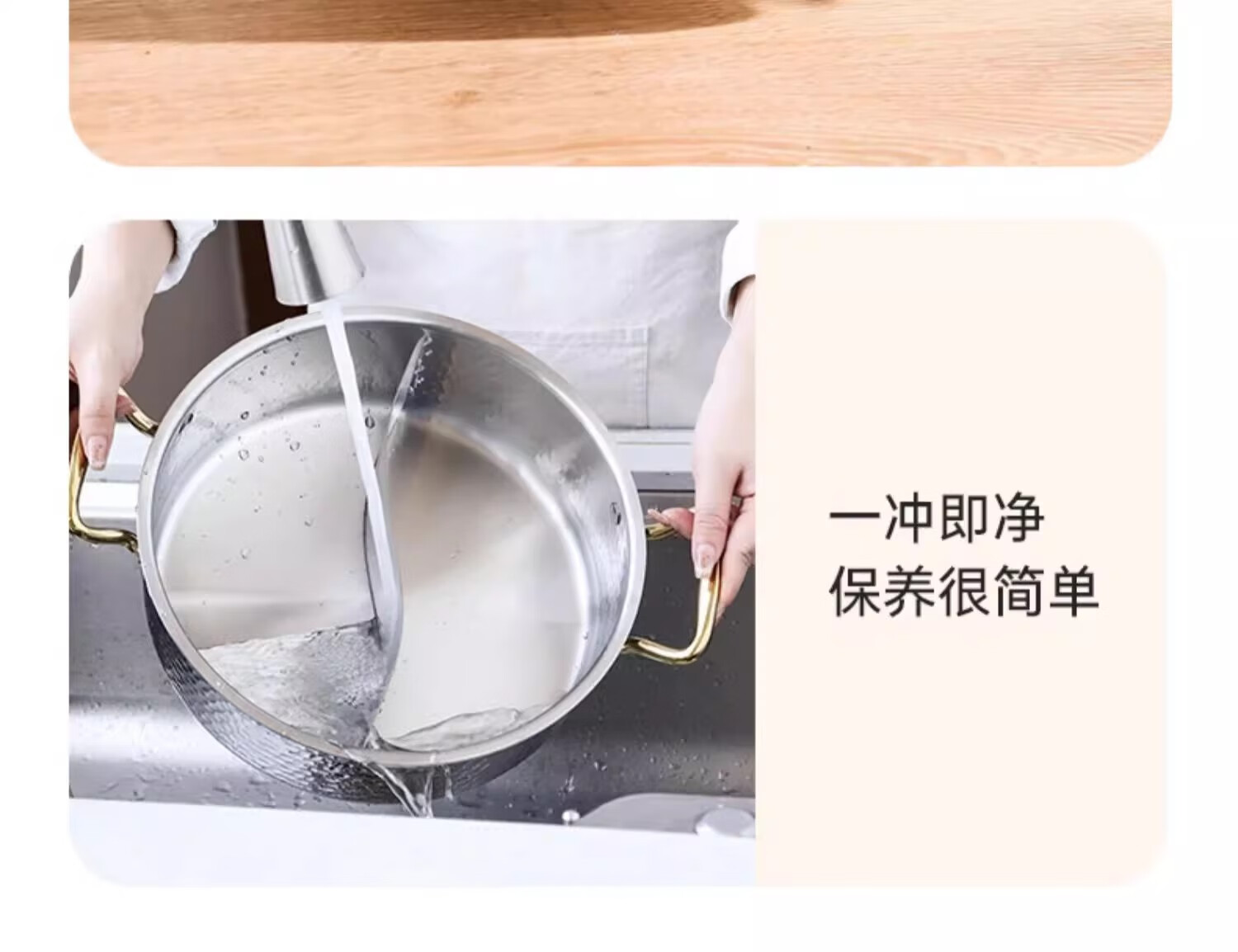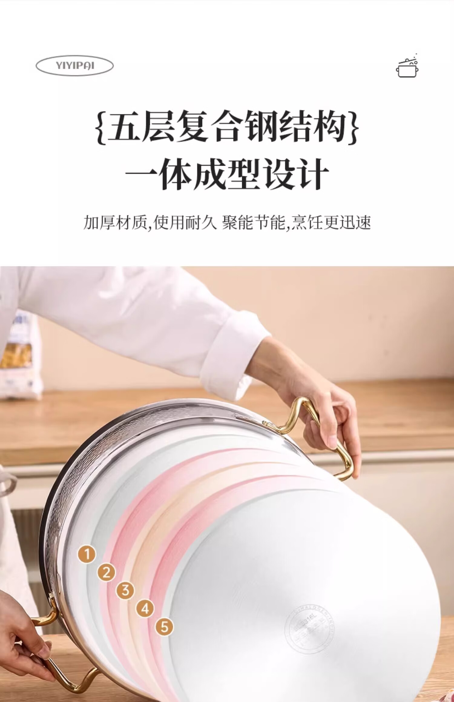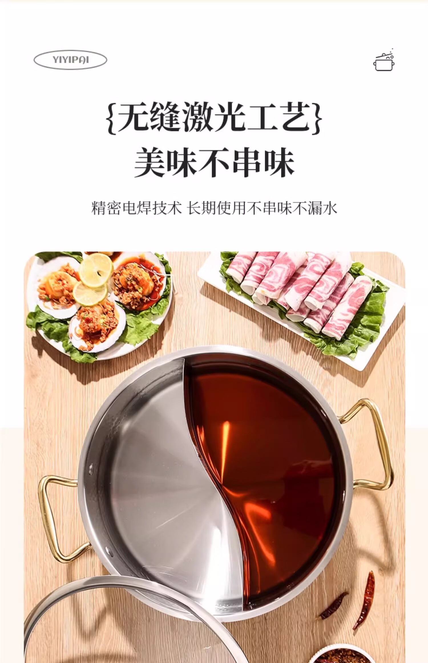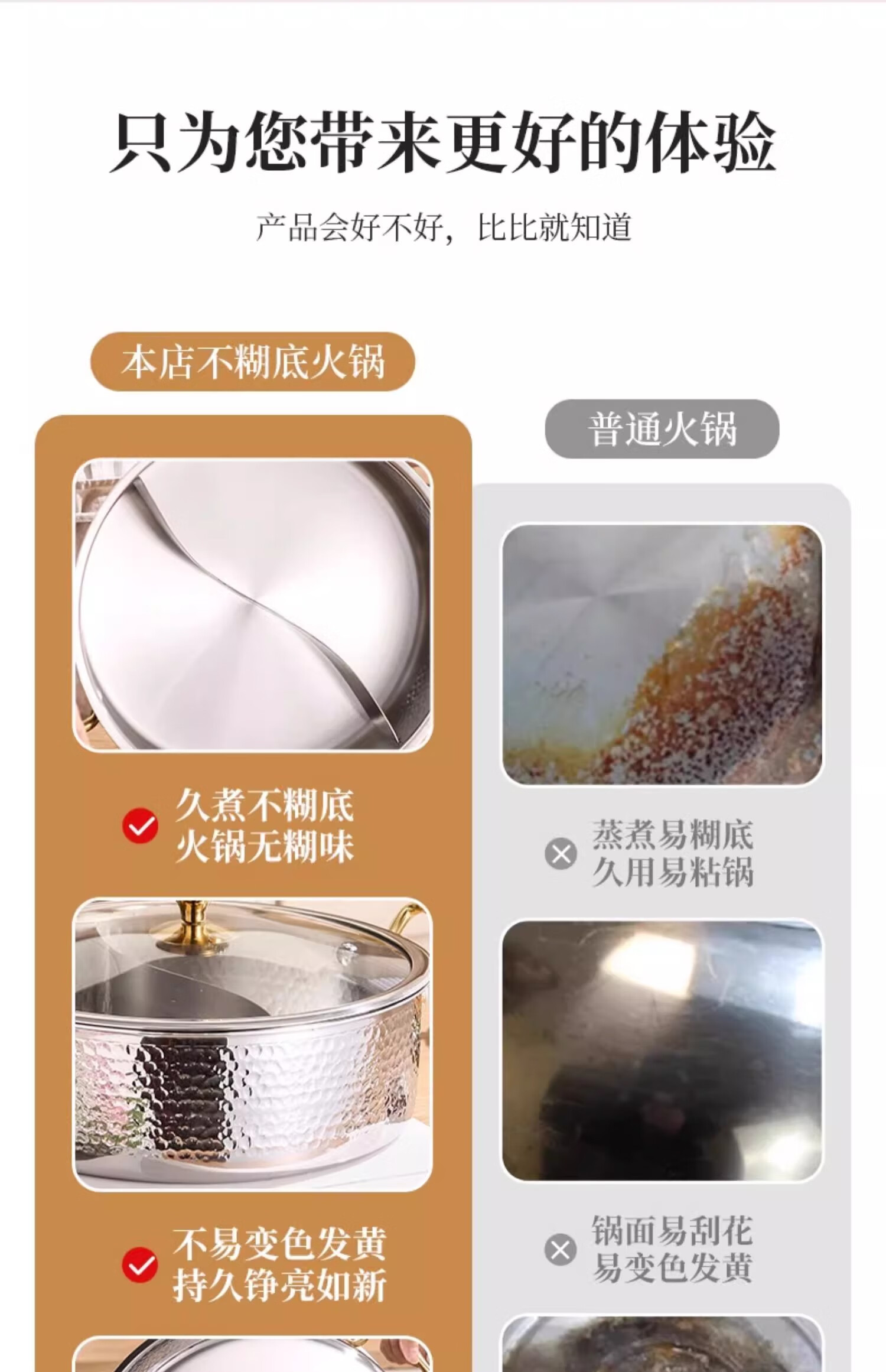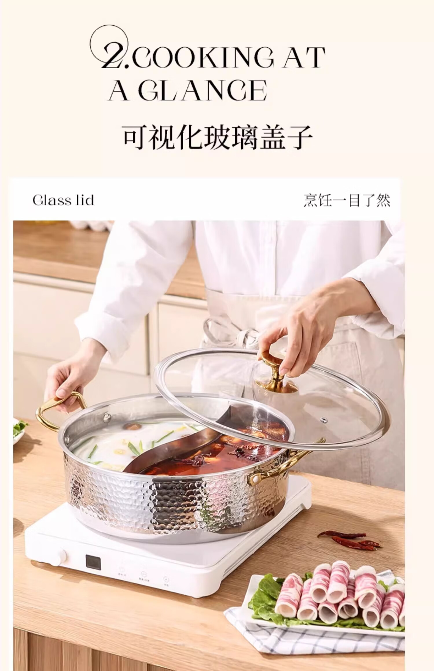 YIYIPAI thickened 316 stainless steel mandarin duck pot hammer pattern hot pot basin household pot induction cooker special 2025 new model mandarin duck hammer pattern three-layer steel thickened with lid 28cm