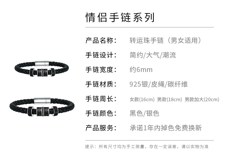 Weige small ck transfer bead bracelet boys ins niche design female couple sterling silver bracelet gift (bracelet) 2 pieces female + male 16cm + 1