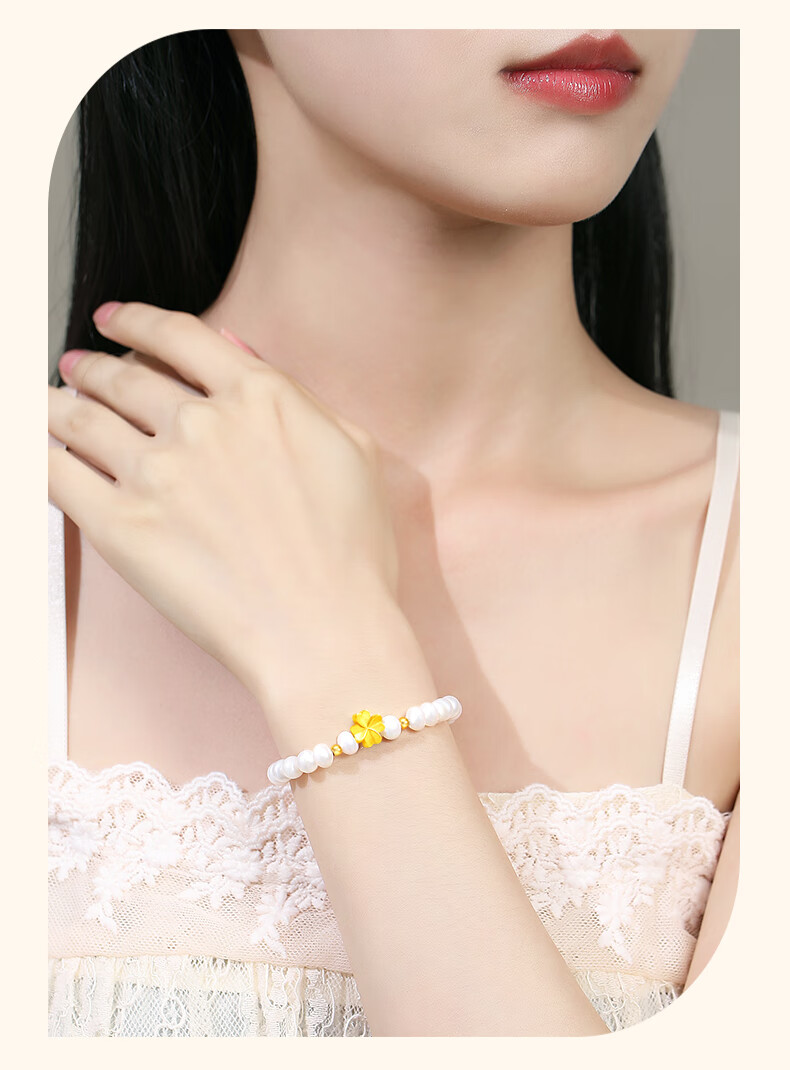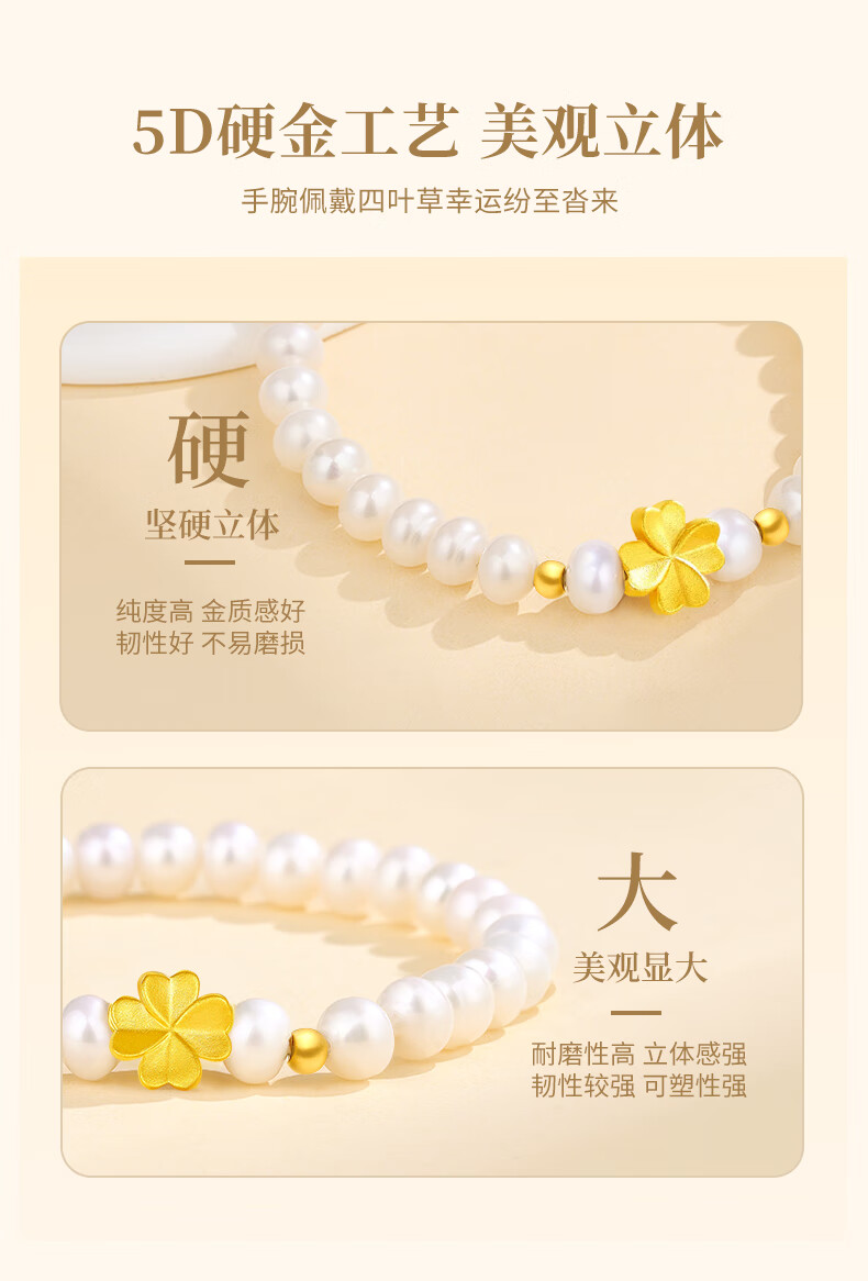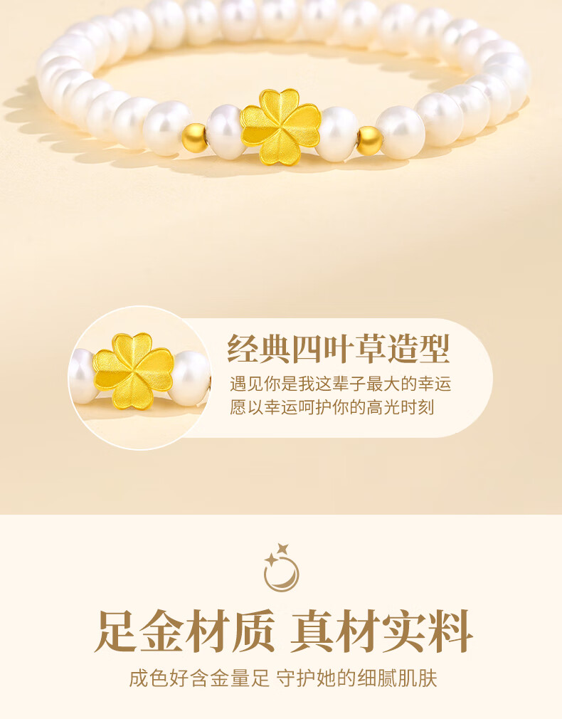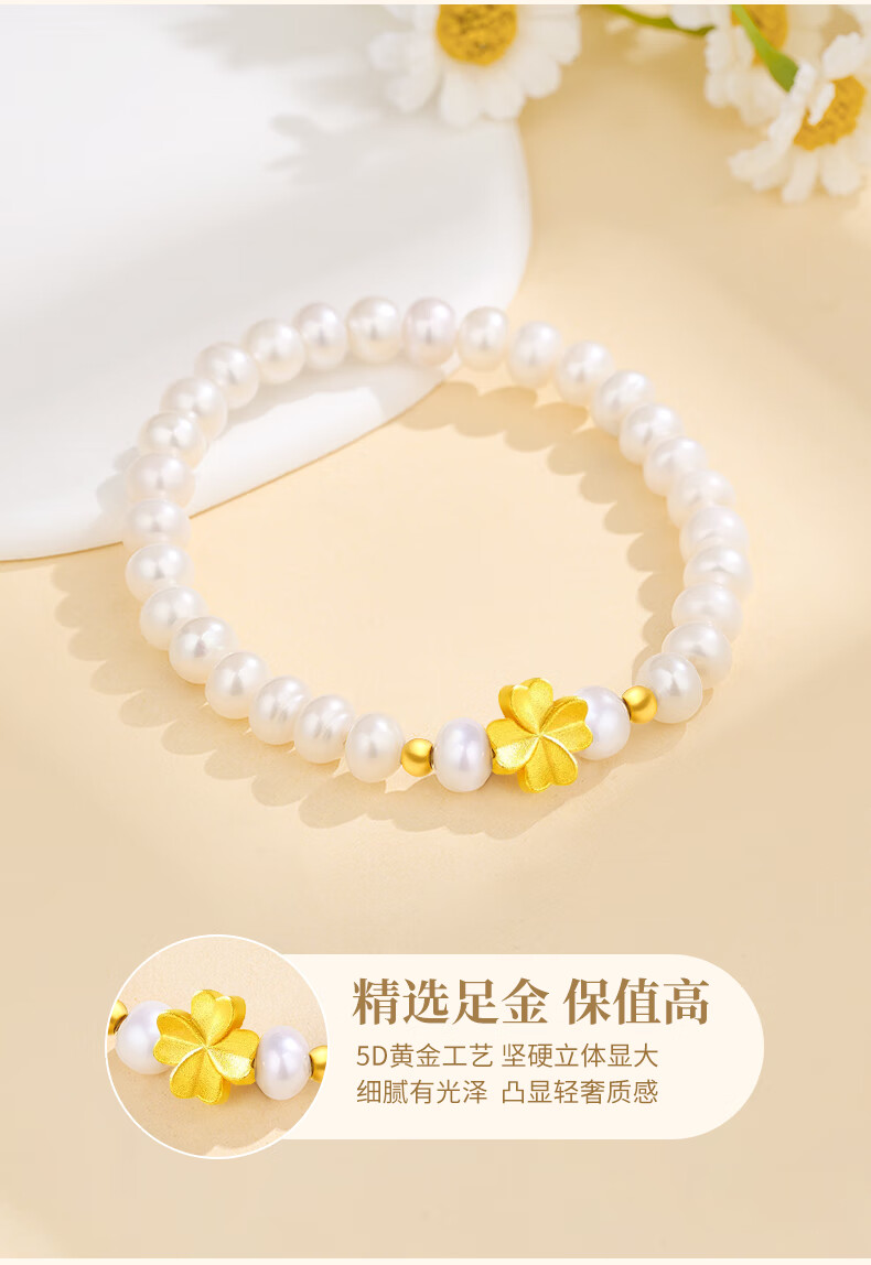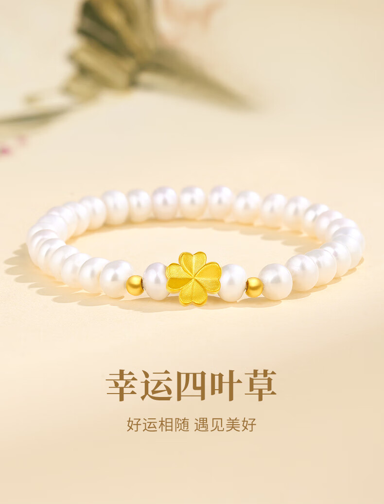 Chinese gold gold four-leaf clover pearl bracelet women's pure gold transfer bead bracelet birthday gift for girlfriend and wife to commemorate high-end pure gold four-leaf clover pearl bracelet + certificate gift box