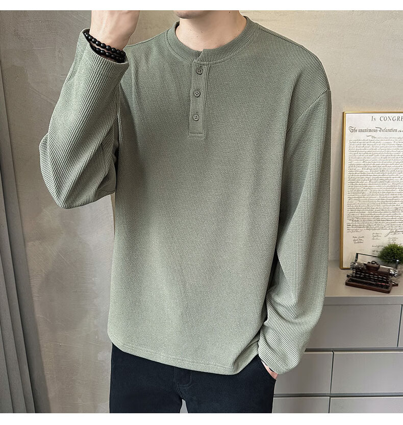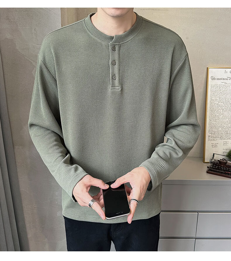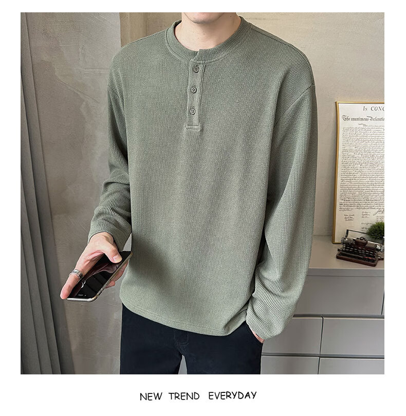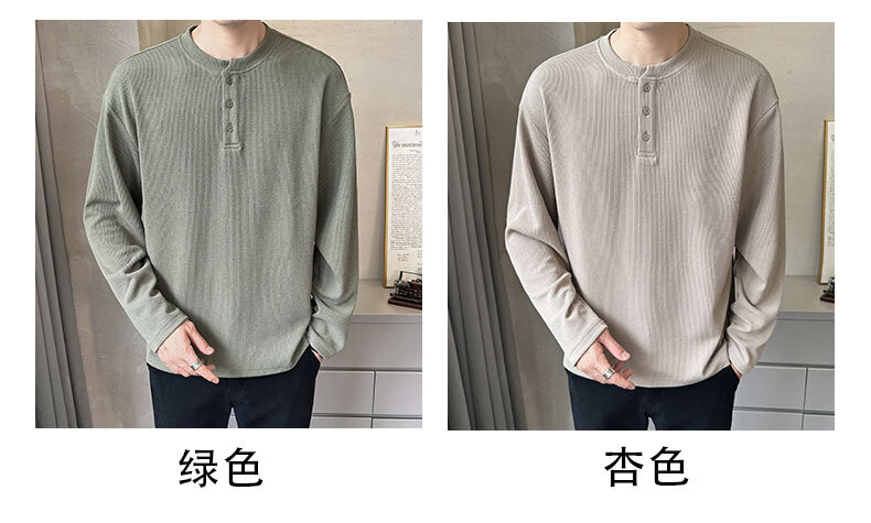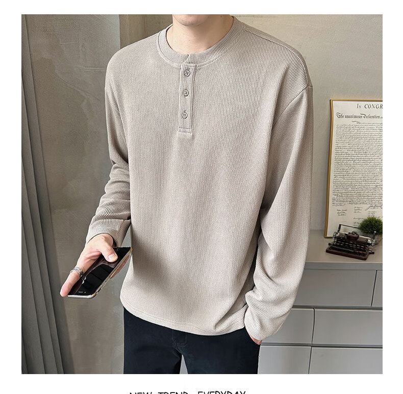ROMON Henley collar long-sleeved T-shirt for men 2025 new spring and autumn style autumn coat button solid color inner layering shirt sweatshirt for men Gray Apricot M 90-115Jin Jin is equal to 0.5 kg