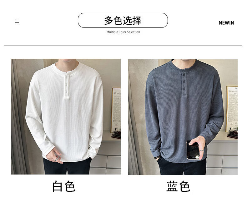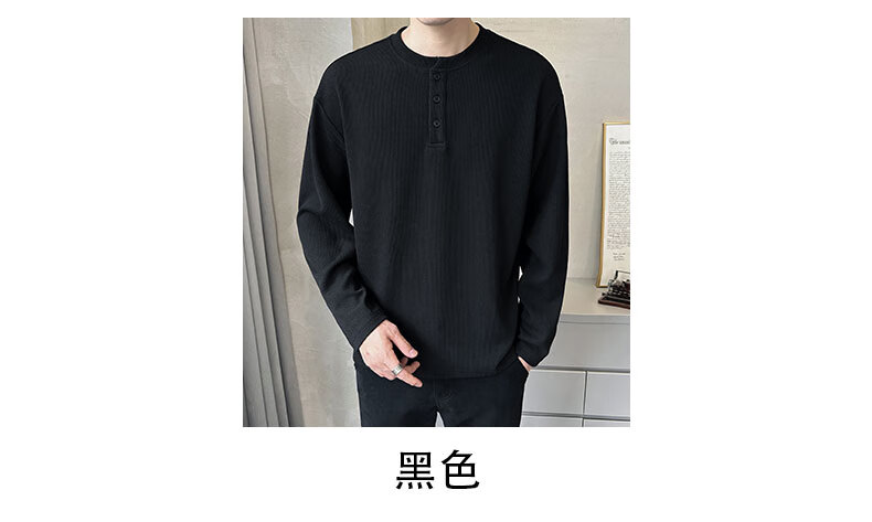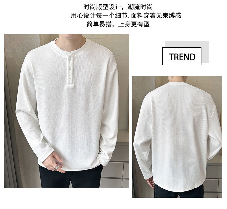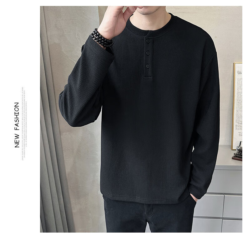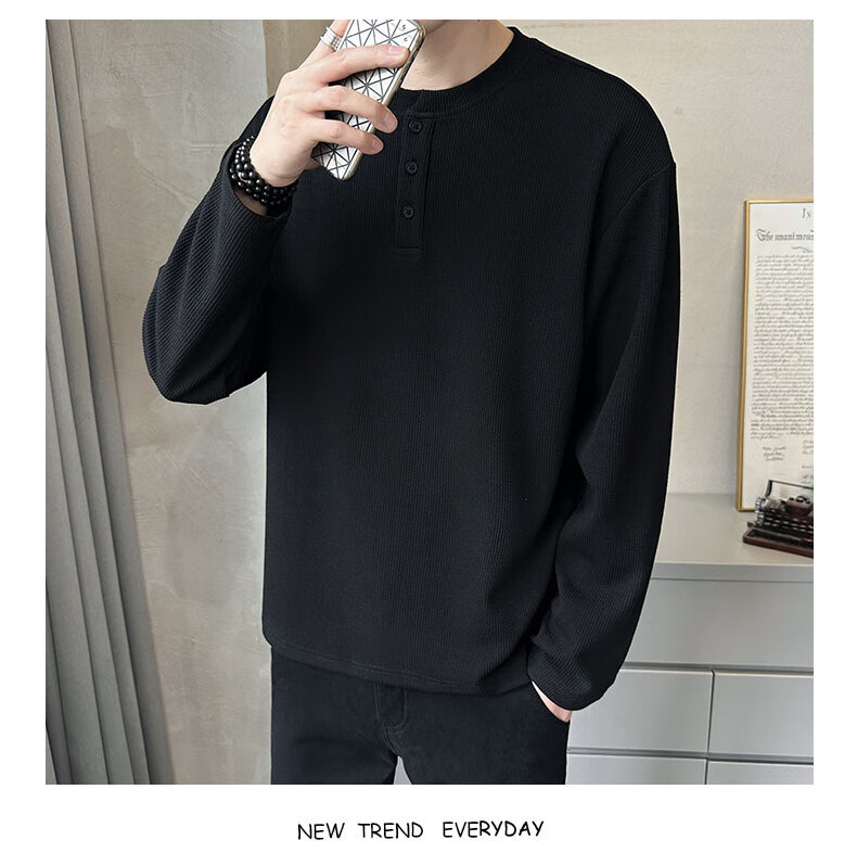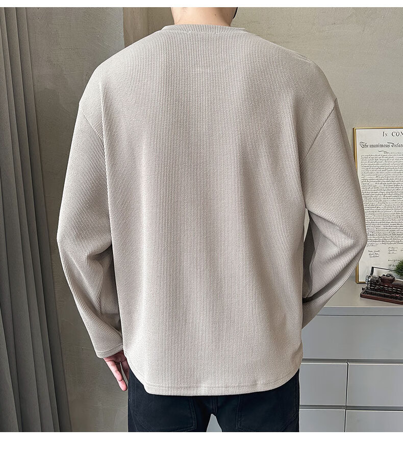ROMON Henley collar long-sleeved T-shirt for men 2025 new spring and autumn style autumn coat button solid color inner layering shirt sweatshirt for men Gray Apricot M 90-115Jin Jin is equal to 0.5 kg