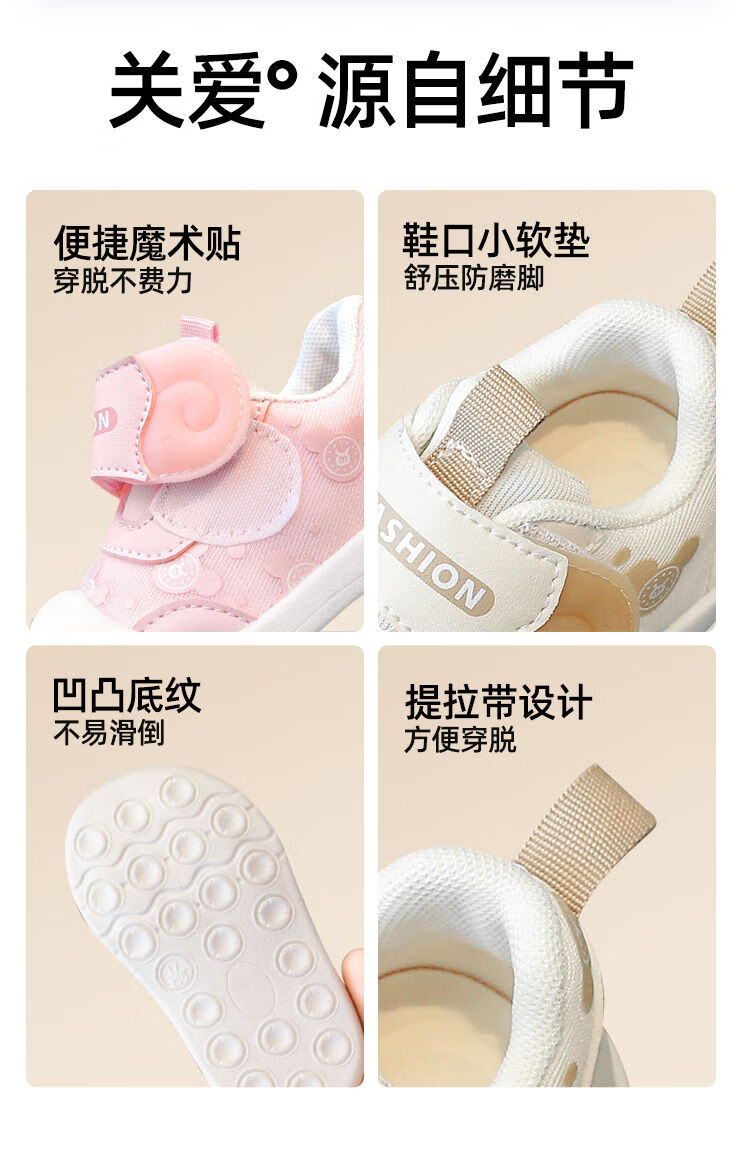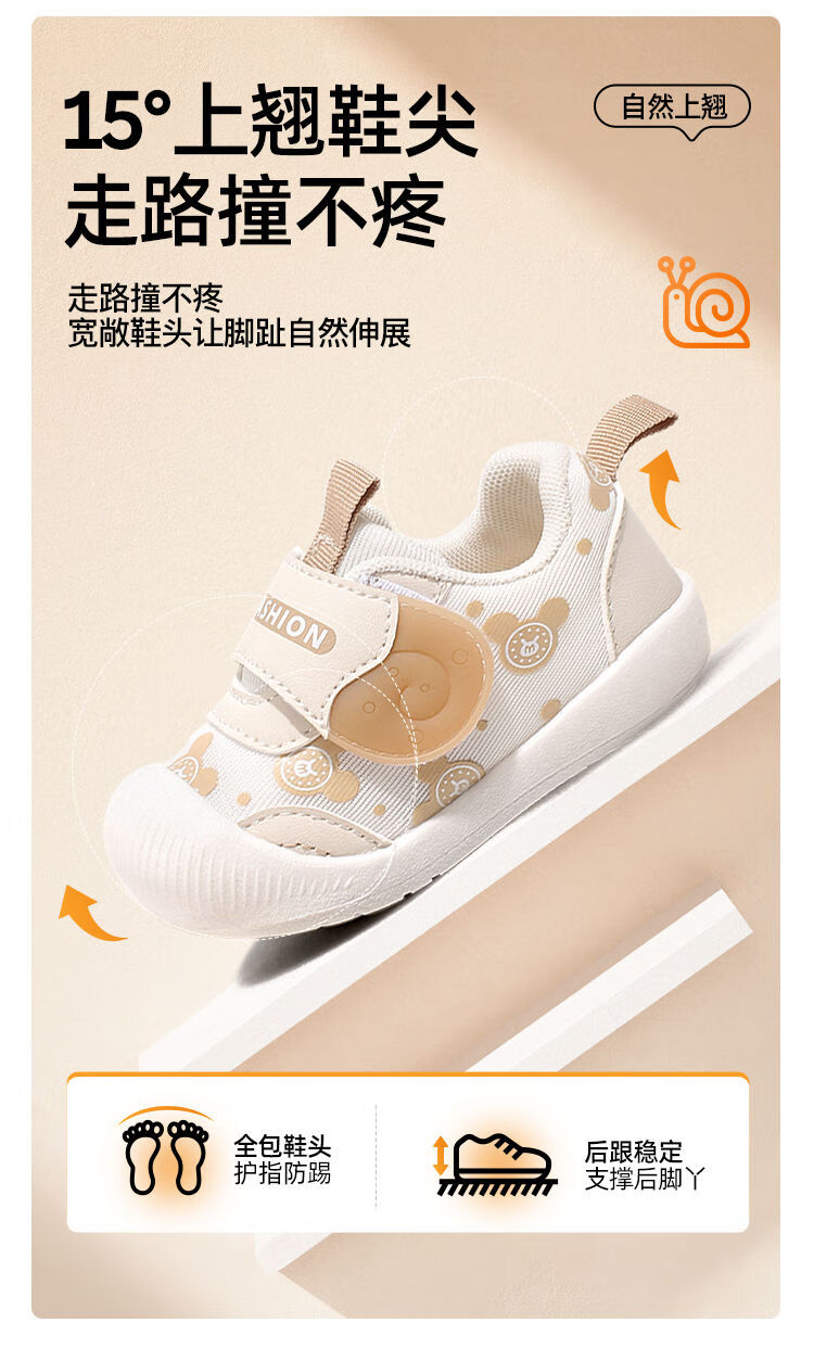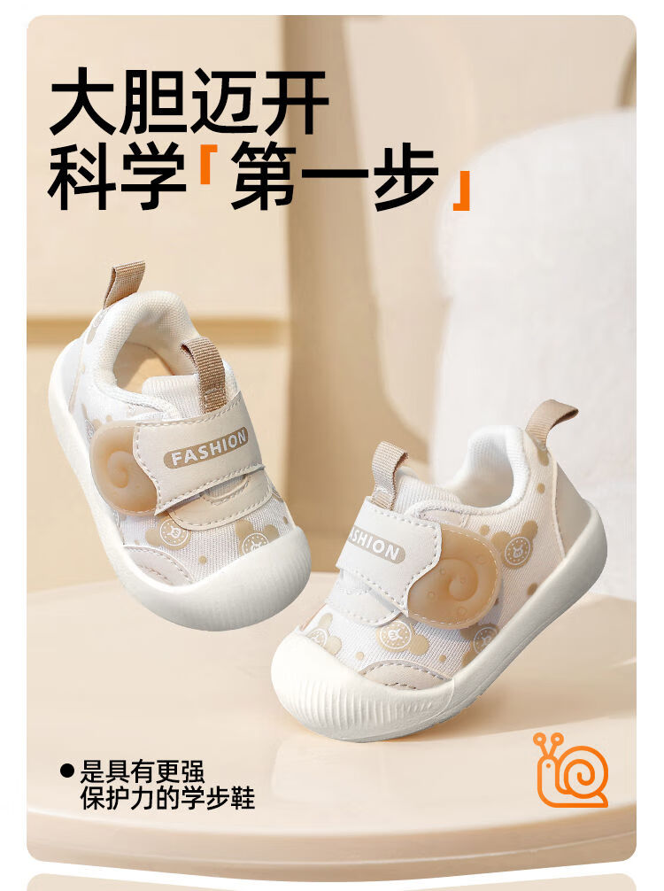 JOYNCLEON baby toddler shoes for girls spring and autumn new soft-soled non-slip boys' shoes infants and children breathable shoes for one year old beige plus velvet model size 17 (inner length 12.5cm, foot length 12cm)