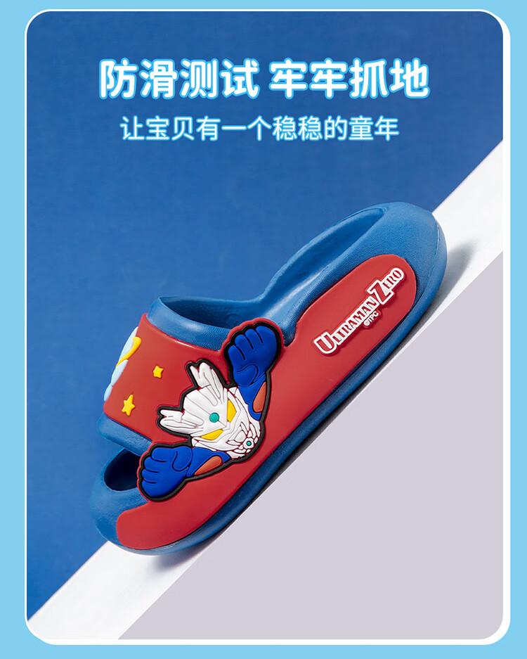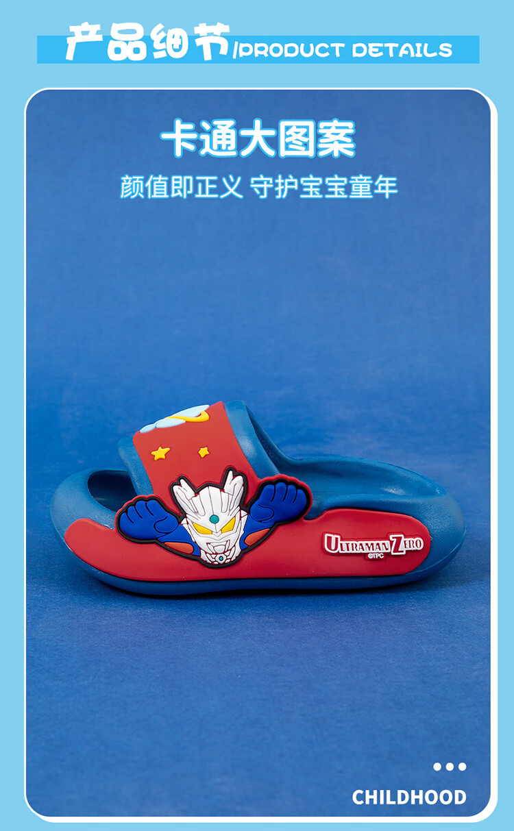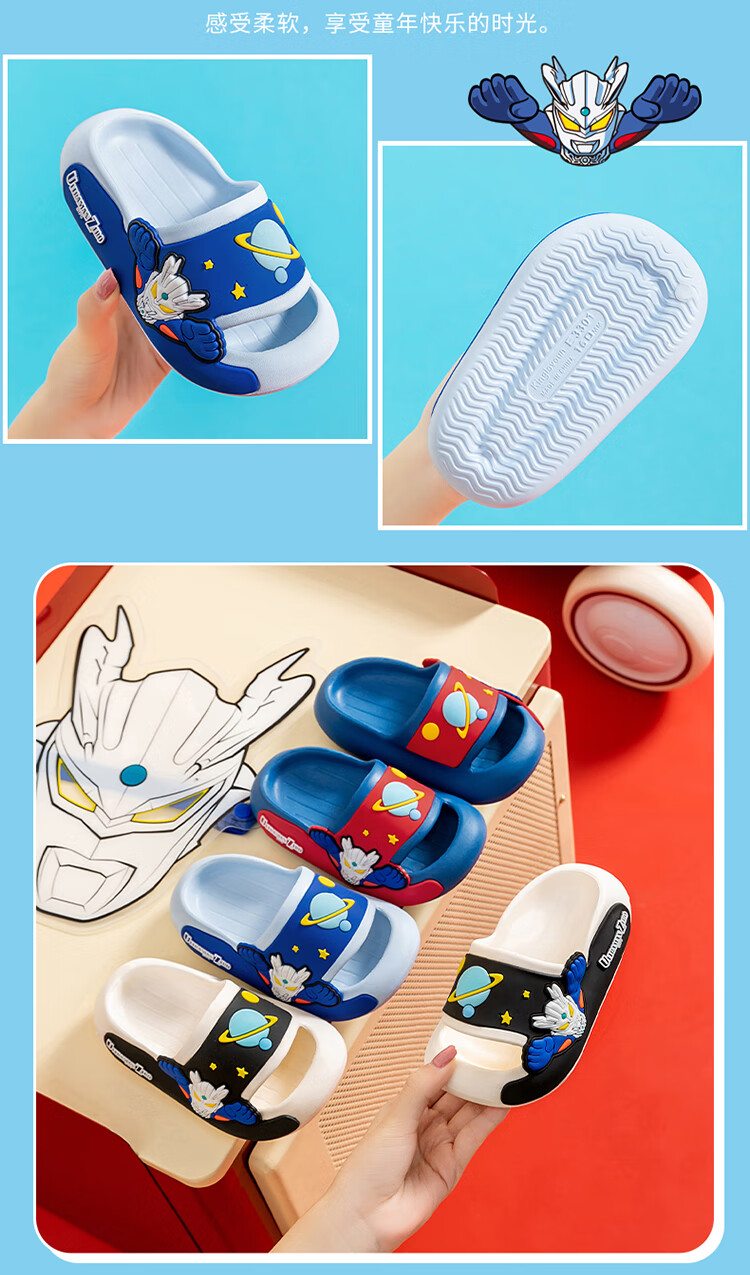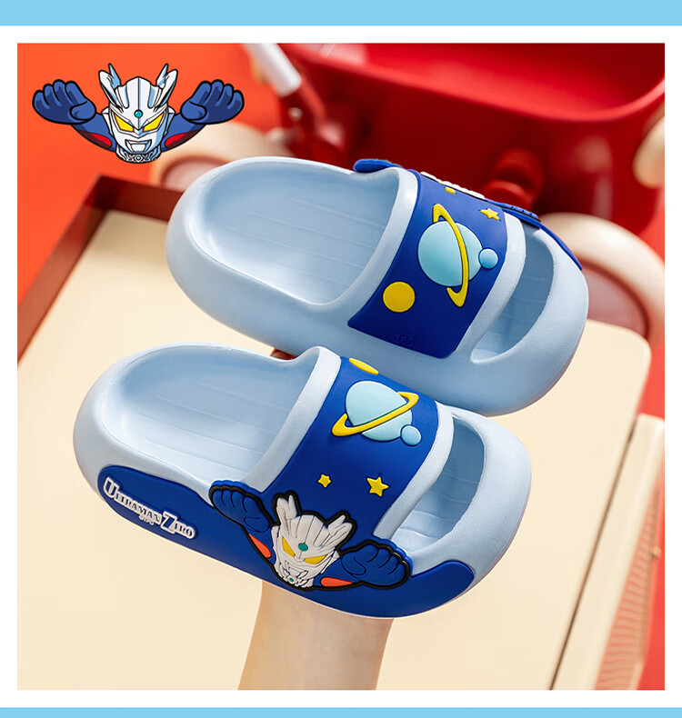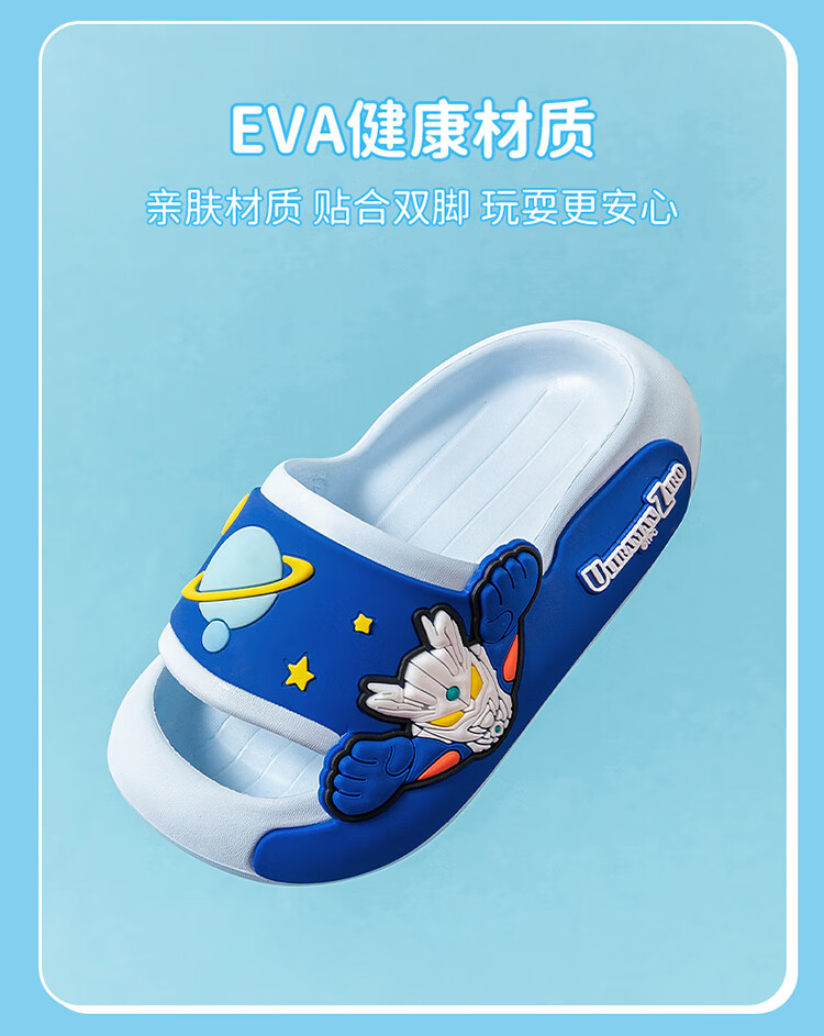 Children's slippers, genuine authorized Ultraman boys and girls, indoor non-slip soft soles with poop-feeling Sanrio sandals, sky blue Zero 19, about 30/31, foot length 18cm