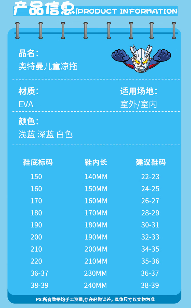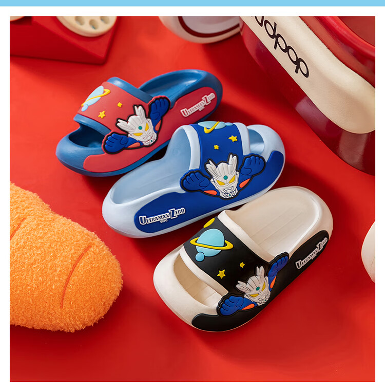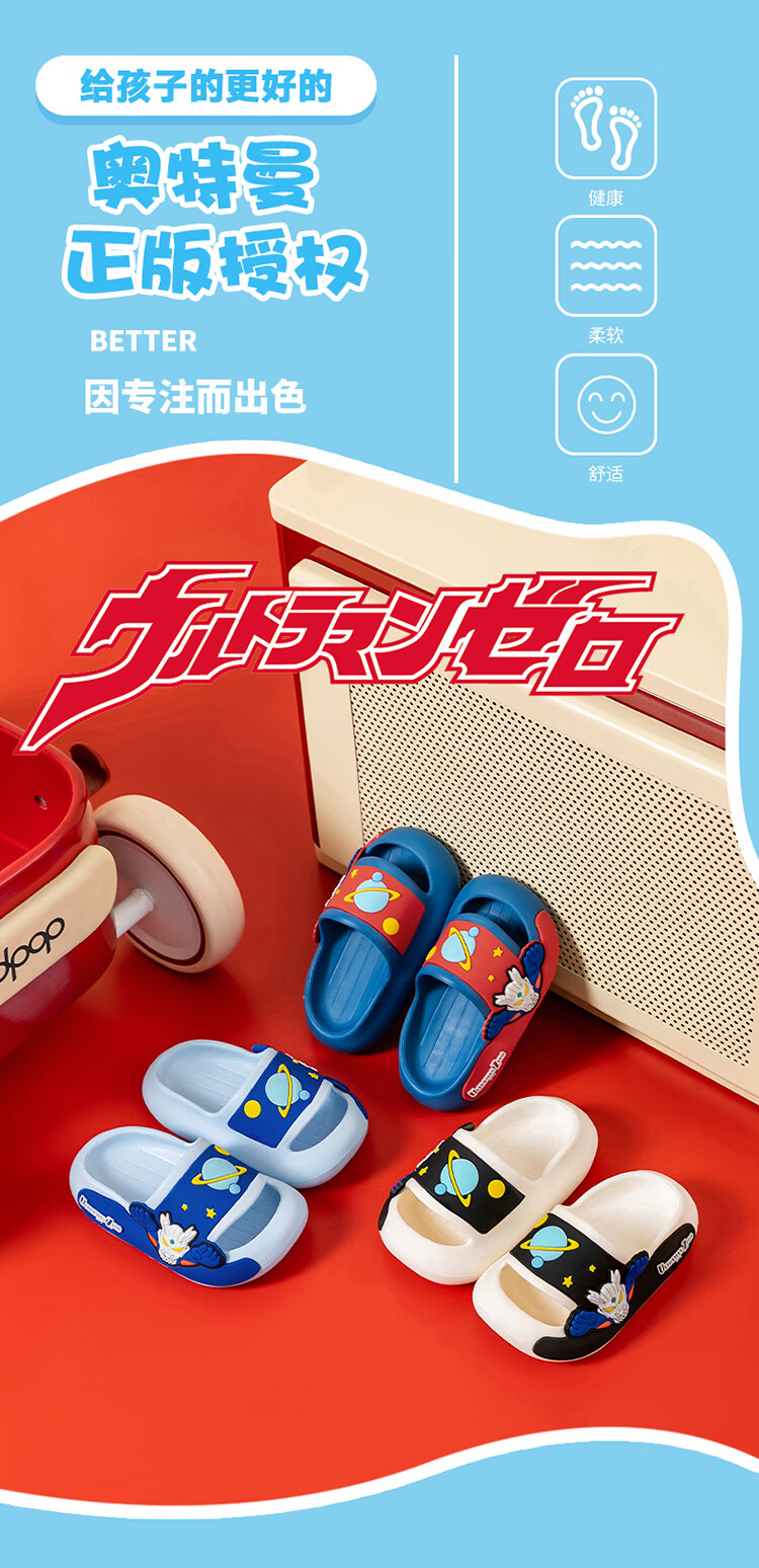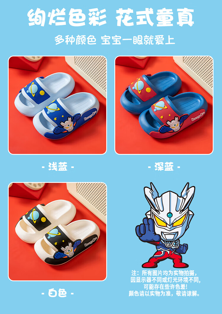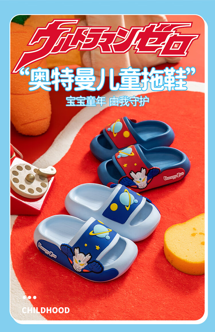 Children's slippers, genuine authorized Ultraman boys and girls, indoor non-slip soft soles with poop-feeling Sanrio sandals, sky blue Zero 19, about 30/31, foot length 18cm