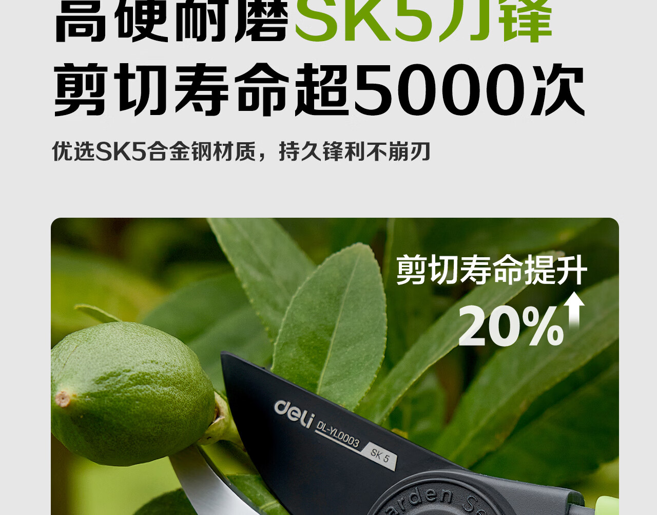 Deli fruit tree scissors, gardening scissors, labor-saving tree shears, garden potted flowers and trees, branch scissors, thick branch shears, fruit picking scissors, basic garden non-slip pruning shears
