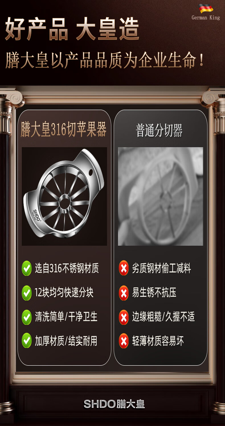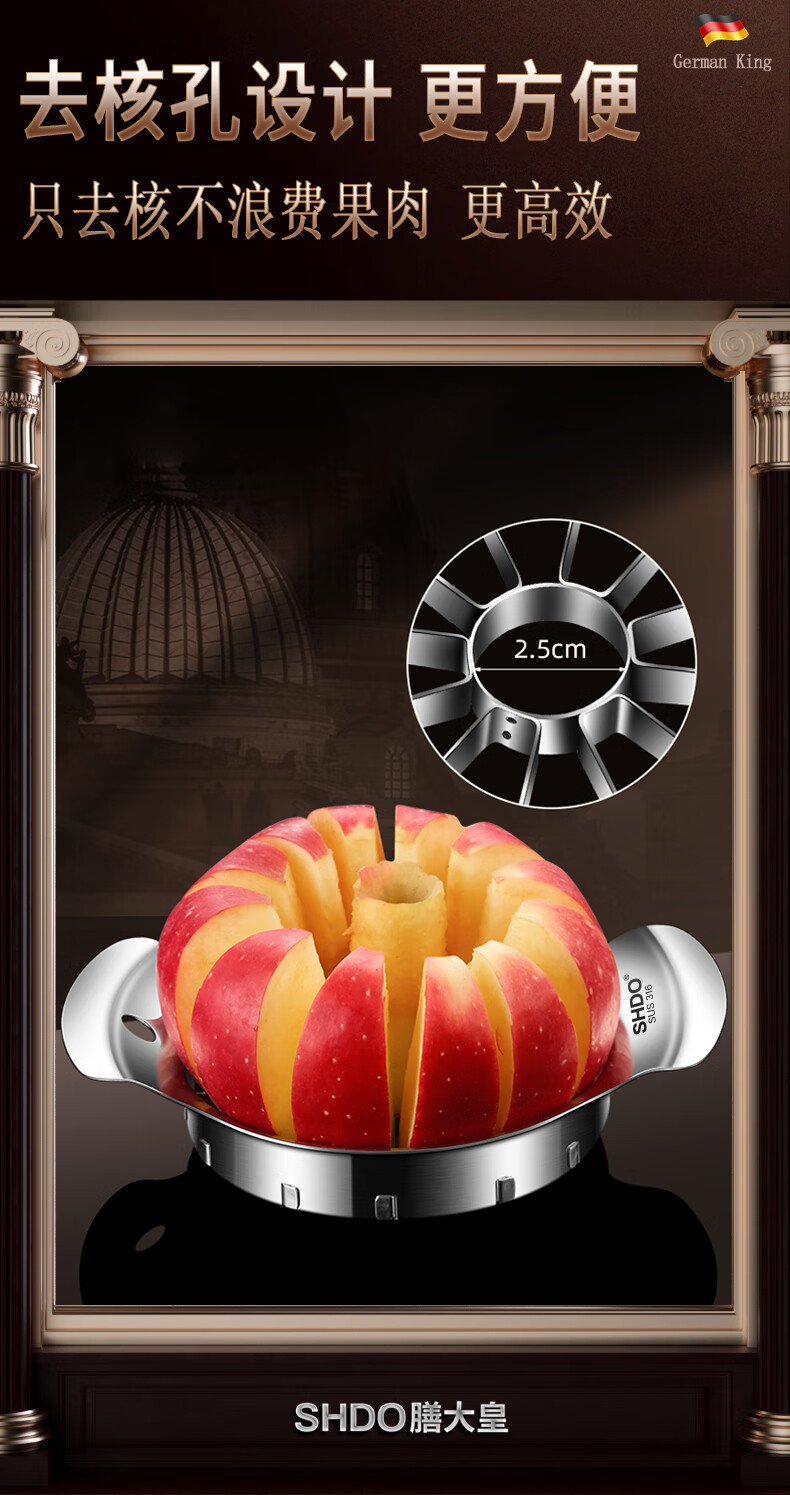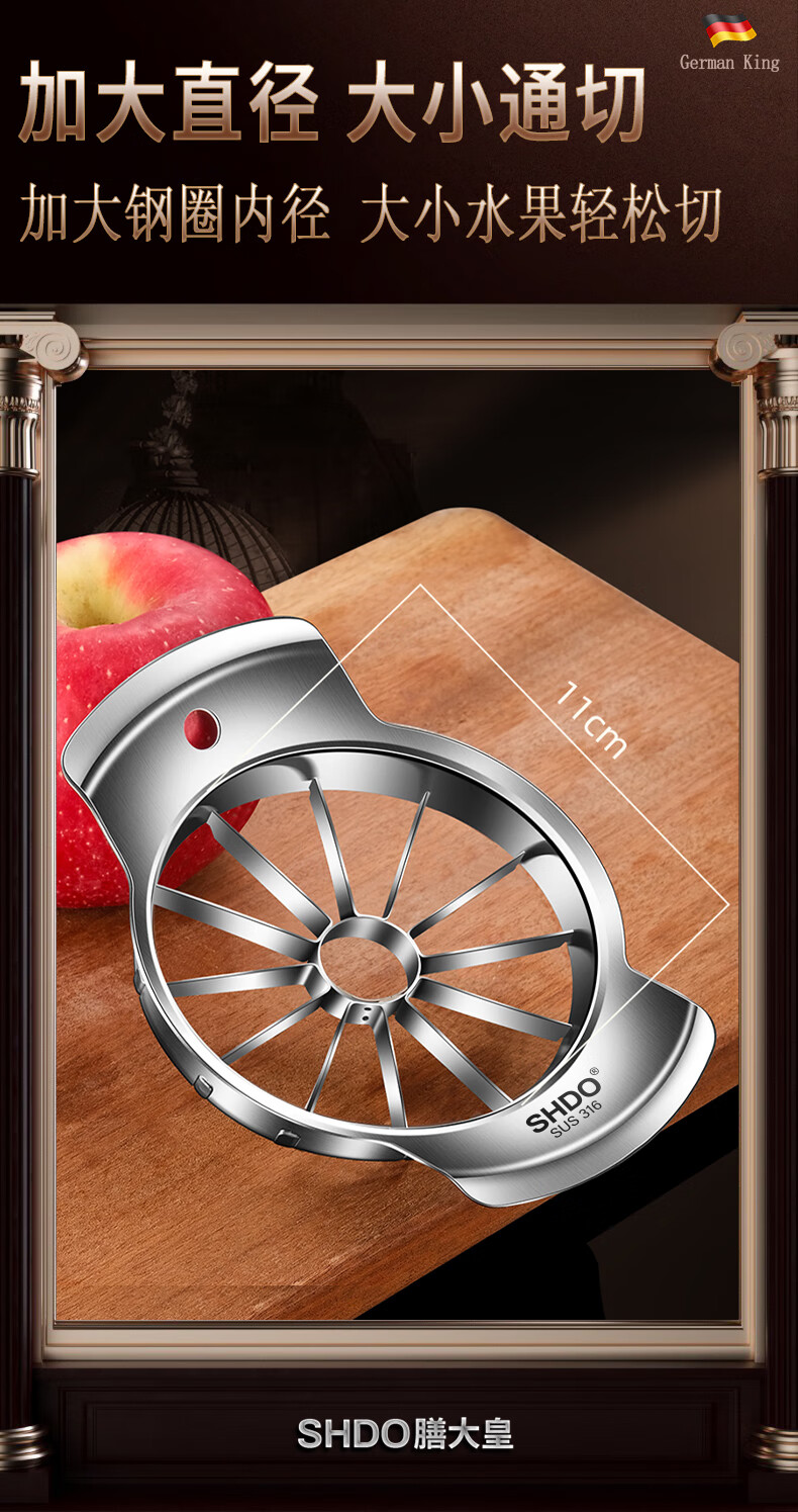 Shandahuang (SHDO) apple cutting tool 316 stainless steel apple corer splitter large apple slicer fruit cutting tool Cologne 316 large inner diameter 11cm/cut into 12 pieces