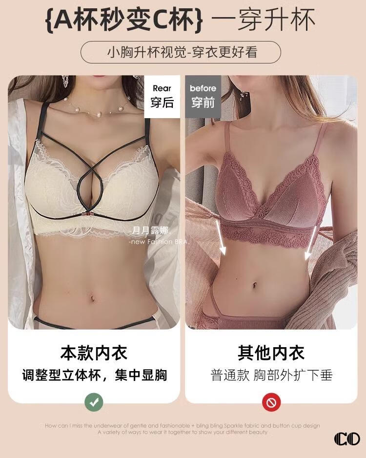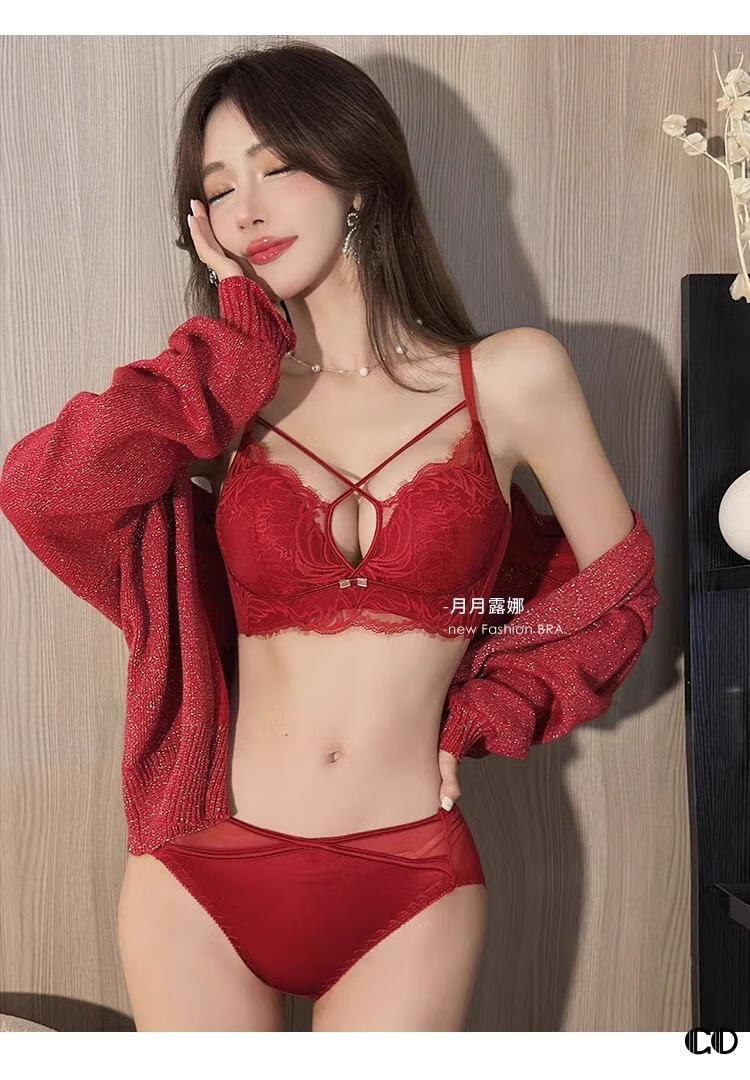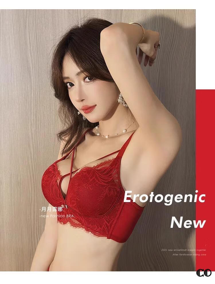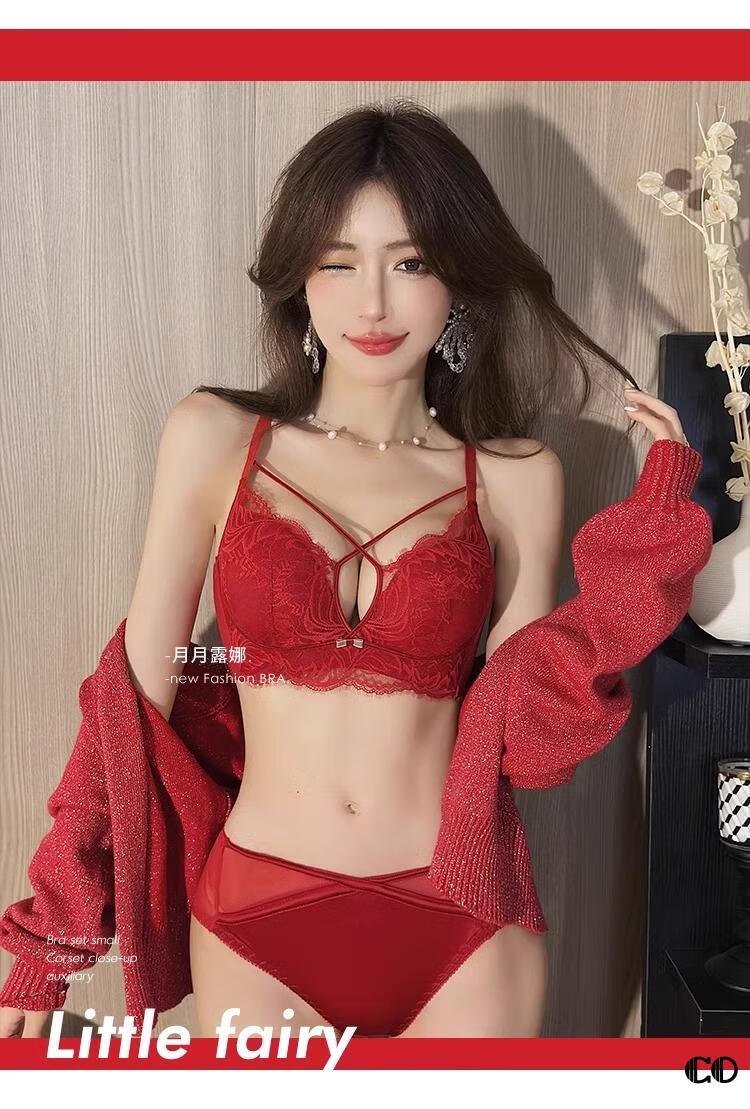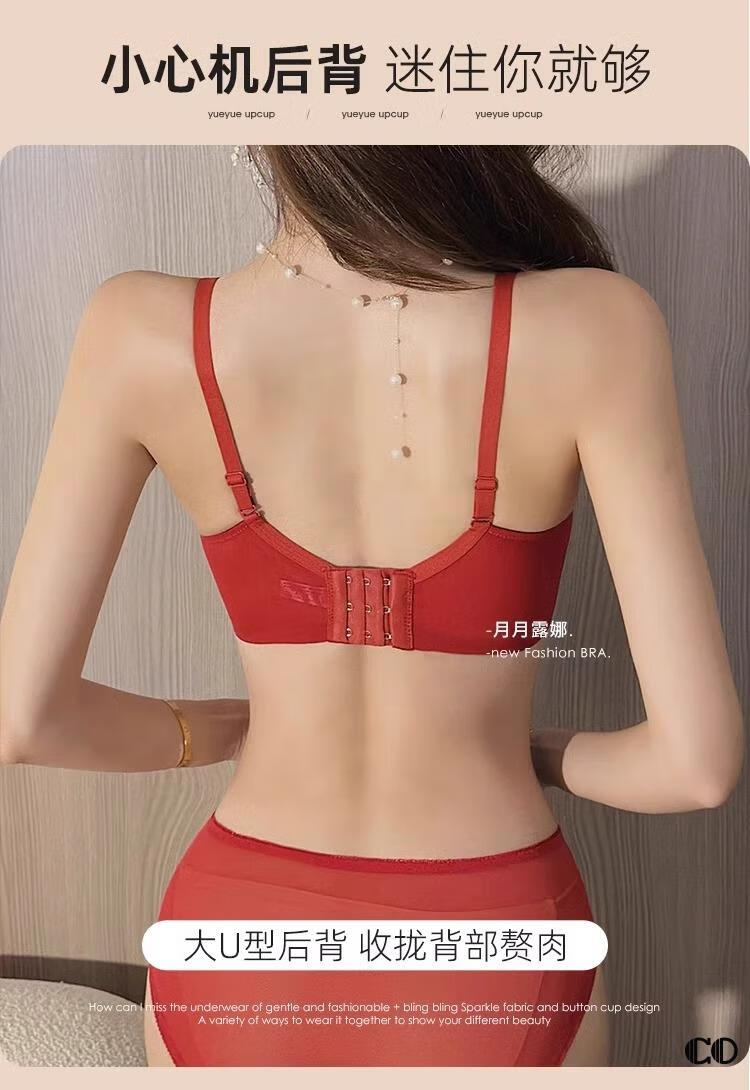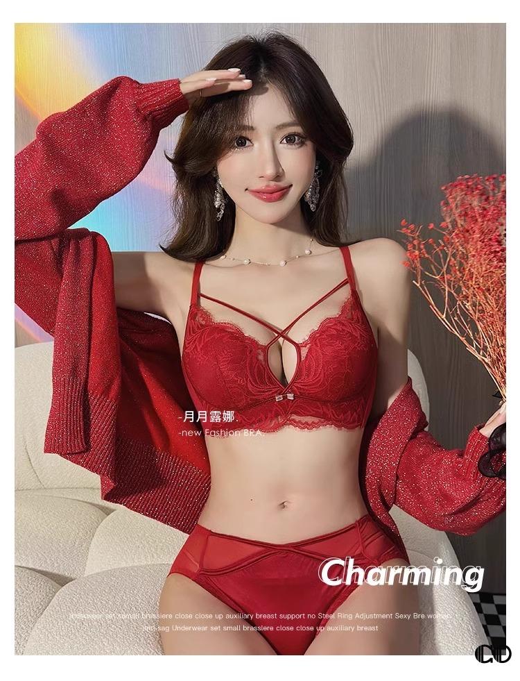 Modal High Quality Underwear Women's Small Breast Gathering Anti-sagging Sexy Lace Bra Red Zodiac Year White Suit Main Image 75B