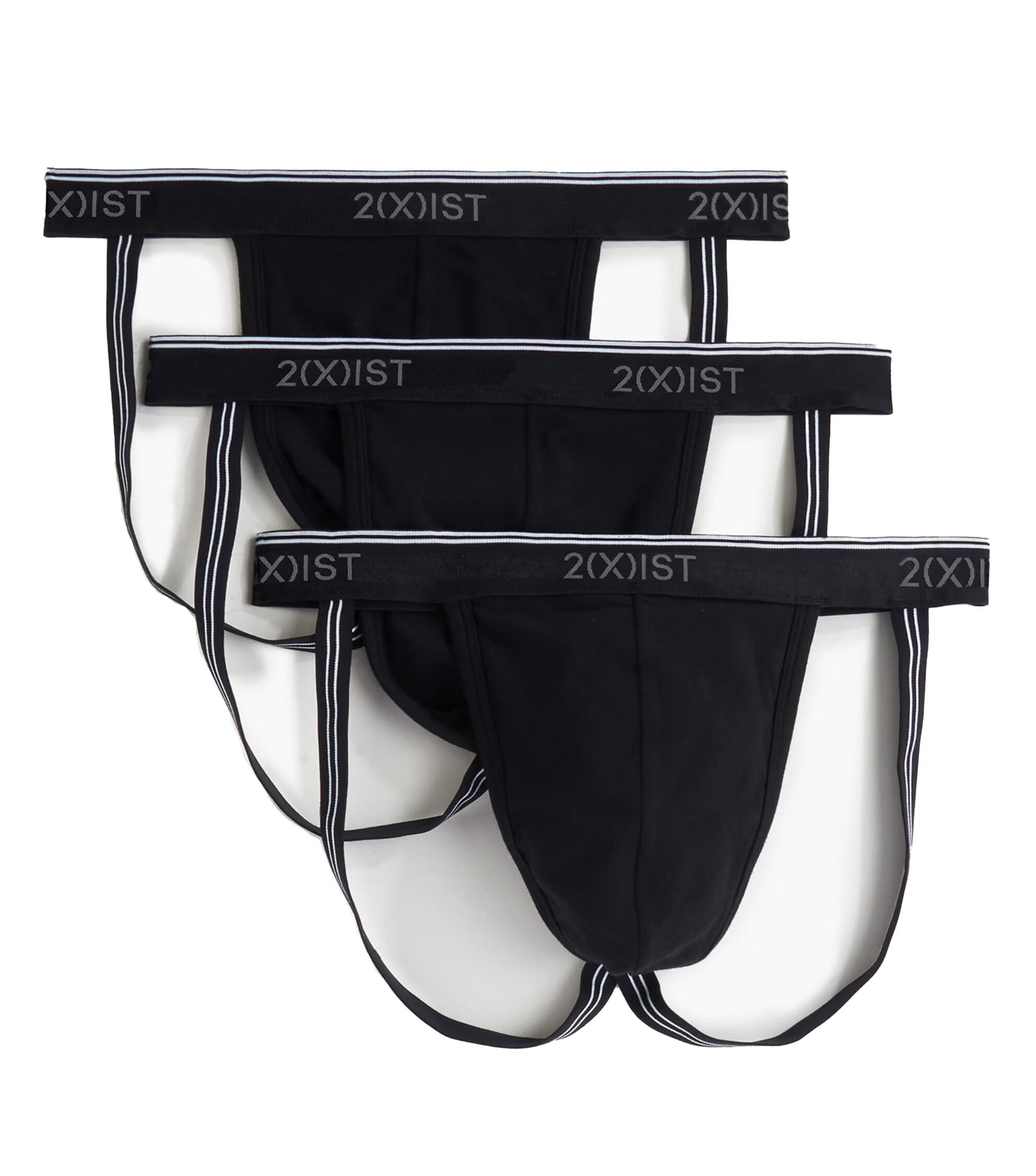 2(X)IST Men's Cotton Stretch Thongs 3-Pack Breathable and Comfortable Adult Underwear Y-Shaped Back Design Black/Black/Black X Large Size