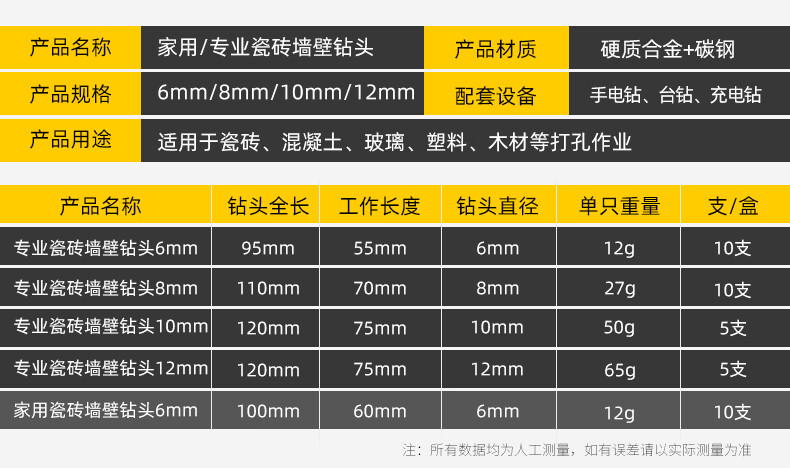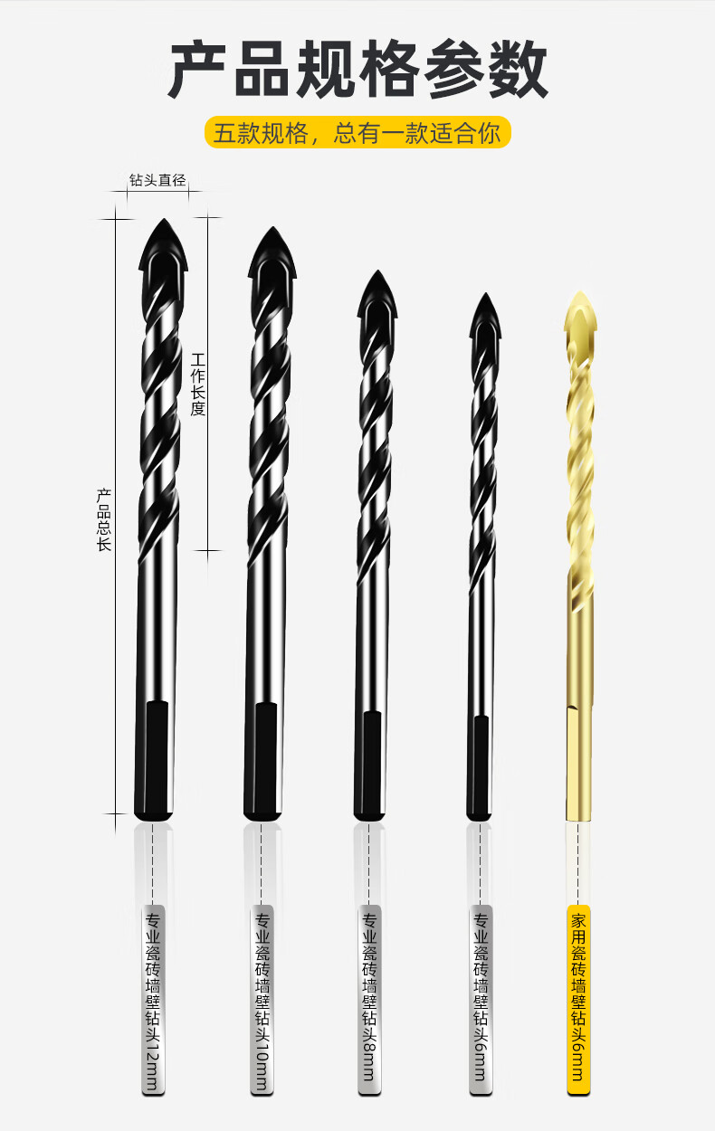 Ceramic tile special drill bit super hard concrete drilling alloy triangle drill 6mm cement drill metal special professional 6mm ceramic tile drill bit 1