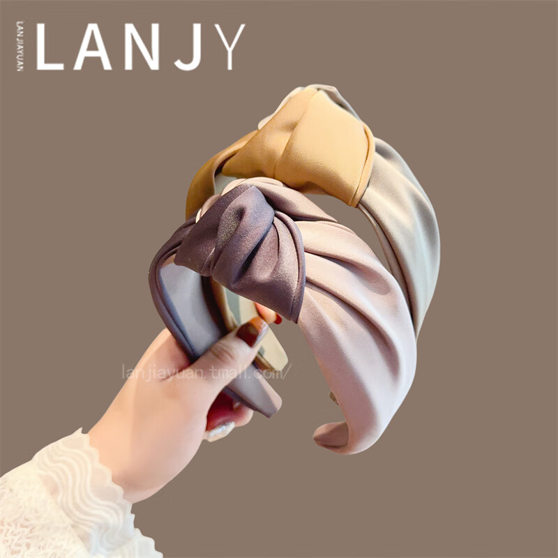 Biyun retro simple contrast color spliced headband, high-end knotted temperament headband, fashionable and versatile for going out with hairpins for women. Combination pack - purple knotted headband + yellow knotted hair