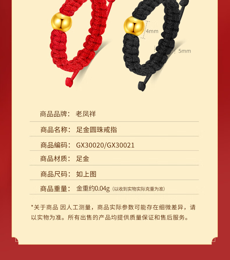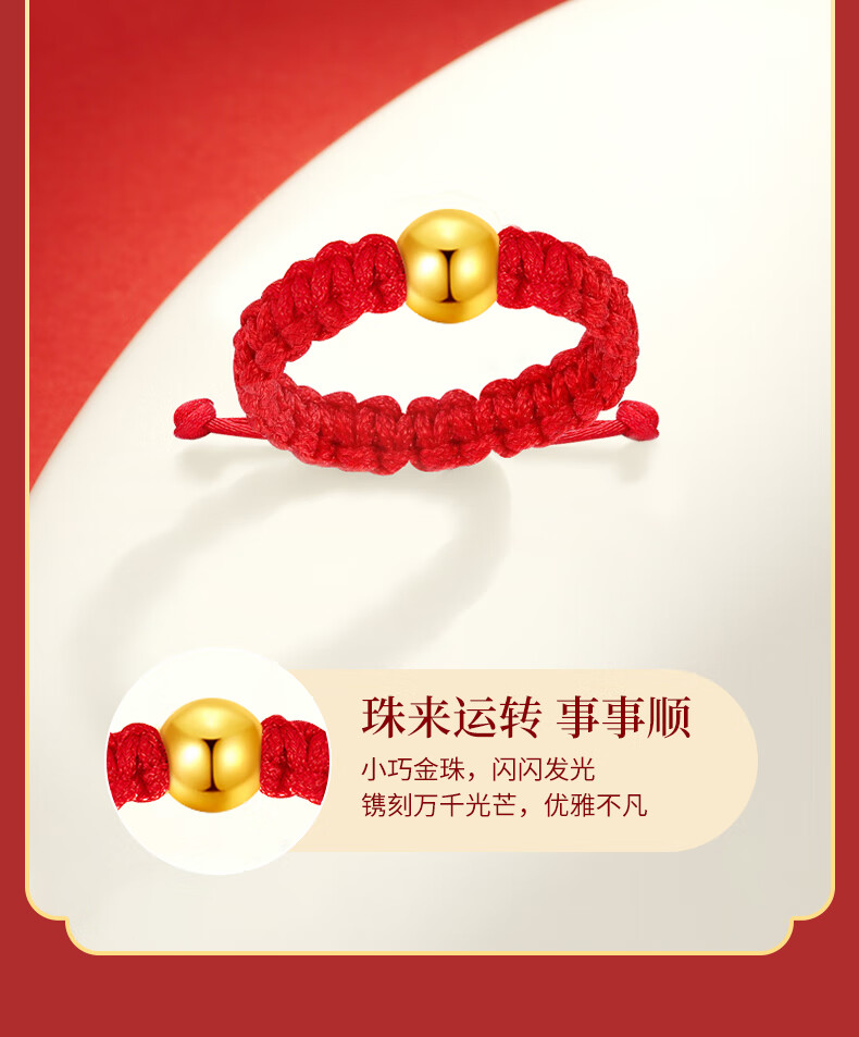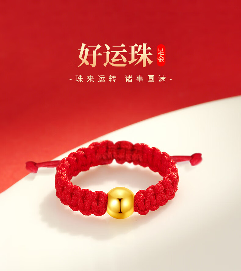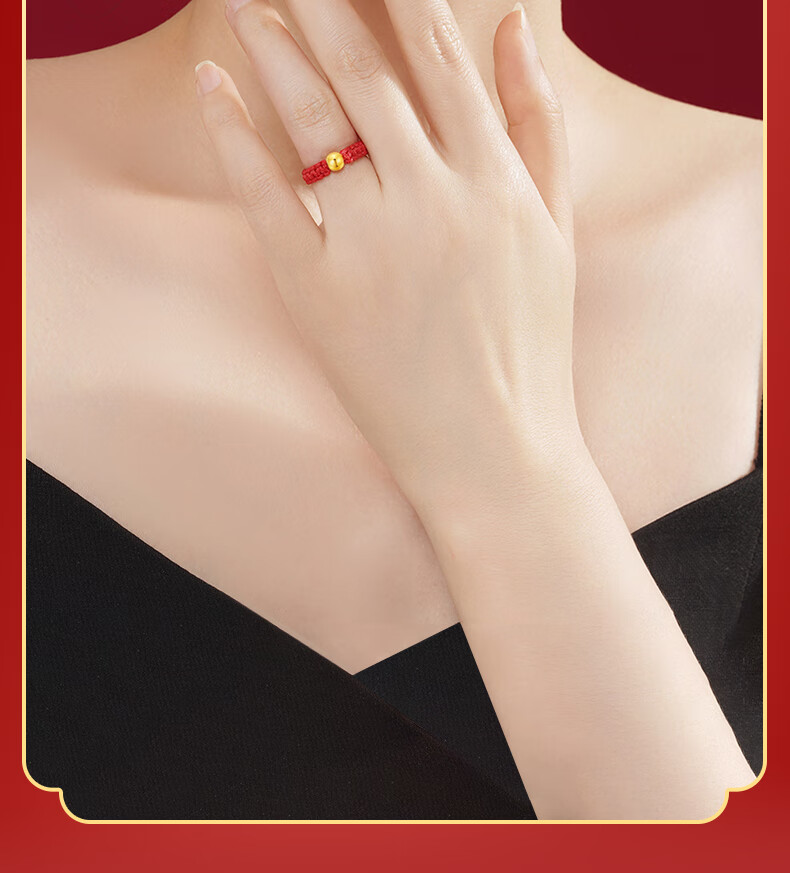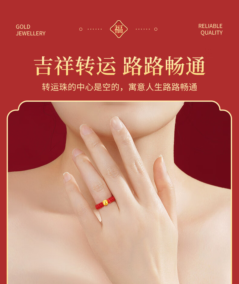 Lao Fengxiang transfer bead gold ring women's pure gold living ring wedding anniversary gift for girlfriend and wife's birthday pure gold round bead bracelet ring - red