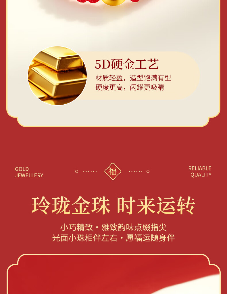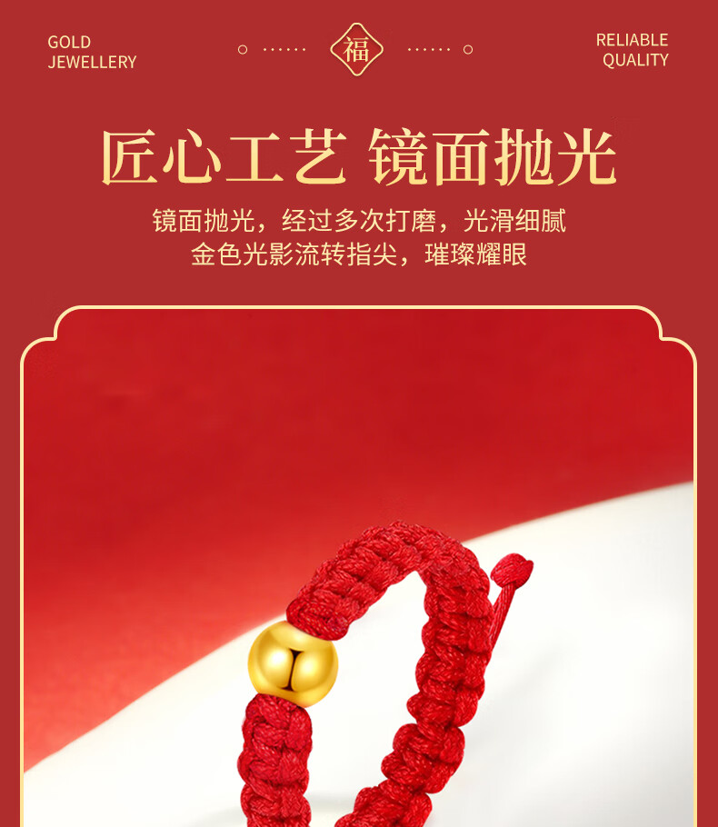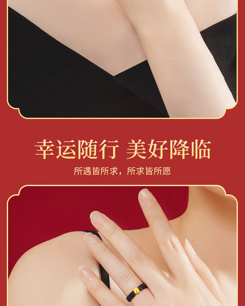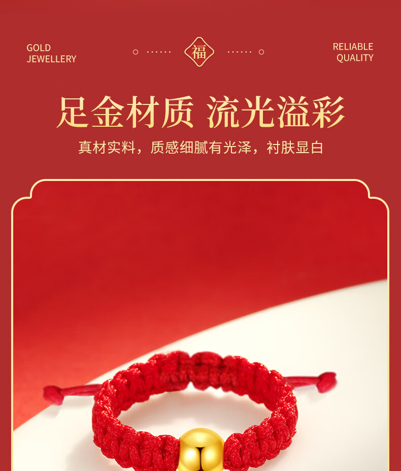 Lao Fengxiang transfer bead gold ring women's pure gold living ring wedding anniversary gift for girlfriend and wife's birthday pure gold round bead bracelet ring - red