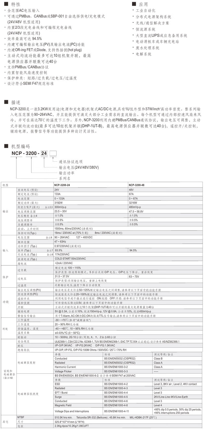 MEAN WELL 2-in-1 switching power supply and charger NCP-3200-48 (1 year warranty)