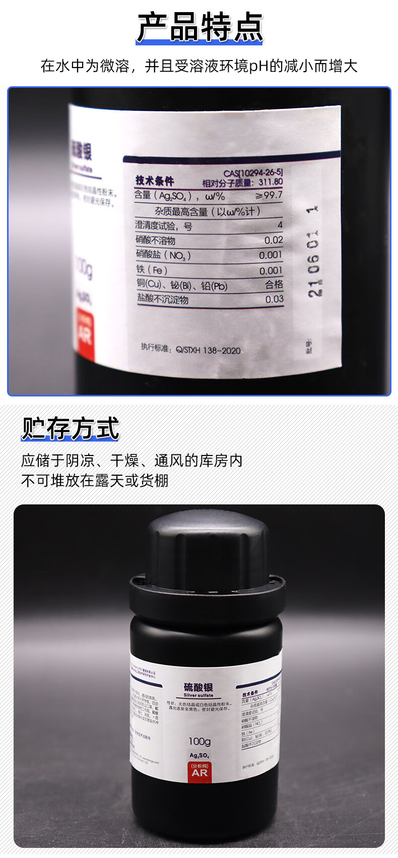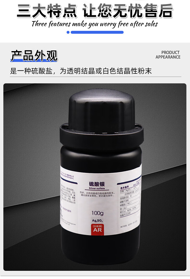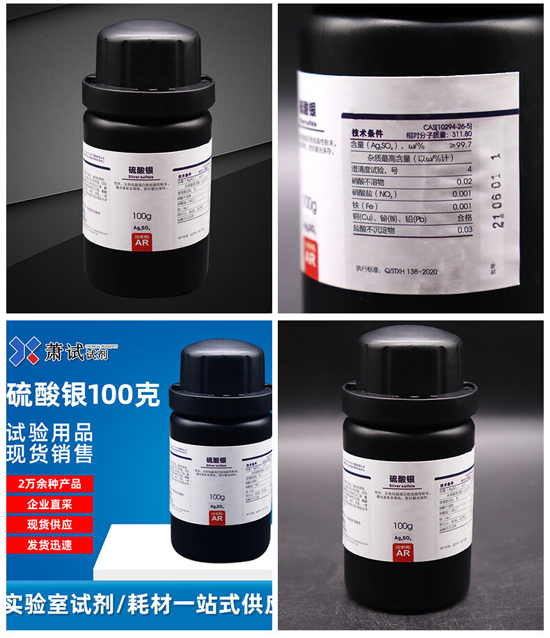 Sinopharm Xilong Science COD Ammonia Nitrogen Monitoring and Detection Silver Sulfate Analysis Pure AR100gCAS 10294-26-5 Xilong Science 100g/bottle