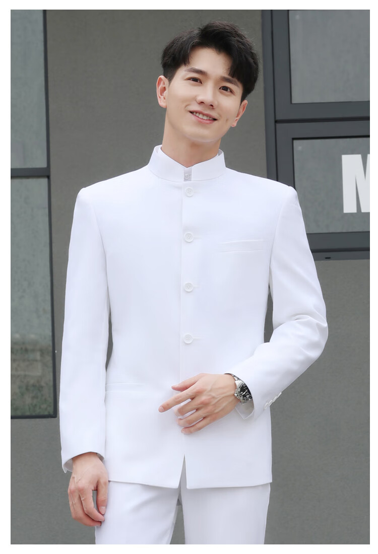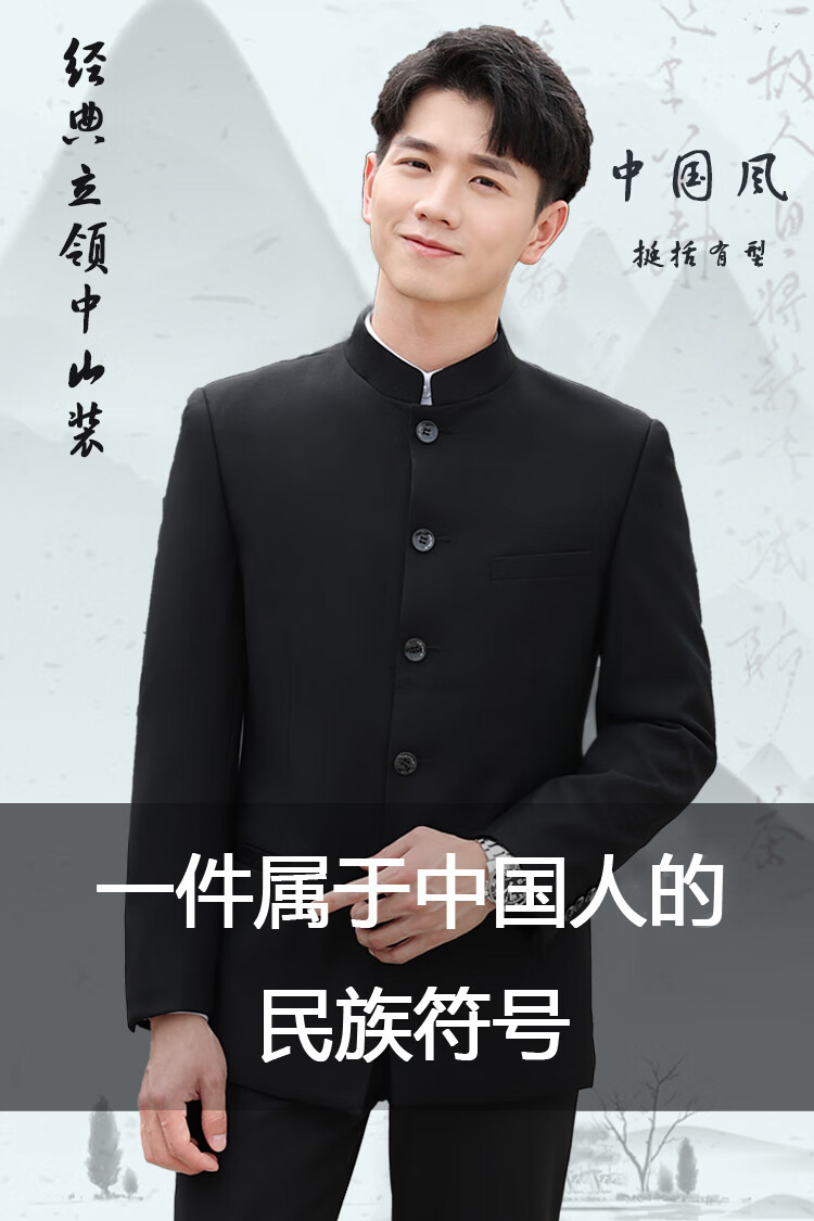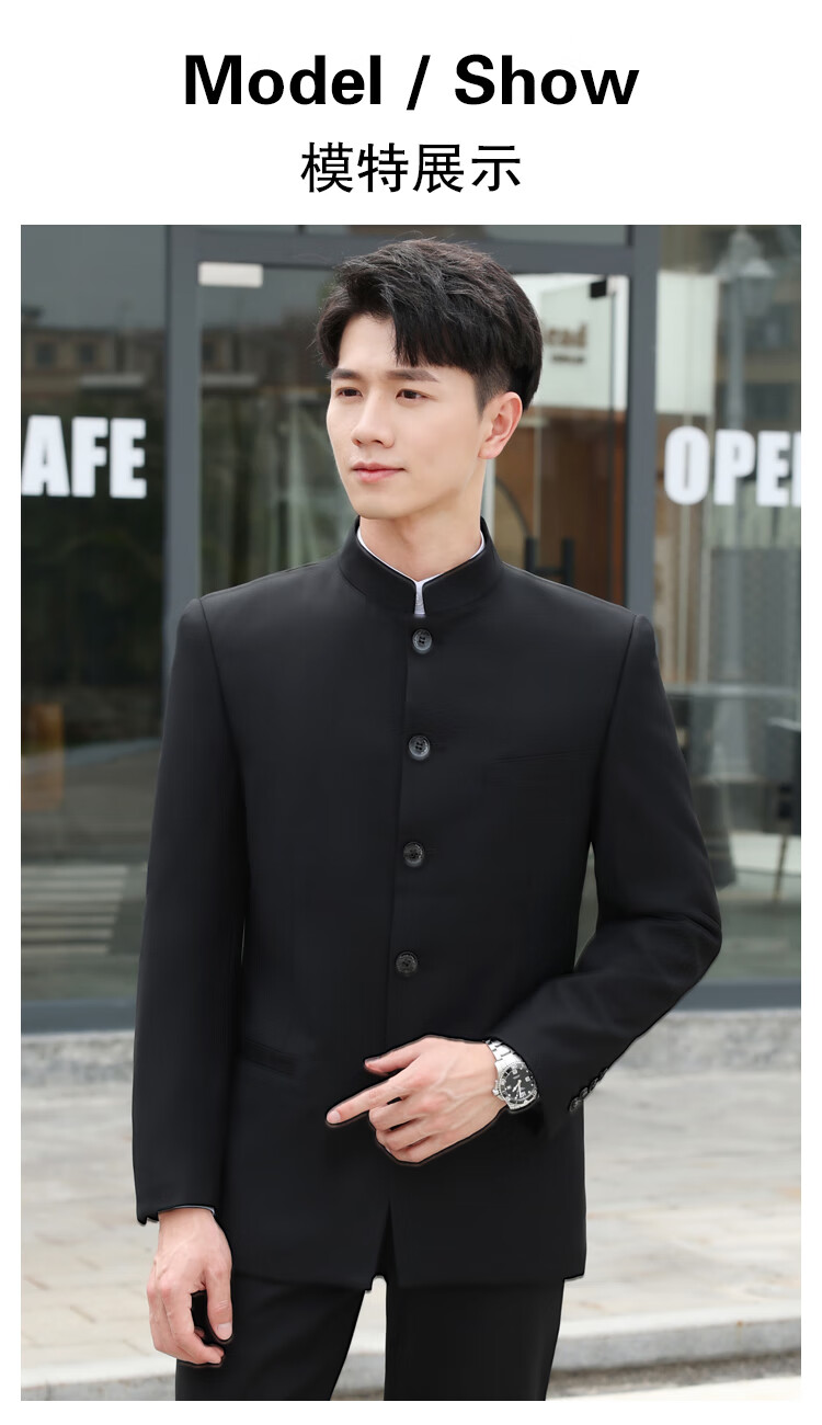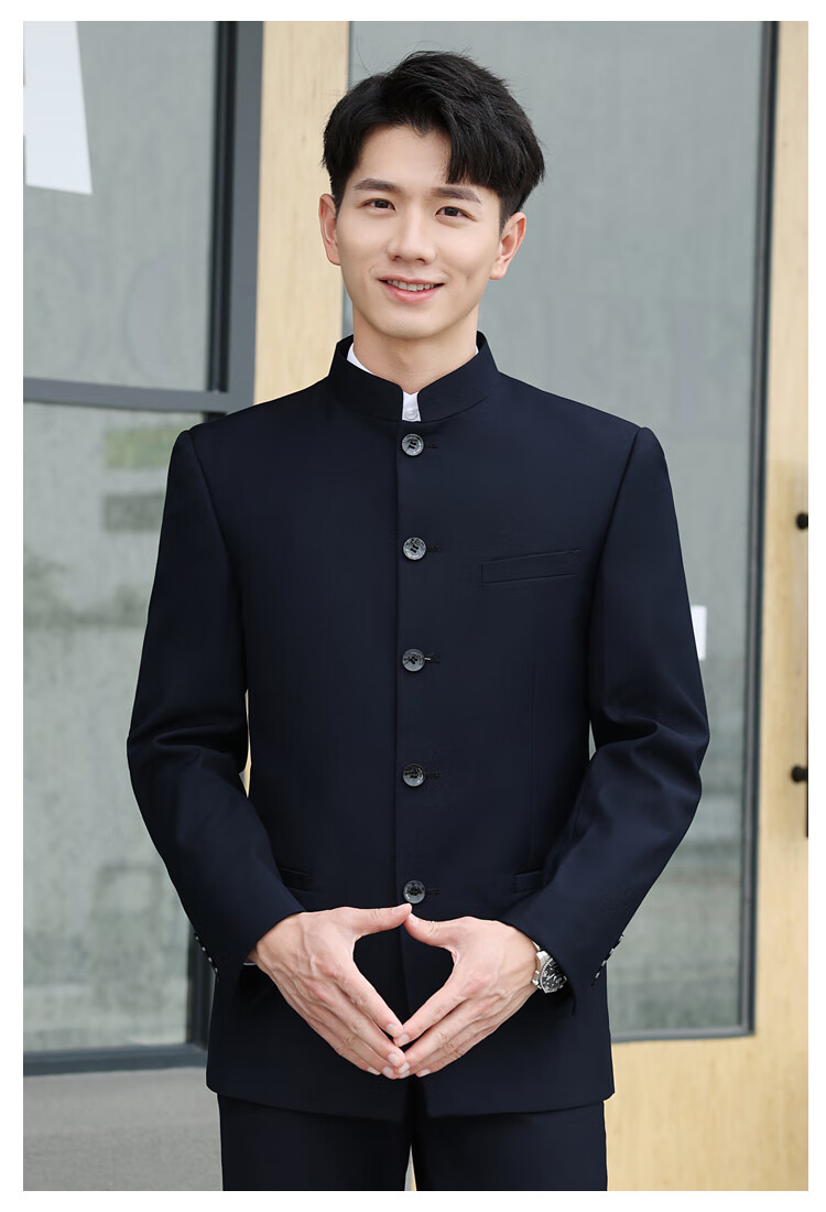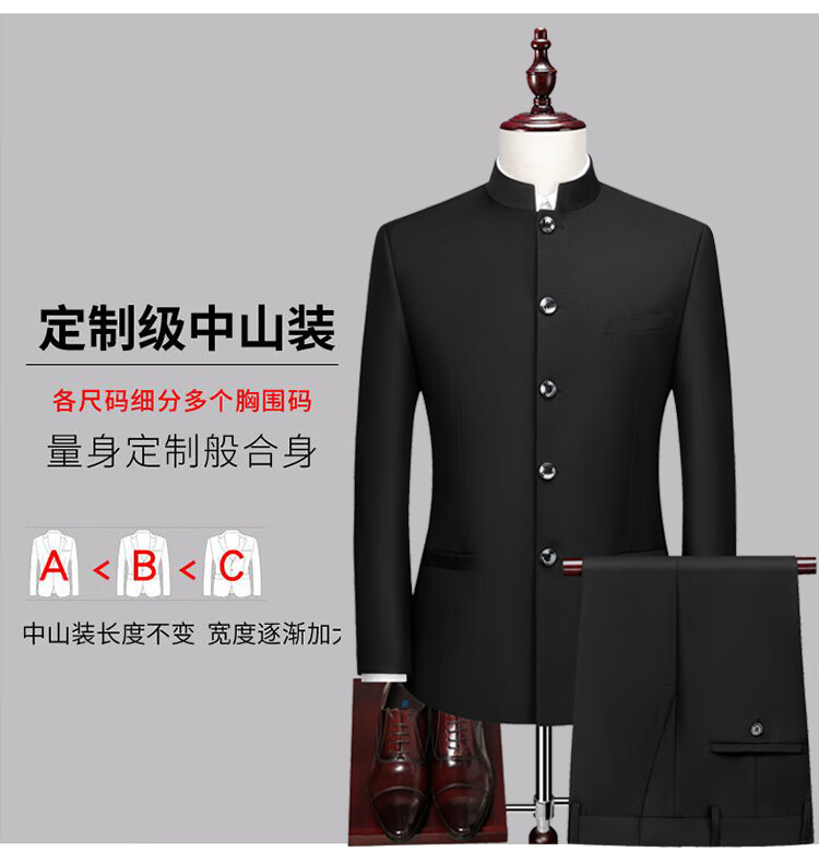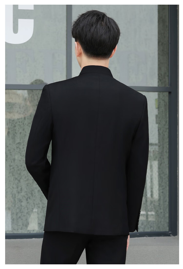 ROMON Chinese tunic suit suit men's youth slim fit Chinese stand collar suit Chinese wedding dress Chinese style Tang suit Chinese stand collar black top + pants L 175 weight 125-135 Jin Jin equals 0.5 kg