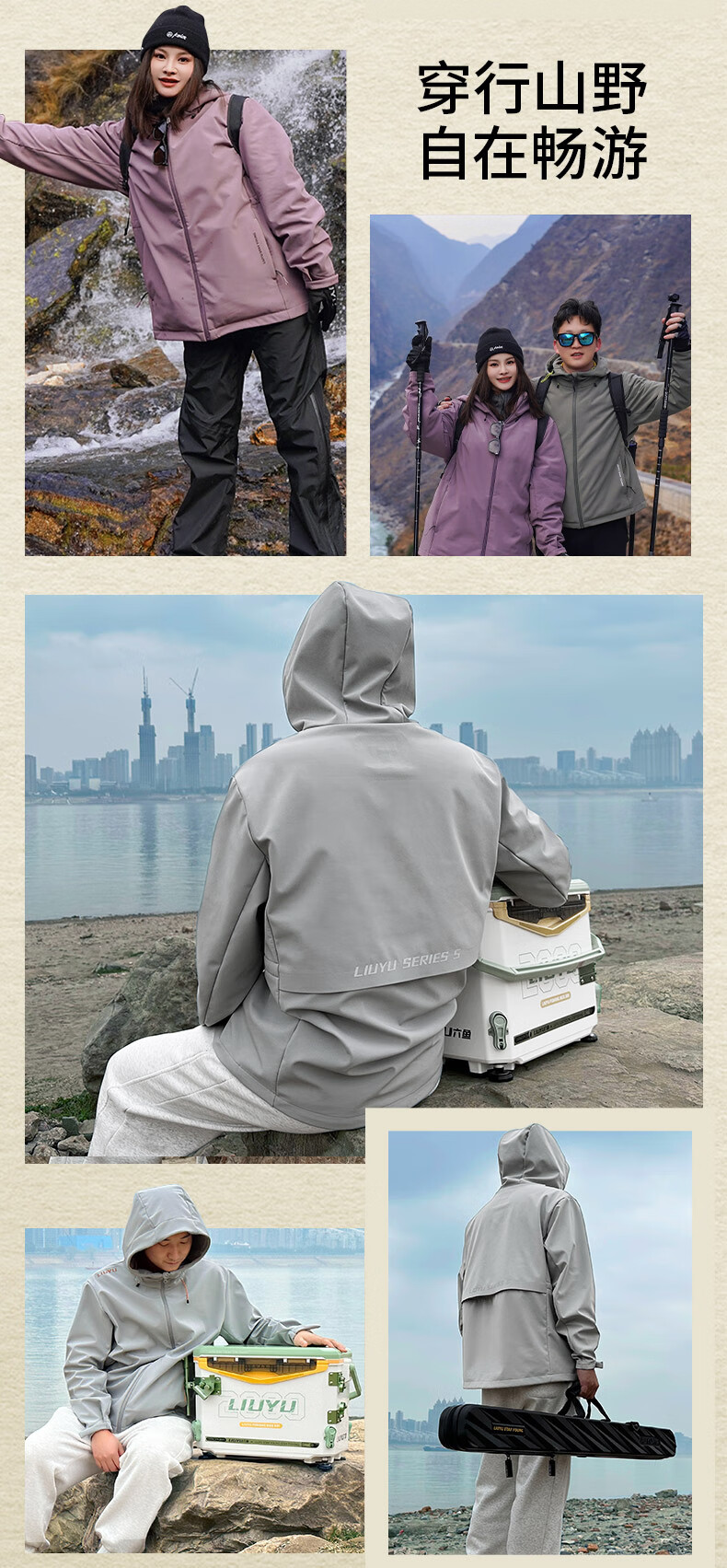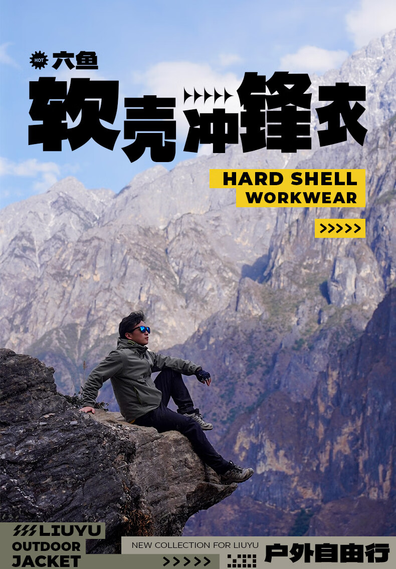 Liuyu Wulingyi New Style Jacket Outdoor Windproof and Waterproof Hiking Jacket Fishing Soft Shell Jacket Fishing Equipment Jacket Moonlight Gray M