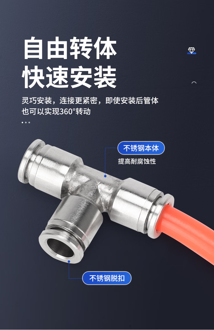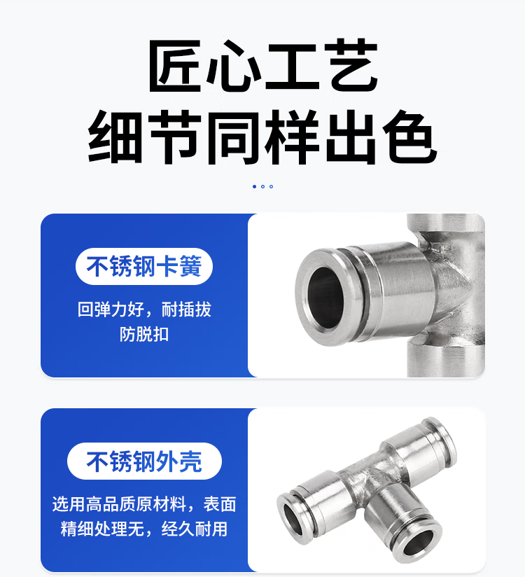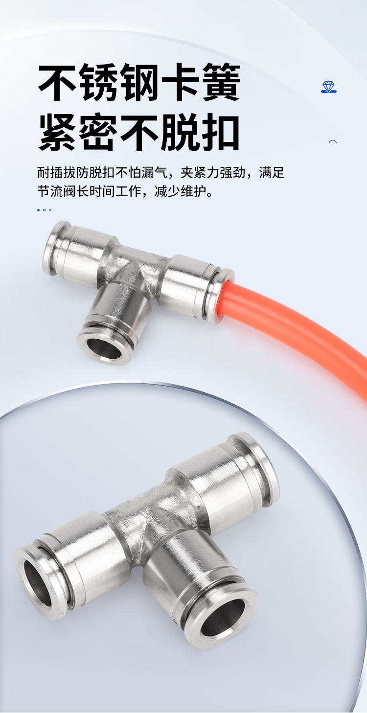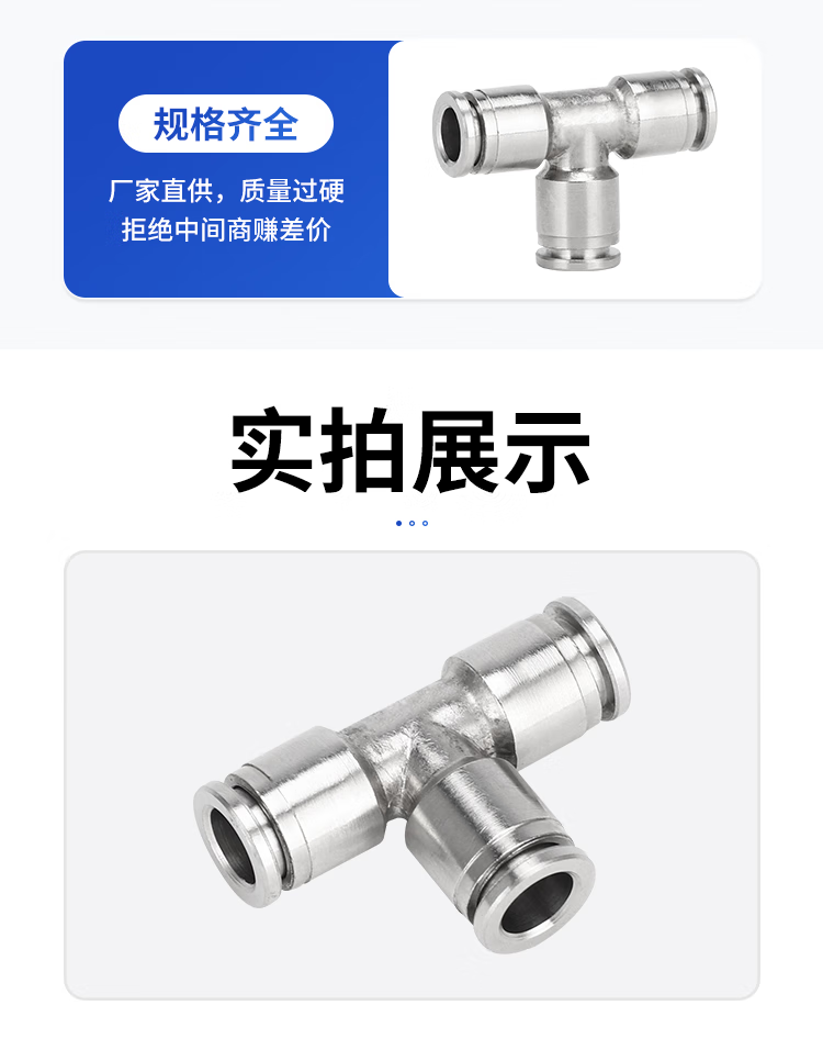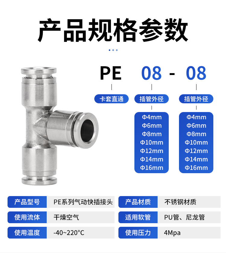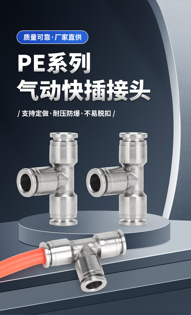 EXSN three-way stainless steel air pipe joint metal pneumatic joint 304 air pipe quick-in connector PE4 6 8 10 PE-12