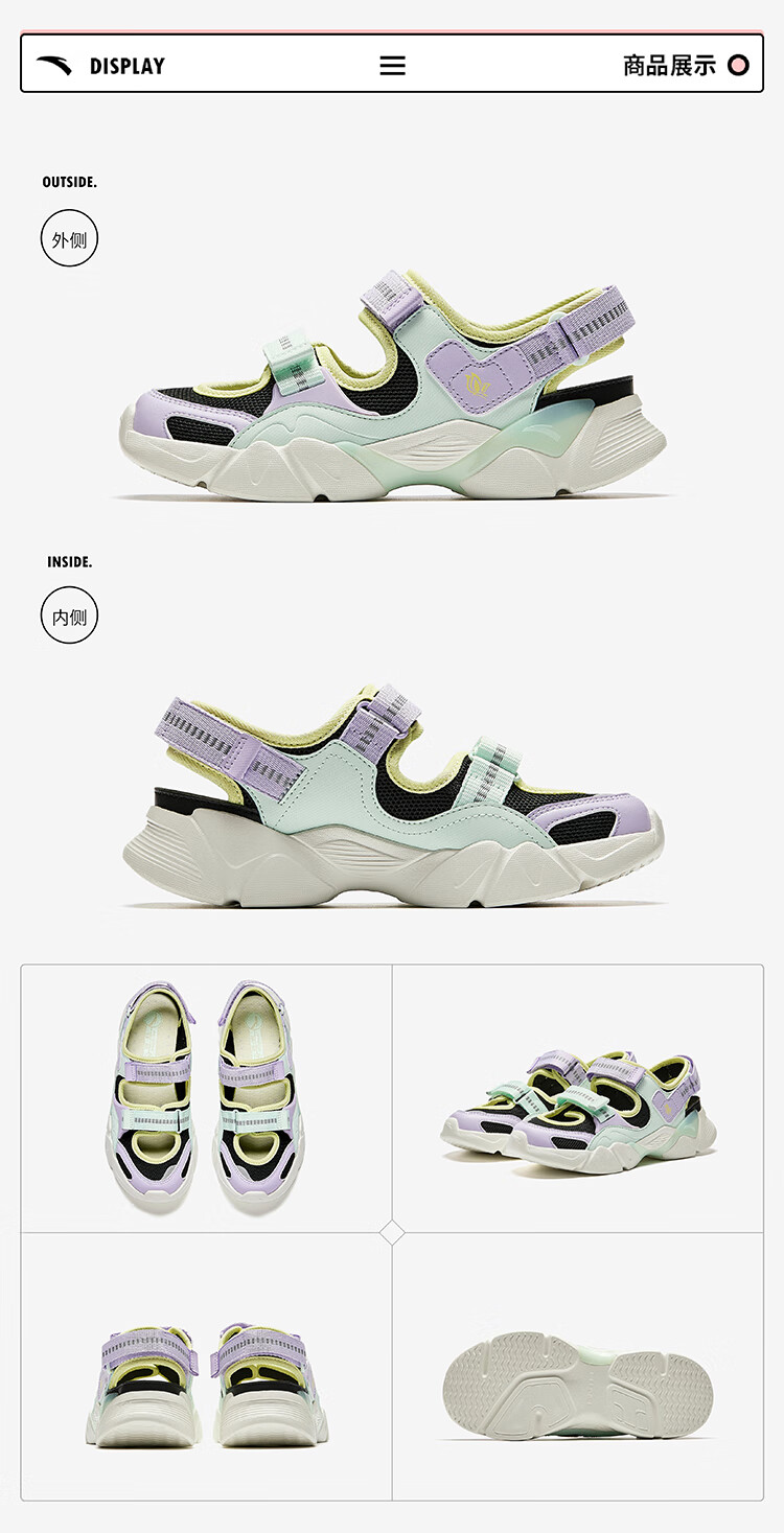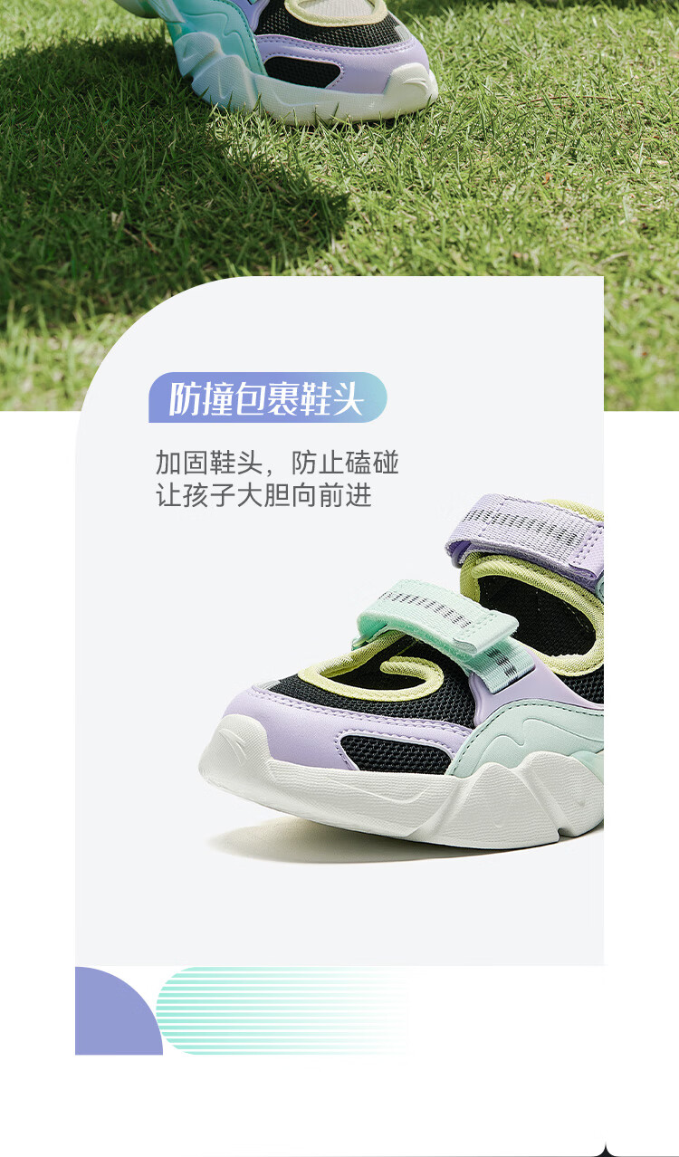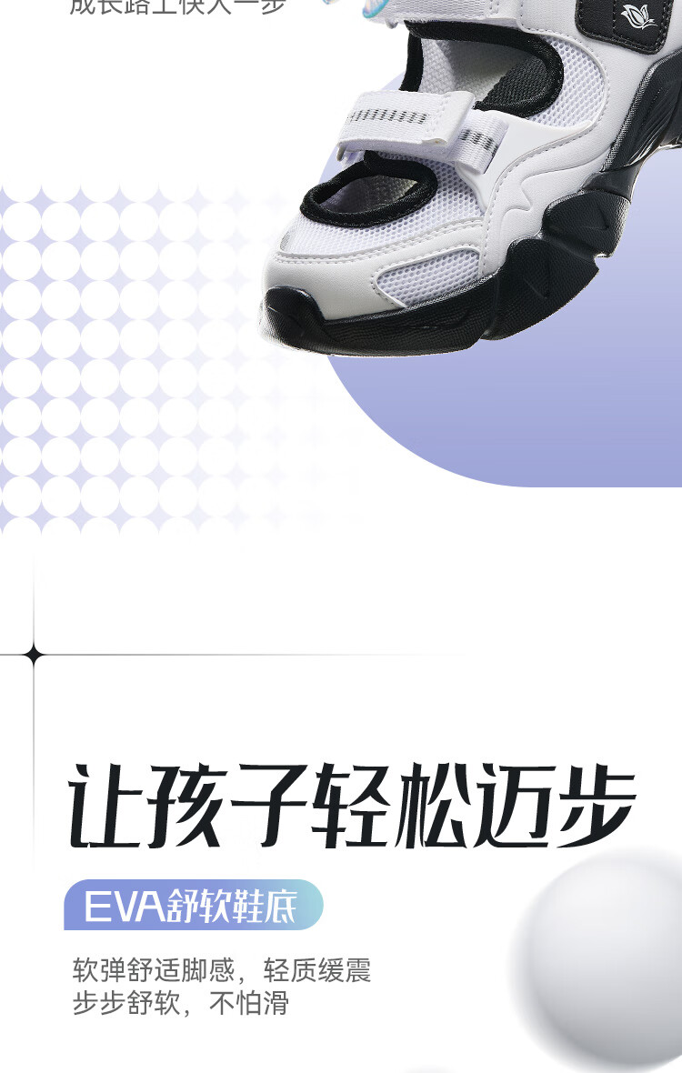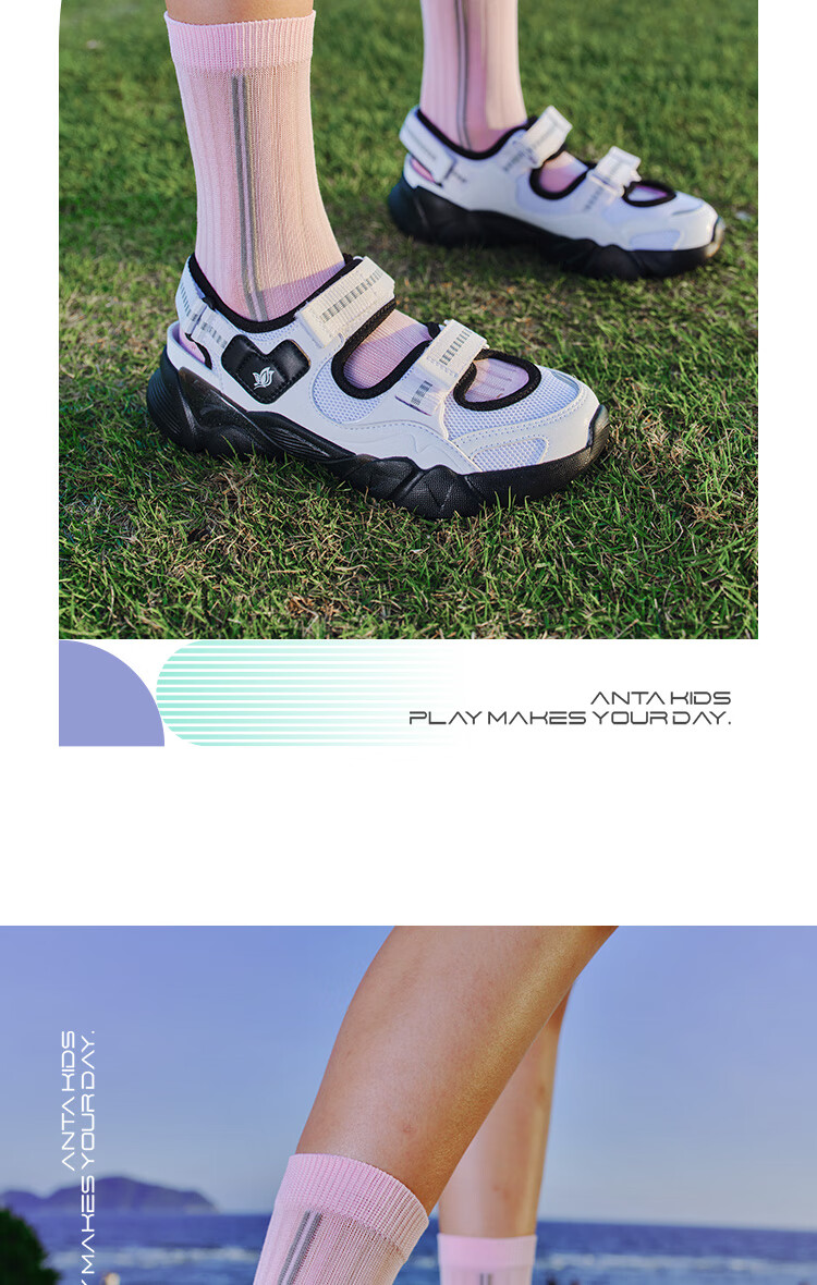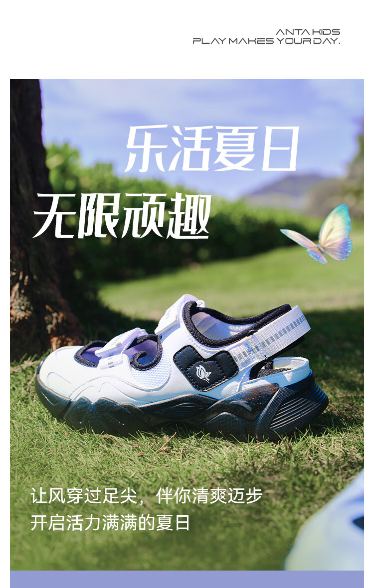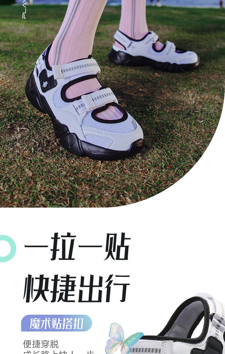 安踏儿童凉鞋女大童鞋2025夏季新品魔术贴户外包头玛丽珍运动沙滩鞋 安踏白/黑-3 36 鞋内长23cm