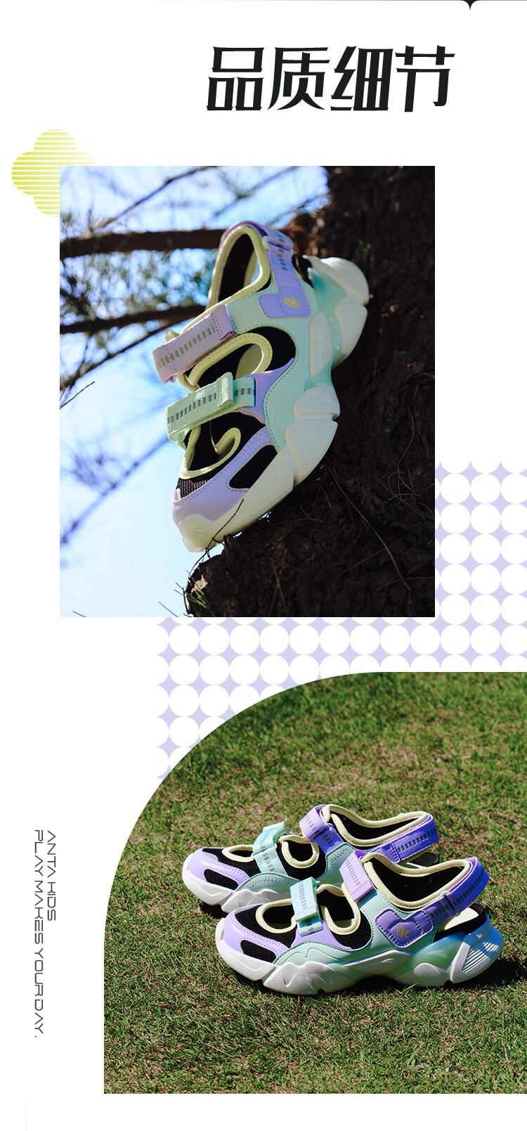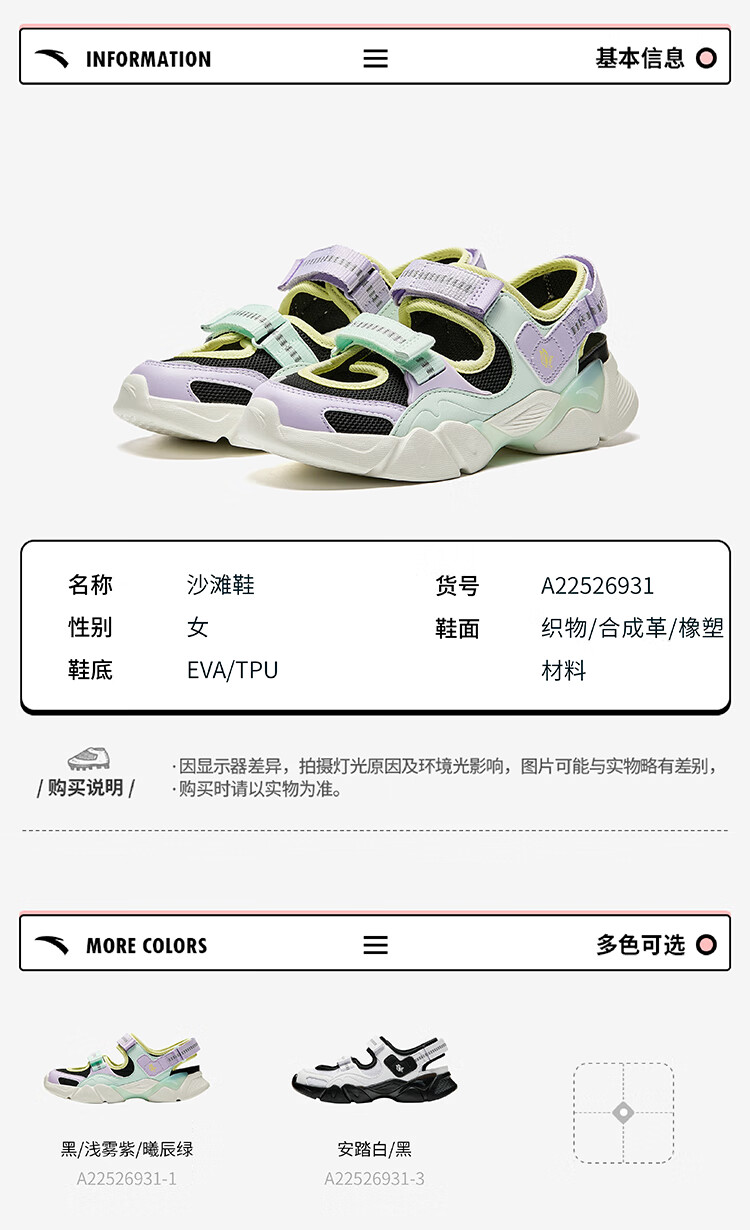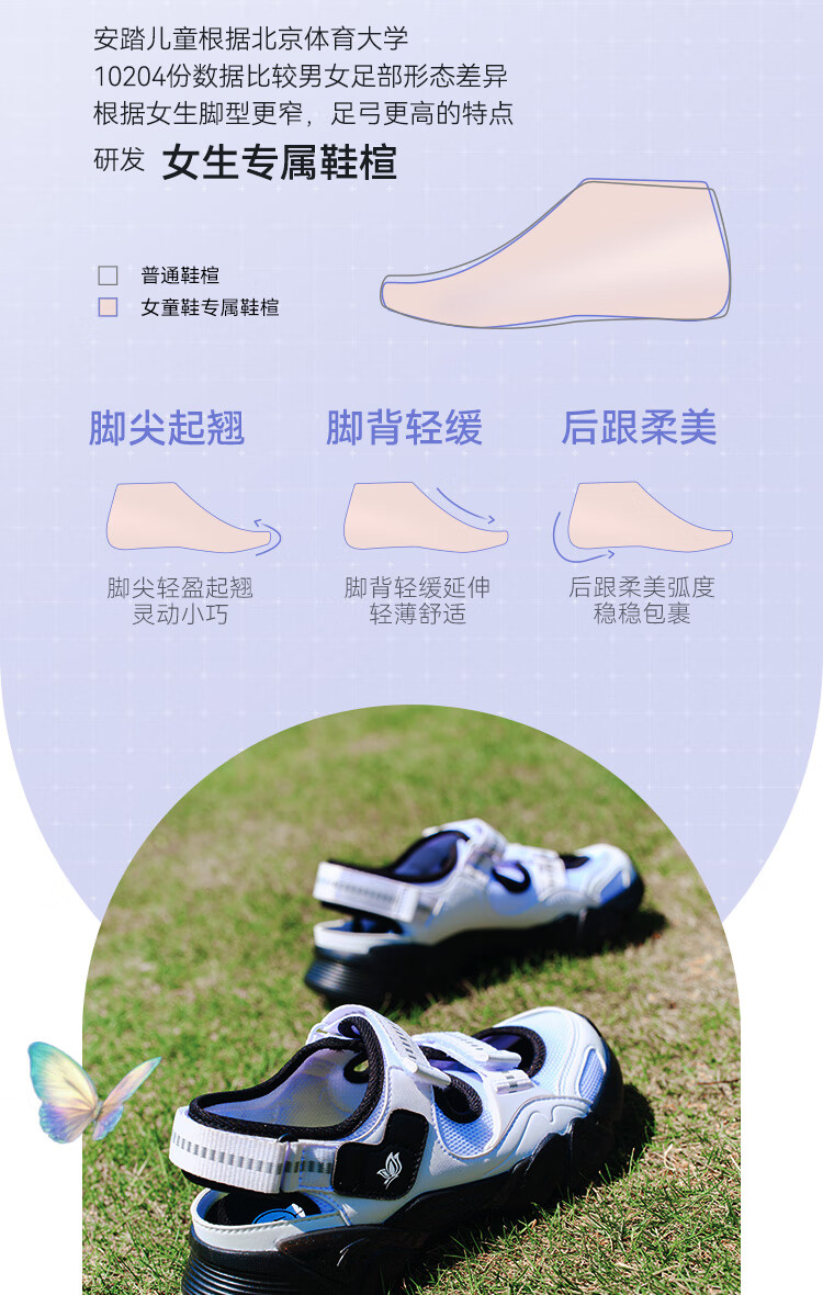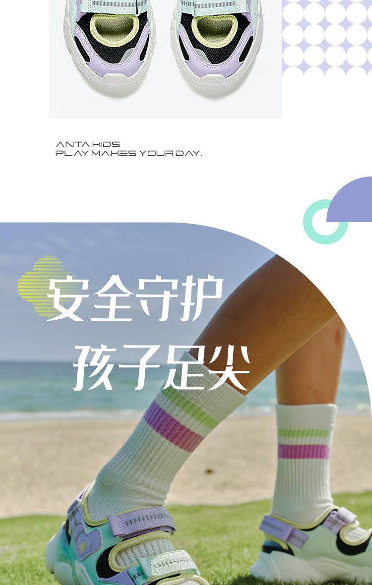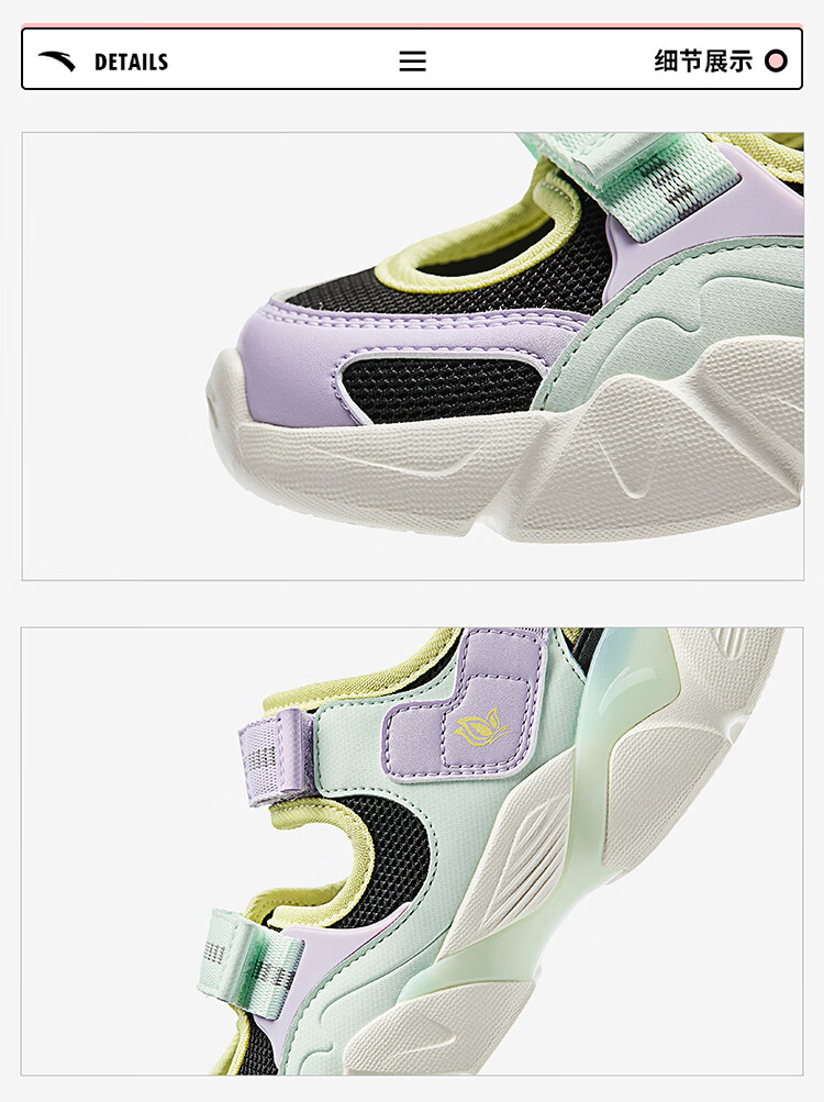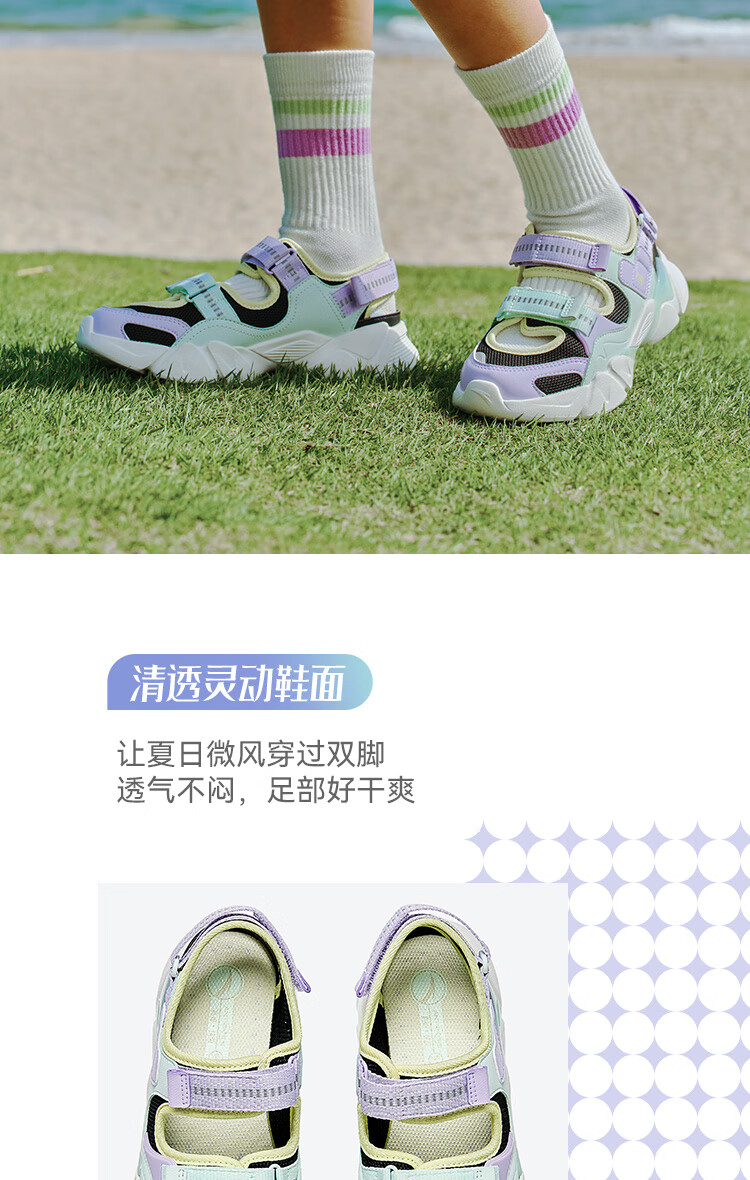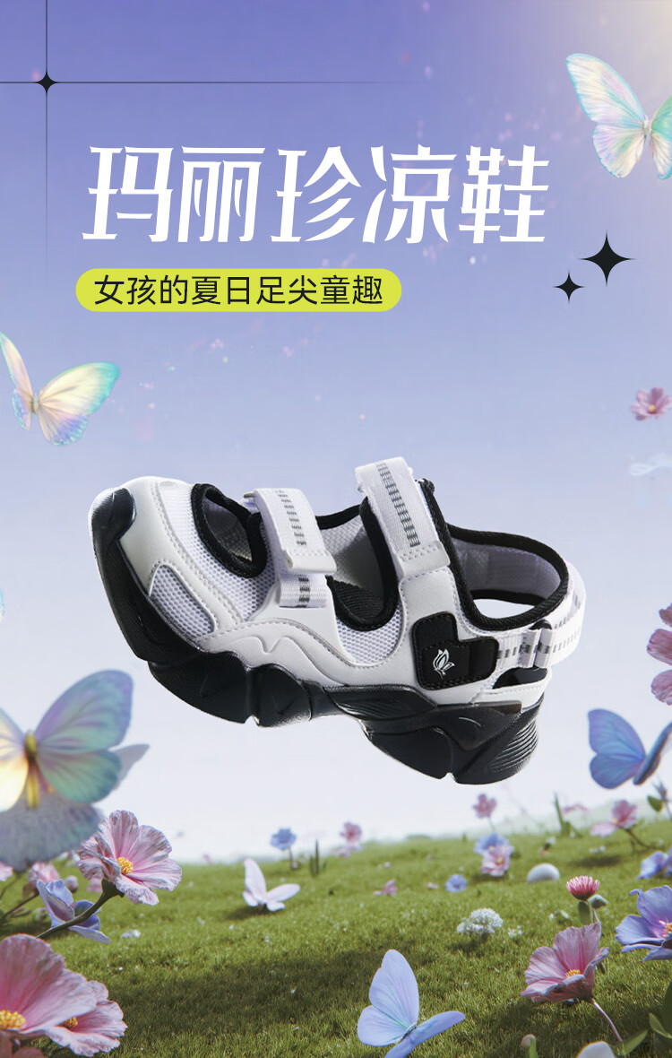 安踏儿童凉鞋女大童鞋2025夏季新品魔术贴户外包头玛丽珍运动沙滩鞋 安踏白/黑-3 36 鞋内长23cm