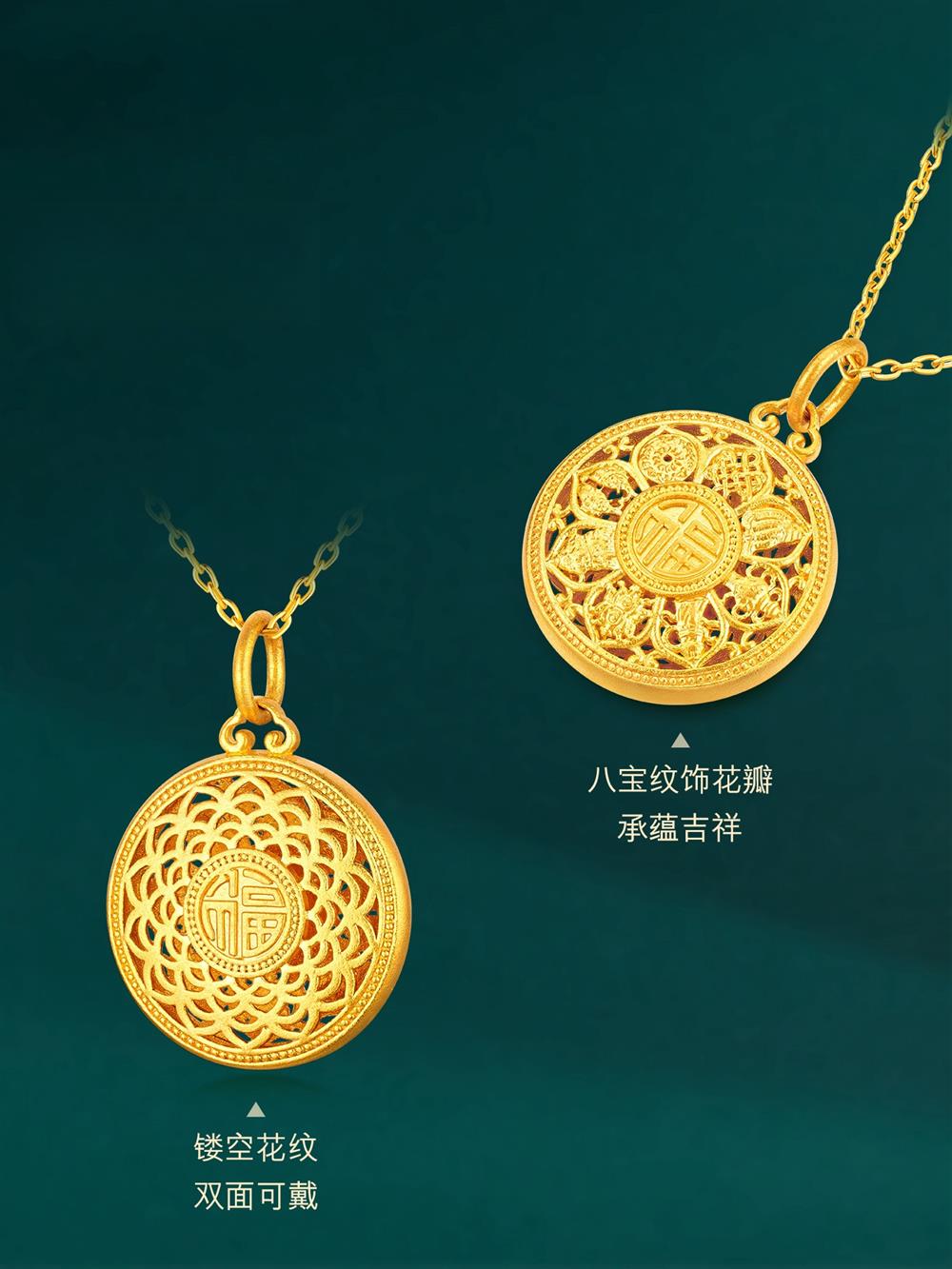 Kuang Yi Shuibei gold eight treasure compass pendant 999 pure gold transfer bead necklace baby male and female couple model eight treasure compass pendant gold 0.7 grams (free silver