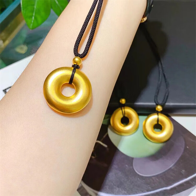 Kuang Yisha gold peace buckle ancient method plain circle couple pendant men and women security gold silver universal time-return pendant without lanyard with gift box about 22 grams of pure gold color peace