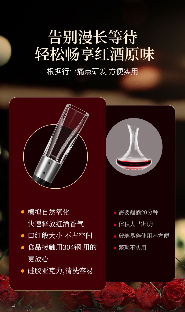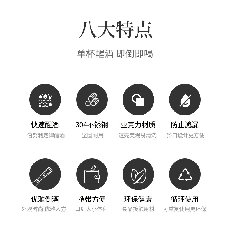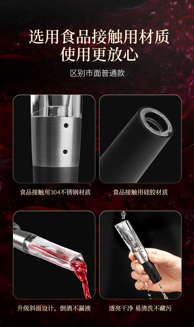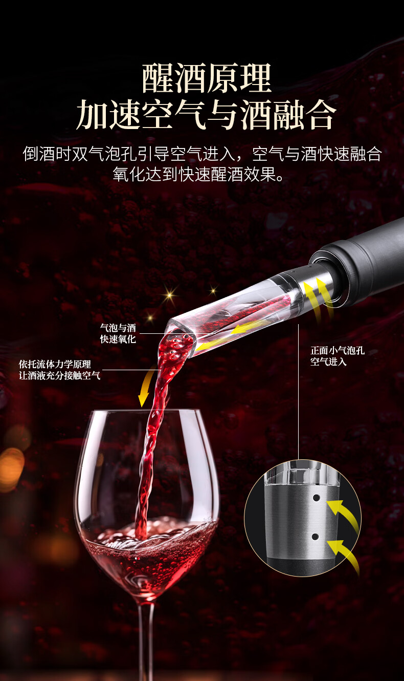 CRAIN Red Wine Decanter Universal Red Wine Quick Pour Decanter Household Wine Compact Pour Wine Decanter Wine Spout Stainless Steel Pour Decanter + Stainless Steel Vacuum Preservation Sealing Plug