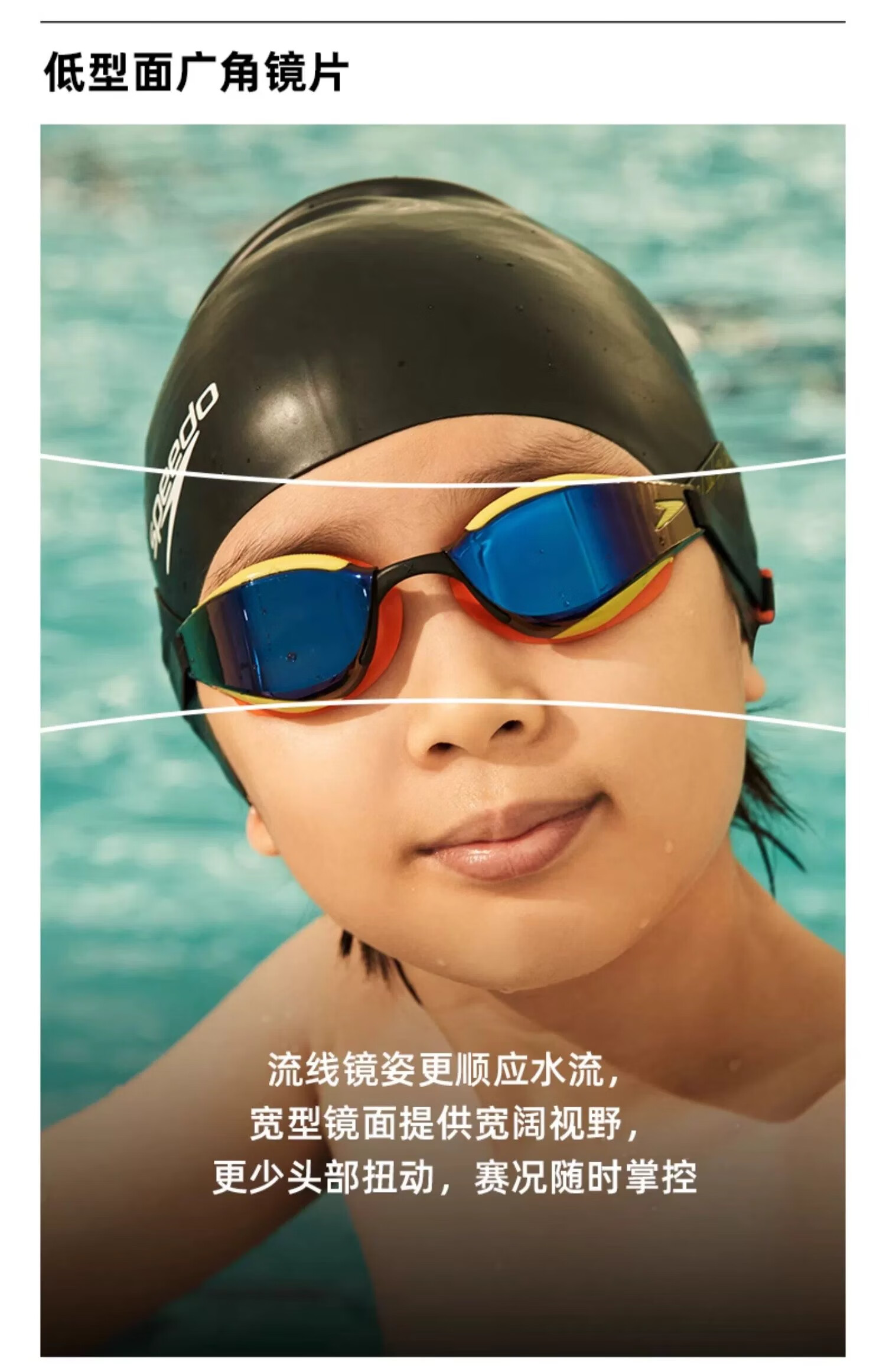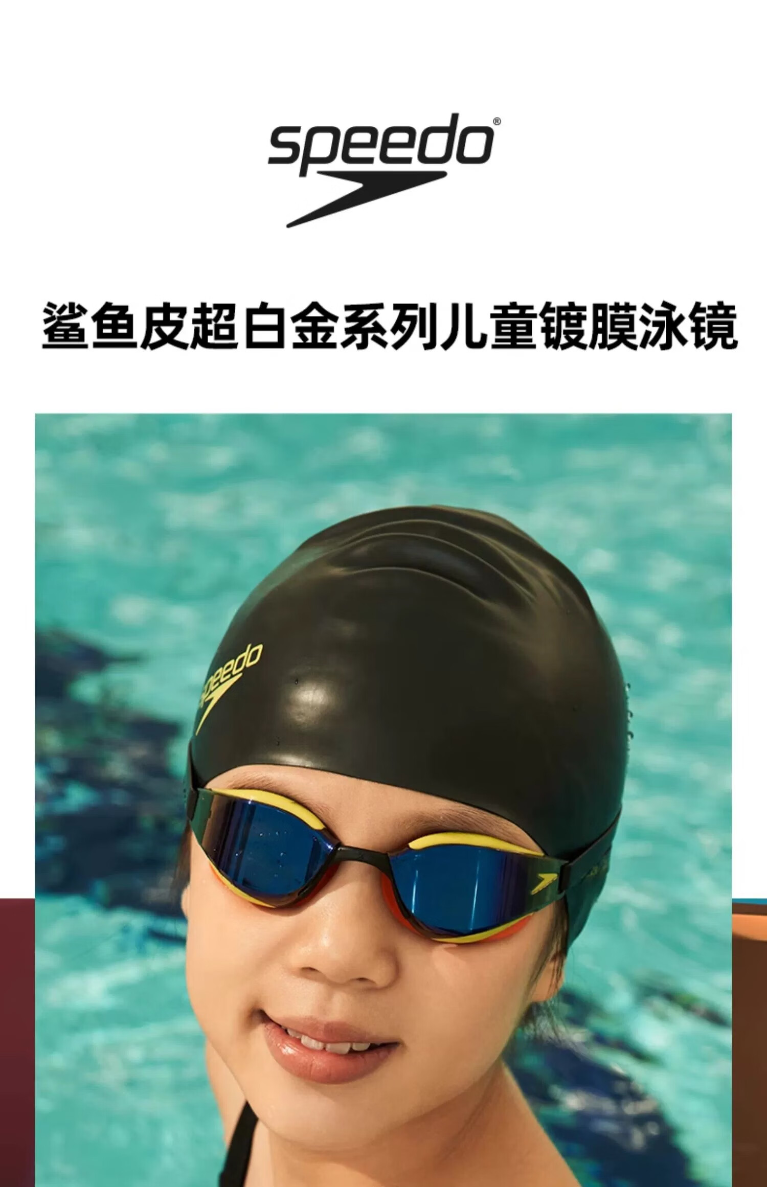 Speedo swimming goggles youth shark skin professional training competition high-definition waterproof and anti-fog comfortable swimming equipment Picton blue/cobalt blue/iris