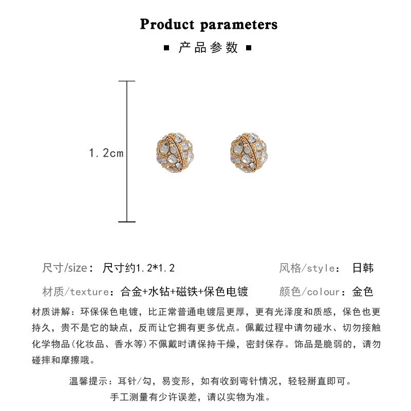 Temperamentless pierced ear clips for women, painless, strong suction magnets, light luxury, high-end niche ear accessories for birthday gifts, golden star-filled diamond ear clips, one pair