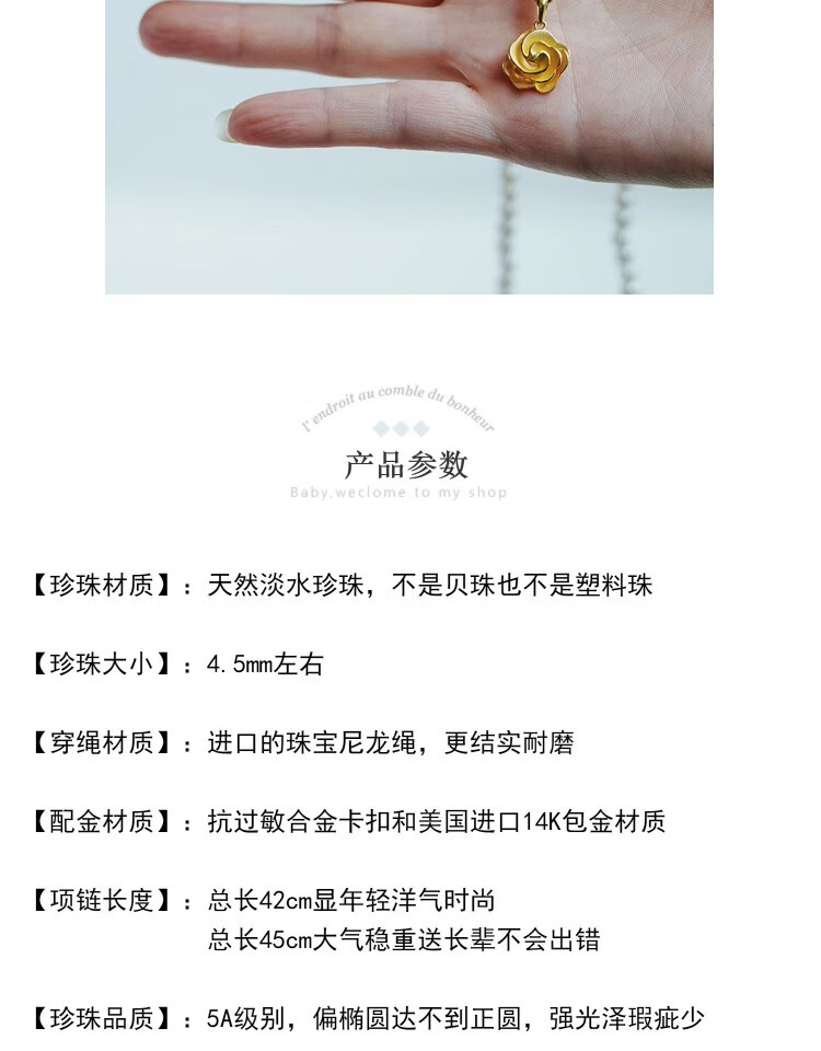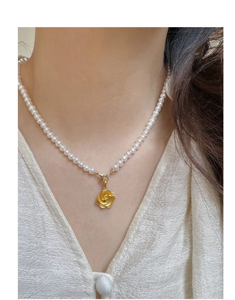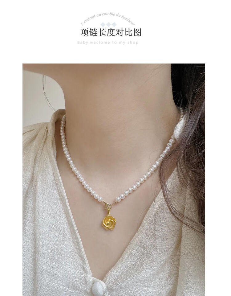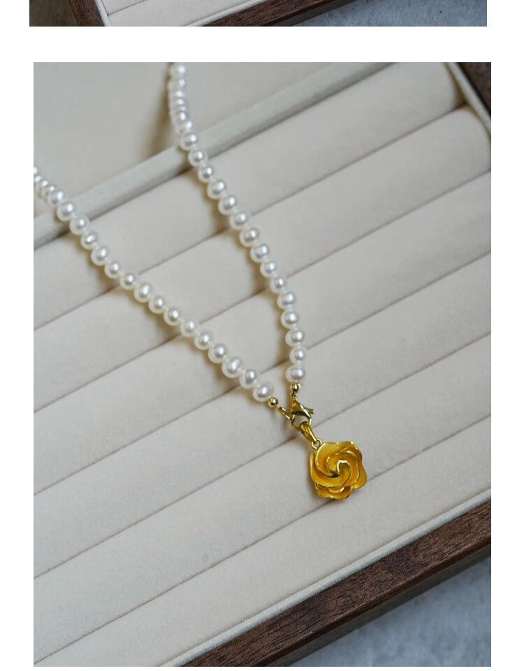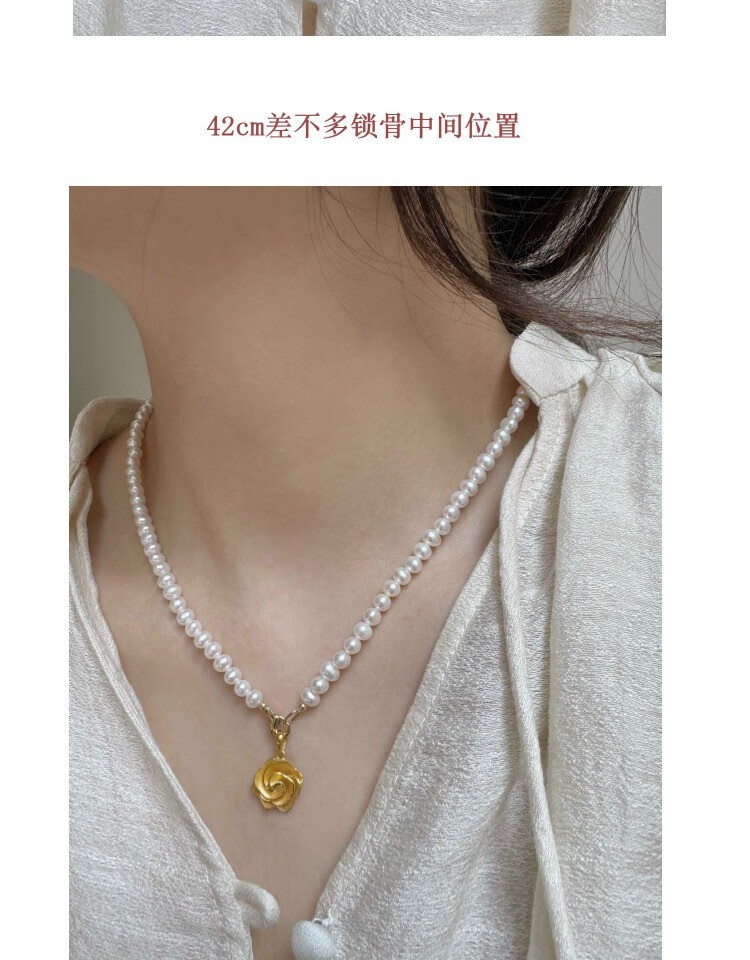 Chihuanzibuyu natural strong light freshwater pearl necklace for women with hanging pendant rose simple and versatile gift for mother 4.5mm total length 42cm medium natural pearl