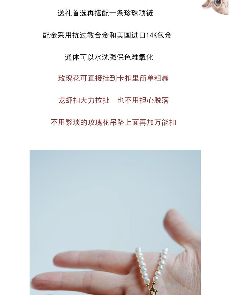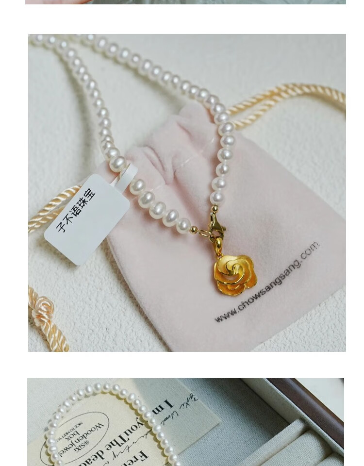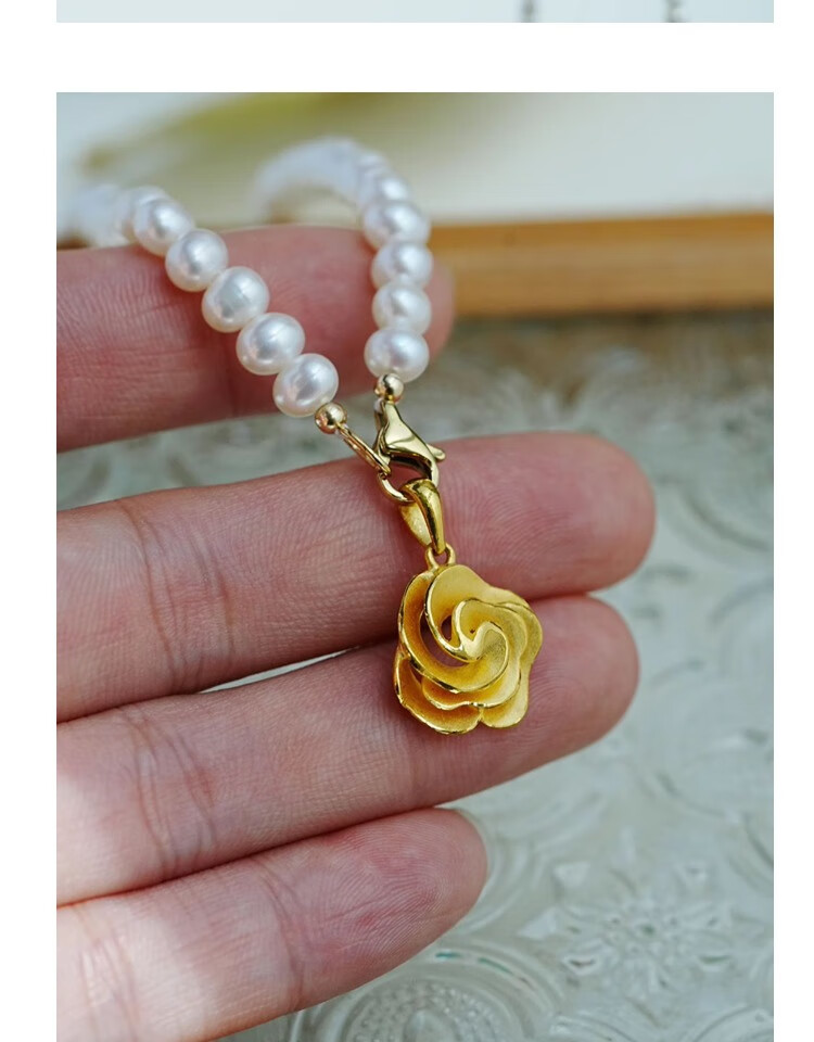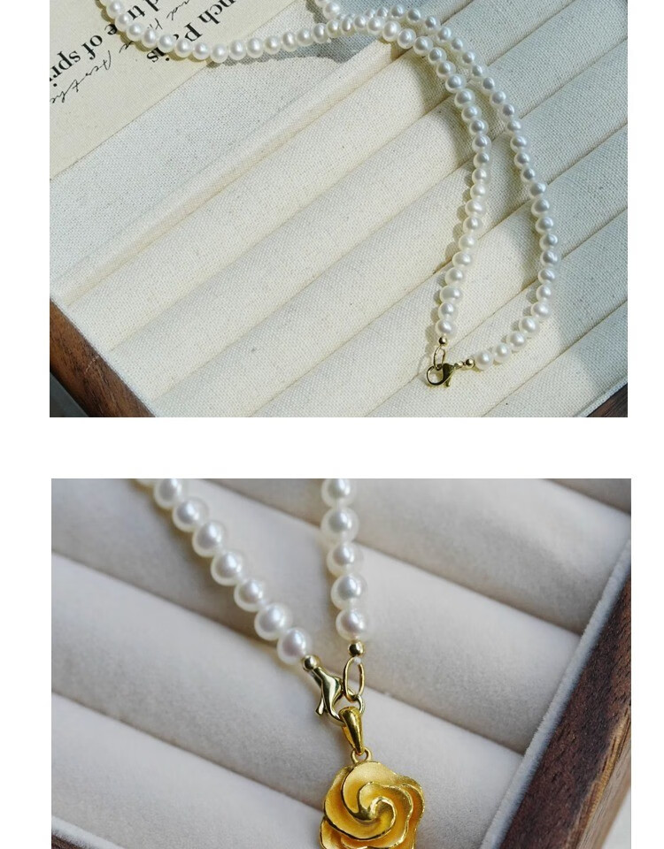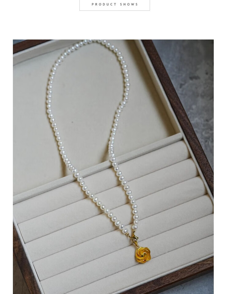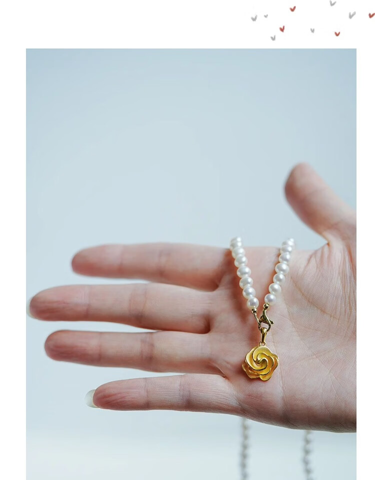 Chihuanzibuyu natural strong light freshwater pearl necklace for women with hanging pendant rose simple and versatile gift for mother 4.5mm total length 42cm medium natural pearl
